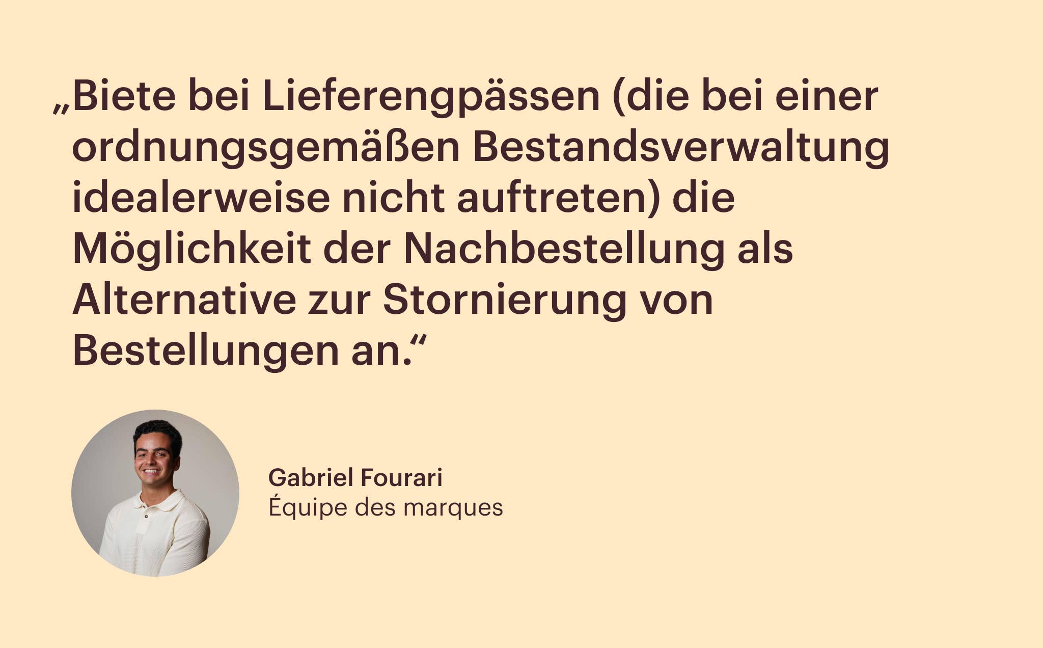„Biete bei Lieferengpässen (die bei einer ordnungsgemäßen Bestandsverwaltung idealerweise nicht auftreten) die Möglichkeit der Nachbestellung als Alternative zur Stornierung von Bestellungen an.“ – Gabriel