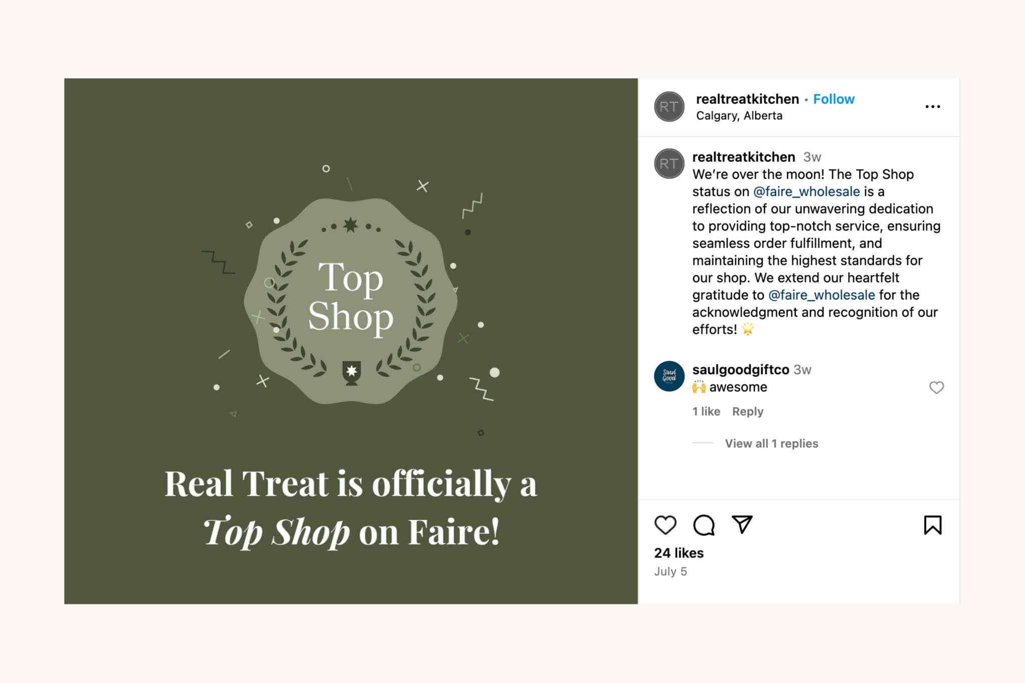 Wenn du ein Top-Shop-Abzeichen erhältst, kannst du anpassbare Social-Media-Vorlagen verwenden, um dein Team anzuerkennen und dessen Erfolg zu feiern. Das geht über Faire hinaus – du kannst diese Vorlagen nämlich in sozialen Medien und per E-Mail teilen und so deinen neuen und bestehenden Einzelhändler*innen zeigen, wie sehr sie dir vertrauen können.