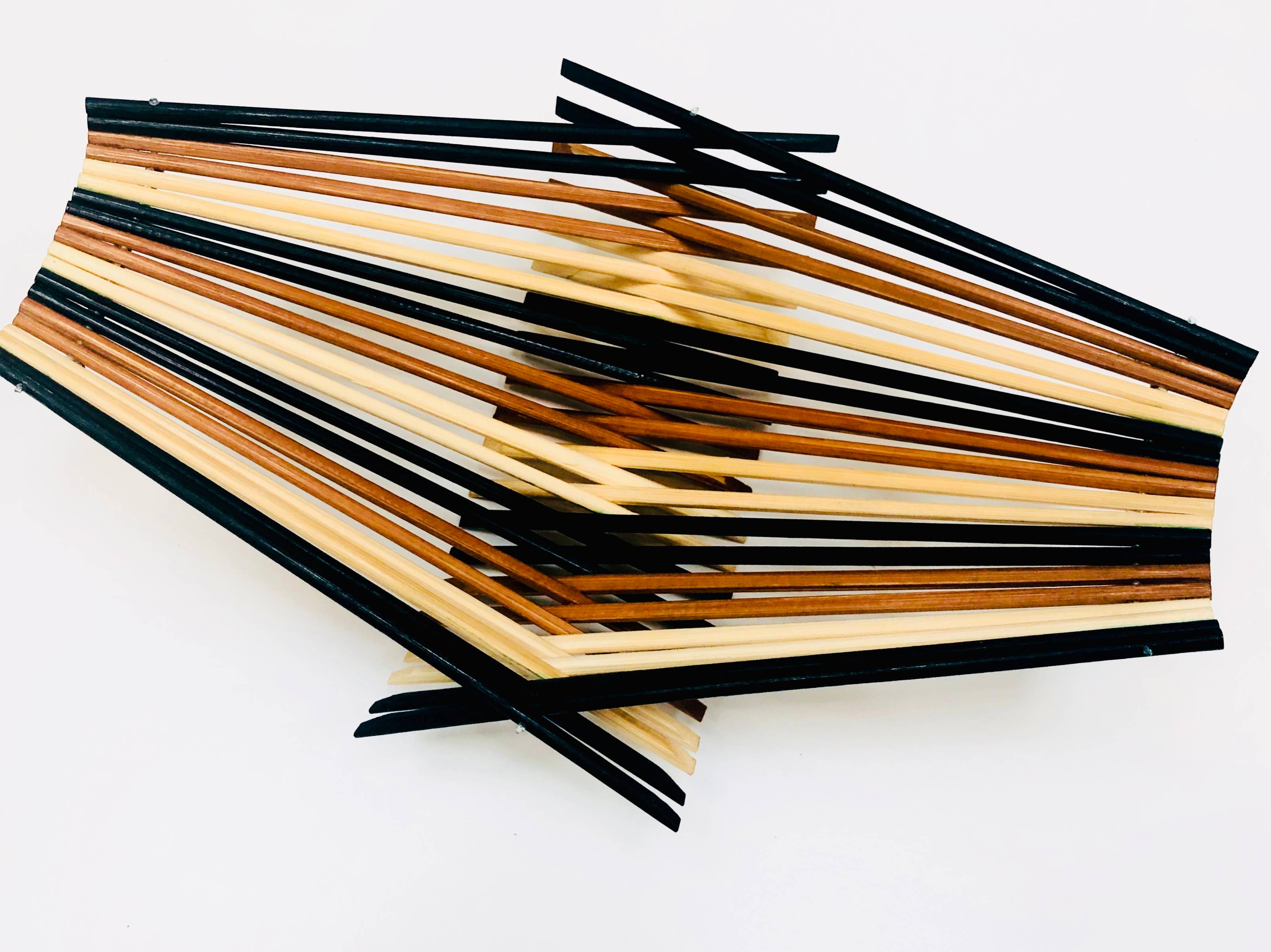 Im Jahr 2003 habe ich in China studiert und die große Menge an Einweg-Essstäbchen bemerkt, die rausgeworfen werden. Ein Samen wurde geboren und ein Jahr später, nach unzähligen Experimenten, wurde Chopstick Art geboren. Ich habe über 50 Produkte mit Essstäbchen entworfen. Die Geschäfte hatten es leicht, mein Faltkorb-Design zu verkaufen, daher konzentriere ich mich jetzt auf diejenigen mit verschiedenen Größen und Farben. Unsere beliebteste Größe besteht aus 30 Paar Essstäbchen. Es fasst etwa 12 Äpfel, hält Obst mit dem guten Luftstrom frisch und lässt sich flach zusammenklappen, damit die Kunden sie leicht nach Hause nehmen können. Sie eignen sich auch hervorragend zum Servieren von Brot und unzähligen anderen Verwendungszwecken. Alle Essstäbchen, die wir verwenden, bestehen aus Bambus und wir färben sie mit Teeblättern und/oder Lebensmittelfarbe. Ich würde mich freuen, mit dir zu arbeiten, wenn du sie ausprobieren willst:) Bryan