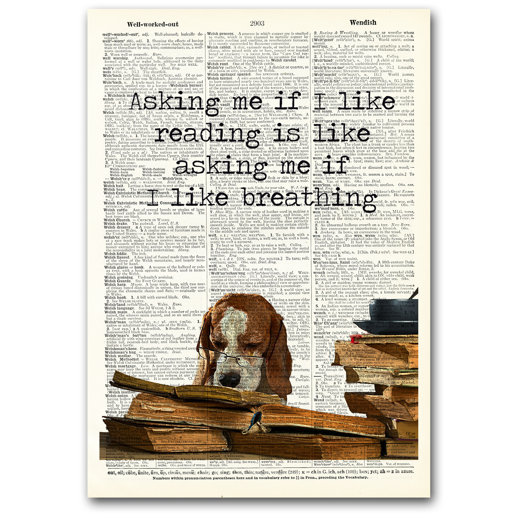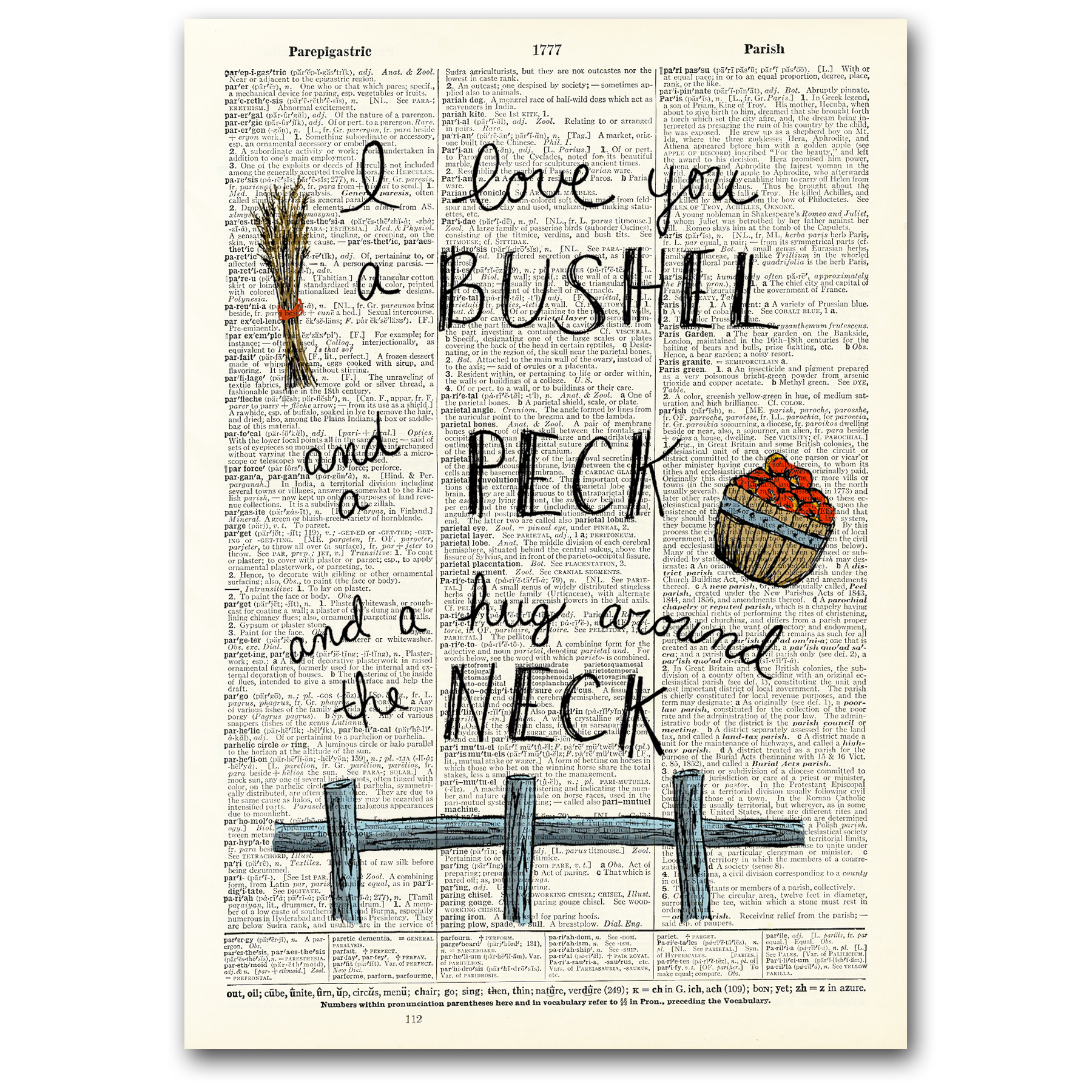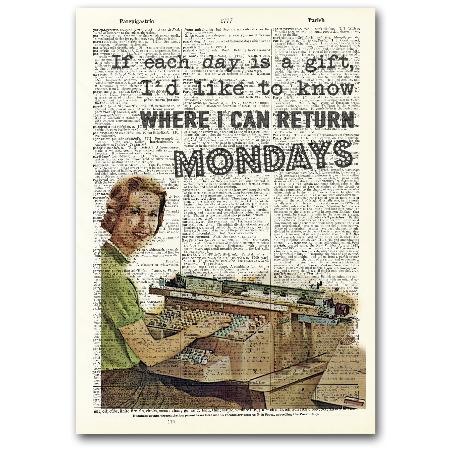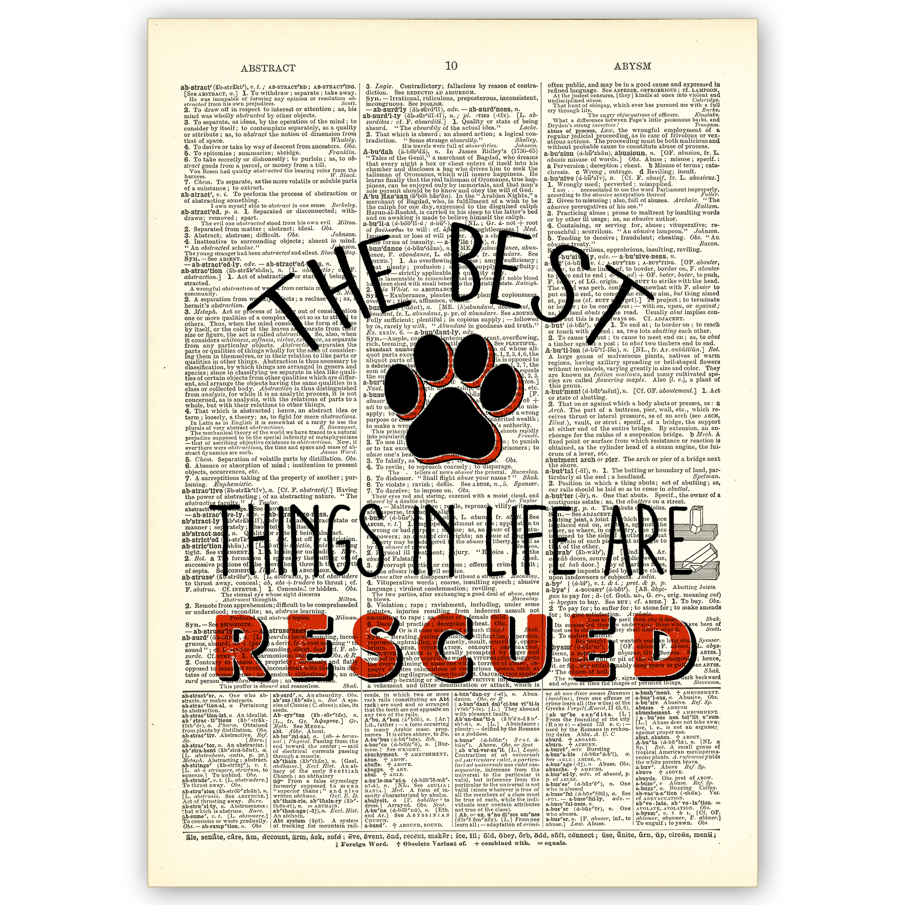 BITTE BEACHTEN SIE: DIE SEITEN SIND NICHT MEHR MONTIERT — BEI DIESEM PRODUKT HANDELT ES SICH NUR UM DEN DRUCK Die Drucke werden in durchsichtigen Zellophanhüllen mit einer schützenden Pappeinlage und einem Echtheitszertifikat geliefert. Die Wörterbuch-Kunstdrucke werden aus originalen, 100 Jahre alten Webster's Dictionary-Seiten handgefertigt. Jede Seite wird vorsichtig von Hand aus dem Buch entfernt und mit einem skurrilen Spruch oder Zitat bedruckt. So entsteht ein einzigartiges Geschenk oder dekoratives Accessoire für Ihr Zuhause. DIES SIND KEINE REPRODUKTIONEN. Wissenswertes über Vintage Dictionary Art: - Keine zwei Drucke sind gleich! Die Designs werden zufällig auf jede Seite gedruckt, sodass jedes Mal ein einzigartiges Kunstwerk entsteht. - Aus etwas Altem wurde etwas Neues gemacht. Spüre die Textur und Patina jeder Wörterbuchseite! - Vielseitiges Geschenk — kann gerahmt werden, um den perfekten Akzent zu Hause oder im Büro zu setzen.