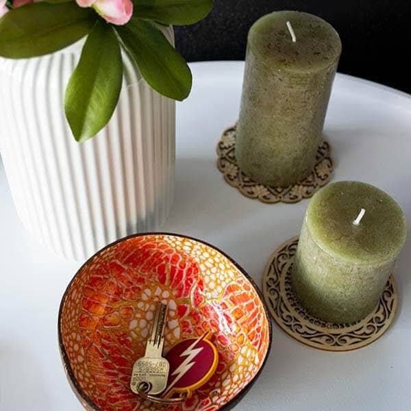 2017, verbringt Florian, ein Weltenbummler aus Krefeld, für einen Tauchlehrerkurs einige Monate in Kambodscha. In dieser Zeit tauchen Er und seine damalige Partnerin tief in die lokalen Gemeinde ein und Erlebnisse, wie ausgerichteter Schwimmunterricht für die einheimischen Kinder, sorgen dafür, dass Florian und seine Partnerin den Menschen helfen wollen. Auf vielen Märkten hatten Sie bereits verzierte Kokosnussschalen gesehen. Die Nachhaltigkeit und der einmalige Charakter der Schalen, gemeinsam mit der Möglichkeit Ihre Erlebnisse zu teilen und die Menschen vor Ort zu unterstützen führt schnell zu der Überlegung, einen nachhaltigen Shop zu gründen. Die Idee von Makapli war geboren. Also packen Sie 100 Schalen in Ihre Rucksäcke und bringen sie nach Deutschland. Die Kokosnussschalen kommen bei Freunden und Bekannten so gut an, dass schon nach wenigen Tagen alle Schalen vergriffen sind. Und so wird nicht lange überlegt und Makapli gegründet. Inzwischen wurde das Sortiment mit nachhaltigen Produkten wie Seidenlampions und Kerzen immer mehr erweitert. Die Bedingungen die wir dabei stellen: Die Produkte werden fair hergestellt, sind nachhaltig und zeigen den Charakter des Landes.