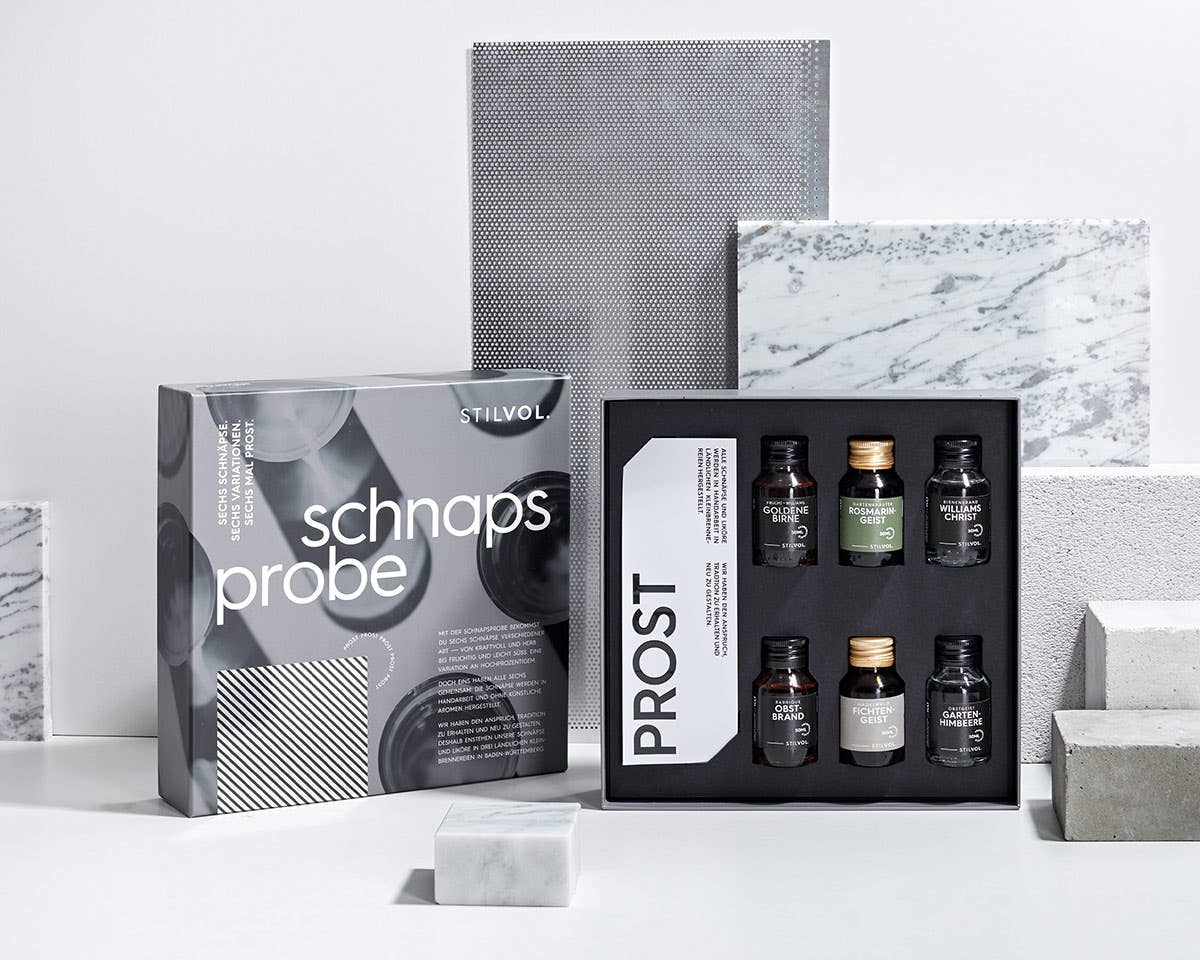 Wir wollen Williams & Co. nicht mehr länger nur bei Oma im Regal sehen. STILVOL. steht für traditionelle Schnäpse und Liköre aus Kleinbrennereien, verpackt in modernem Design. Wir sind ein junges Team aus Stuttgart und Laupheim und haben es uns zur Aufgabe gemacht, deutschen Obstbränden und Likören wieder mehr Aufmerksamkeit und Anerkennung zu verschaffen. Wir (Danny, Markus, Jessi und Markus) arbeiten mit drei Kleinbrennern zusammen, einer davon ist Jessi's Opa Erich, der seit Jahrzehnten seinen Brennkessel anheizt. Alles wird in Handarbeit aus regionalen oder selbst angebauten Rohstoffen in Baden-Württemberg hergestellt. Neben Klassikern wie Williams Christ und Himbeergeist gibt es auch einen Fichtengeist oder Rosmaringeist. Wir vier kümmern uns anschließend um die Abfüllung, Vermarktung und den Versand. So wollen wir gemeinsam Tradition erhalten und neu gestalten.