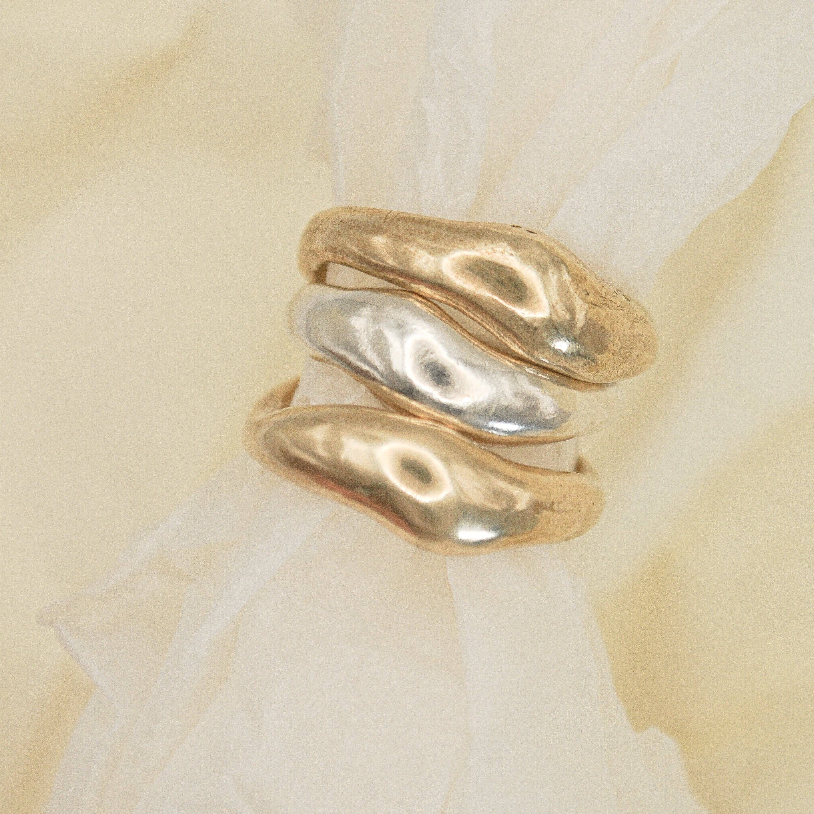 Hallo! Ich bin Rebekah J. Ich kreiere Schmuck für Sentimentalisten. Die Objekte, die ich kreiere, sind durchdrungen von der Stimmung hinter den Momenten, an die wir uns erinnern möchten, von den Menschen, die wir lieben, und von den Lebenszeichen, die uns dankbar machen und uns Gänsehaut bereiten. Wenn du meinen Schmuck auf deiner Haut trägst, wirst du dich an alles erinnern, was er in dir symbolisiert. Deine Stärke. Deine Widerstandsfähigkeit. Deine Macht. Das Ziel meiner Arbeit ist es, Alltagsschmuck Sinn und Intentionalität zu verleihen, indem ich elementare Metalle mit modernen Textilien verbinde und dabei eine organische, fernwehmütige Ästhetik verbinde, bei der jedes Stück eine einzigartige Geschichte erzählt, die vom Leben, Mutterschaft und Reisen inspiriert ist. Ein gebürtiger Kalifornier, der später in Seattle lebte, mit einem sehr vielfältigen künstlerischen Hintergrund. Ich besuchte die Schule für Innenarchitektur, Zeichnen und Druckgrafik, bevor ich zur Metallschmiedekunst kam. Dort entwickelte ich eine Leidenschaft für Geometrie, Asymmetrie und organische Formen — was Sie in meiner Arbeit sehr gut erkennen werden. Persönlich bin ich seit unserem 18. und 19. Lebensjahr mit meinem Mann zusammen und wir haben eine ziemlich unglaubliche Tochter, Luka, und eine dicke, lustige Katze namens Polly, einen süßen Hund namens Birdie und ich arbeite von meinem Heimstudio in Seattle, WA, aus.