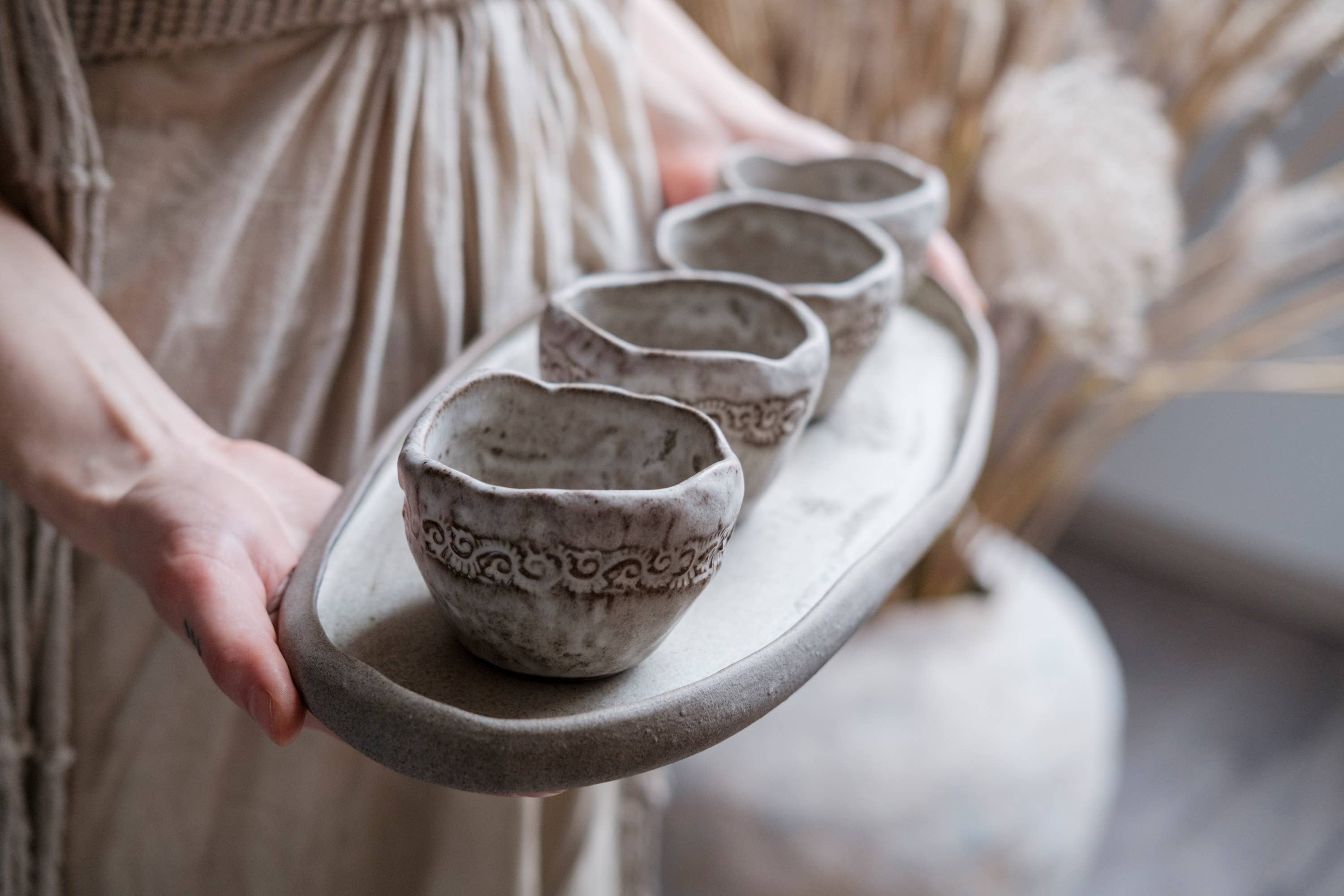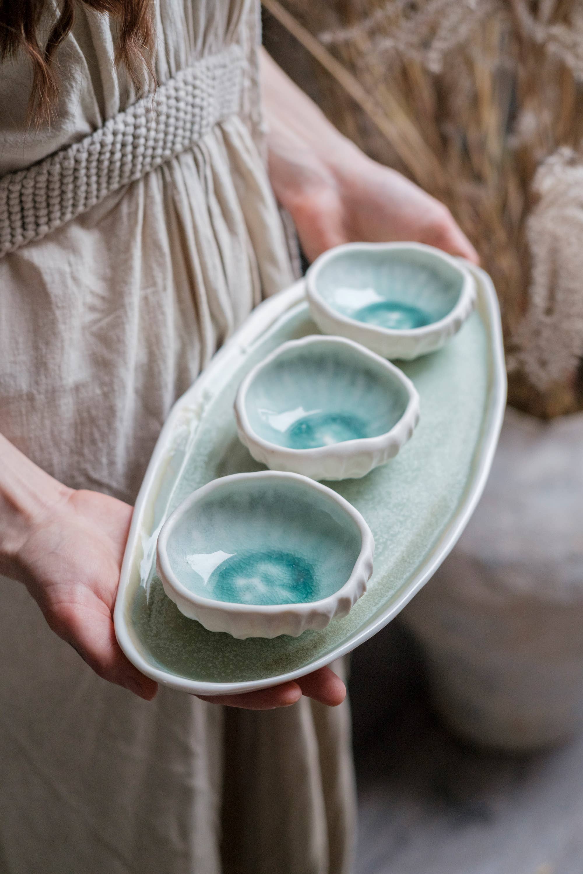 Laima Keramik ist eine Kollektion von Geschirr, die in der Verschmelzung von Kunst, Handwerk und Design verwurzelt ist. Jedes Stück wird einzeln von Hand gefertigt oder in kleinen Chargen auf der Töpferscheibe gedreht, wobei jede Glasur und Textur im eigenen Haus entwickelt wird — subtile Variationen, die echtes, langsam hergestelltes Handwerk widerspiegeln. "Eingebettet in die tiefe Landschaft Lettlands entwerfe und kreiere ich einzigartige Stücke, die Teil des täglichen Lebens werden sollen — Objekte, die Achtsamkeit, Sorgfalt und stille Schönheit in die täglichen Rituale des Kochens, Essens und Teilens bringen. Nachhaltigkeit, Verantwortung und soziale Verantwortung bilden das Herzstück meiner Praxis. Ich hoffe, eine durchdachte Verbindung zu den Objekten, mit denen wir leben, zu inspirieren — ein Gleichgewicht zwischen handgefertigt und massenproduziert. Jedes Stück verkörpert meinen Glauben, dass Sorgfalt beim Herstellen Sorgfalt im Leben fördert." Produktfotografie und Beschreibungen dürfen nur mit vollständiger Nennung des Autors verwendet werden: „Design und Fotografie © Laima Keramik.“ Die transparente Darstellung unserer Arbeit ehrt sowohl das Handwerk als auch die Geschichte des Herstellers. Firmenname: SIA Radošā Apvienība Spāres, USt-IdNr.: LV43603044820, Adresse: Urštēni, Bauskas rajons, Svitenes pagasts, LV-3917, LETTLAND