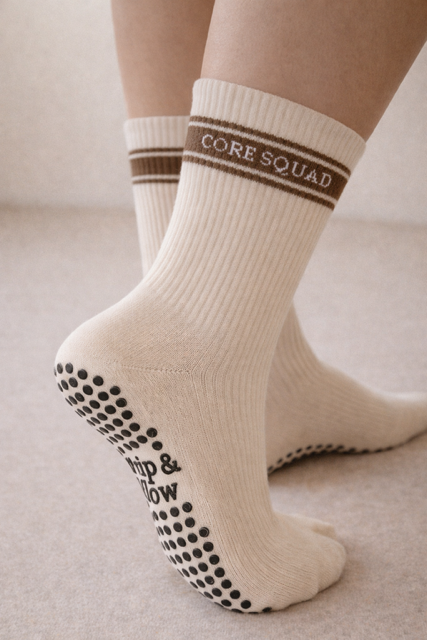Hallo, ich bin Stephanie — Gründerin von Grip & Flow. Nach 17 Jahren in der Gesundheits- und Sozialfürsorge, zuletzt als Senior Practitioner in den Bereichen Sucht und psychische Gesundheit, erreichte ich einen Punkt des Burnouts. Ich fühlte mich wie eine ineffektive Klinikerin und, schmerzhafter noch, wie eine abwesende Mutter. Ich war zu dünn gesät und wusste, dass sich etwas ändern musste. Also traf ich eine mutige Entscheidung — ich verließ den NHS, um ein Leben zu schaffen, in dem ich wirklich für meine Kinder da sein und wieder mit mir selbst in Verbindung treten konnte. Diese Reise führte mich zum Pilates. Es wurde mein täglicher Reset, mein Raum zum Atmen und mein Weg, mich wieder stark zu fühlen. Aber ich konnte keine Griffsocken finden, die sowohl für hohe Fußgewölbe unterstützend als auch schön gestaltet waren — also kreierte ich meine eigenen. Grip & Flow entstand aus dem Wunsch, sich wieder gut zu fühlen — innen und außen. Unsere Socken sind durchdacht für Bewegung, Komfort und Ausdruck gestaltet. Perfekt für Studios und alle, die glauben, dass Wohlbefinden genauso gut aussehen sollte, wie es sich anfühlt.