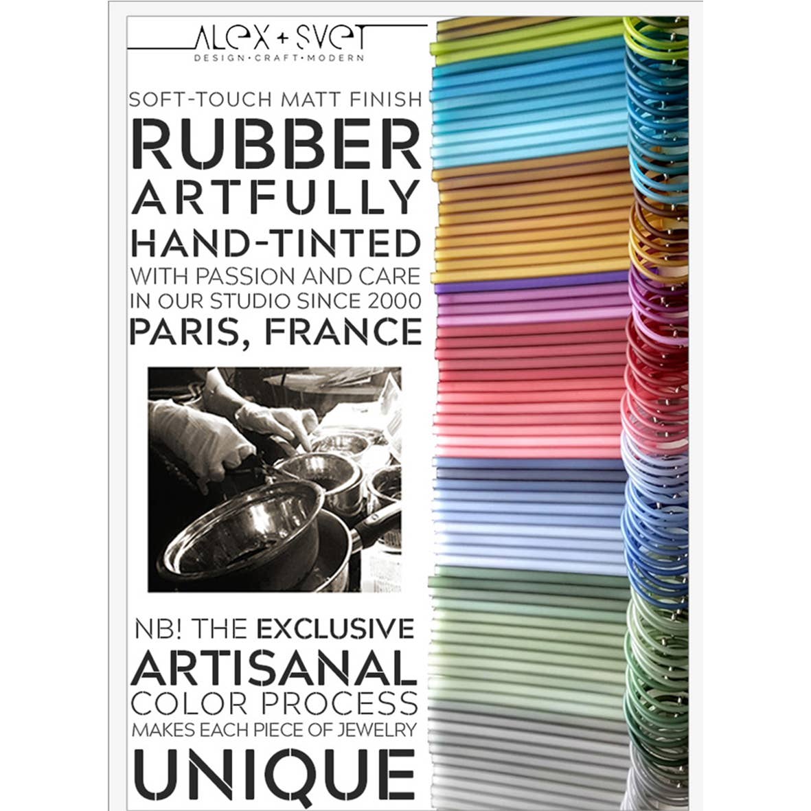ALEX+SVET, fabelhafter moderner und zeitgenössischer Schmuck mit unverwechselbarem kunstvollem Design und exquisit gearbeiteten Veredelungen, die in Paris, Frankreich, entworfen und handgefertigt werden. Alternativer zeitgenössischer Schmuck mit einem retro-futuristischen Touch, der avantgardistische Ästhetik, innovative Techniken und nachhaltige Methoden vereint. Unser Engagement für qualitativ hochwertige traditionelle Handwerkskunst und Liebe zum Detail hat ALEX+SVET bei Schmuckliebhabern weltweit zu einem Favoriten gemacht, um dem Gewöhnlichen zu entfliehen. ALEX+SVET Schmuck ist in Museumsshops, Design-, Konzept- und Modegeschäften erhältlich. Ihre einzigartige Ästhetik ist mittlerweile weltweit bekannt.