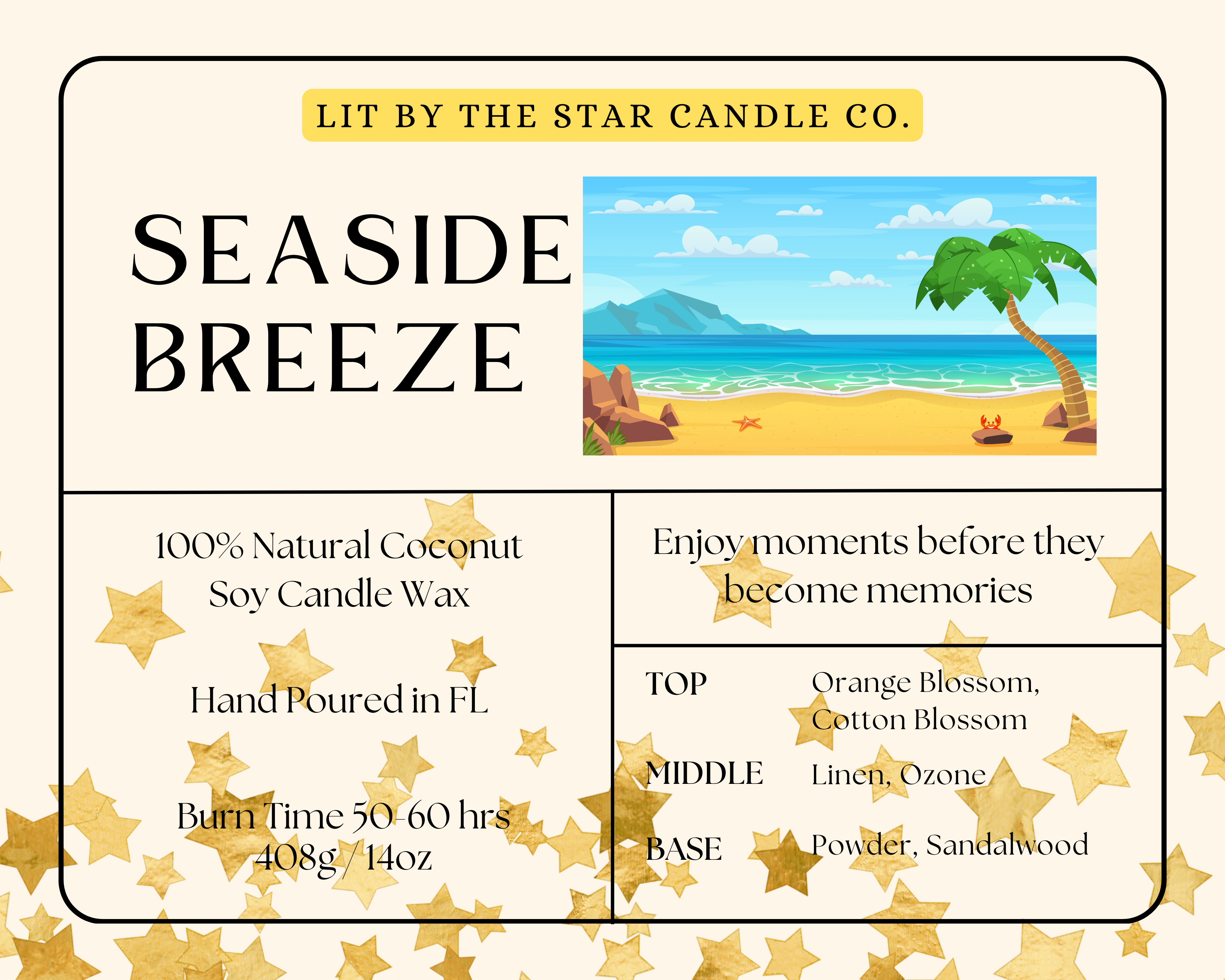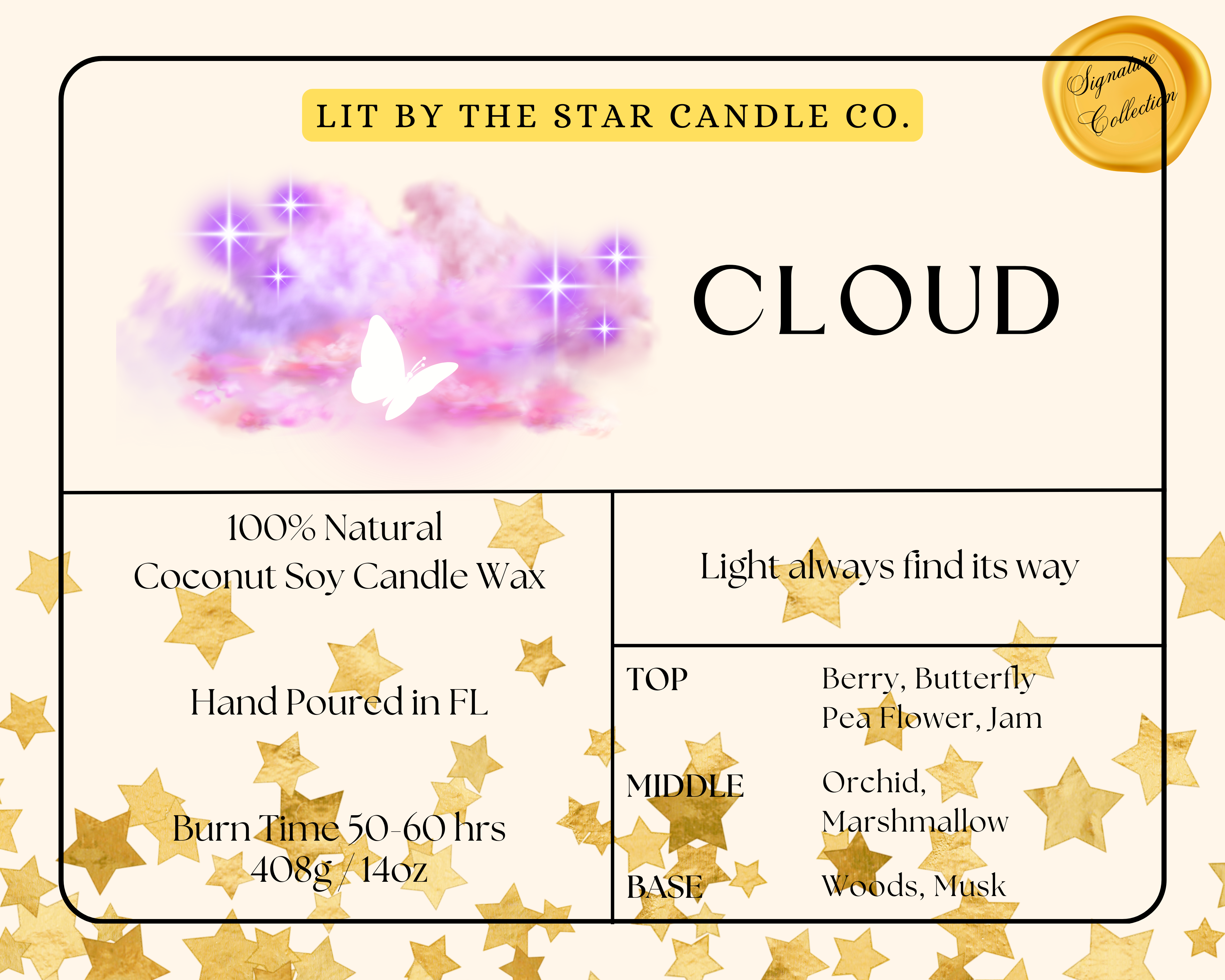 Bei Lit By The Star Candle Co. mischen wir diese nostalgischen Düfte in unsere handgegossenen Kerzen, die jeweils nach einer schönen Erinnerung aus den 90er Jahren benannt sind. Ob es das reiche Aroma von „Coffeehouse Vibes“ oder die florale Eleganz von „Lavender Dreams“ ist, unsere Kerzen sind so konzipiert, dass sie Sie in einfachere Zeiten entführen. Wir glauben, dass jeder Duft eine Geschichte erzählt, und unsere Mission ist es, Ihre Welt mit der Wärme und den Wundern der Vergangenheit zu erleuchten. Unser Engagement für Qualität und Nachhaltigkeit stellt sicher, dass jede Kerze mit Sorgfalt unter Verwendung natürlicher Inhaltsstoffe und umweltfreundlicher Verfahren hergestellt wird. Begleiten Sie uns auf dieser Reise des Lichts und der Nostalgie und lassen Sie Lit By The Star Candle Co. Ihr Leben erhellen, ein Duft nach dem anderen.