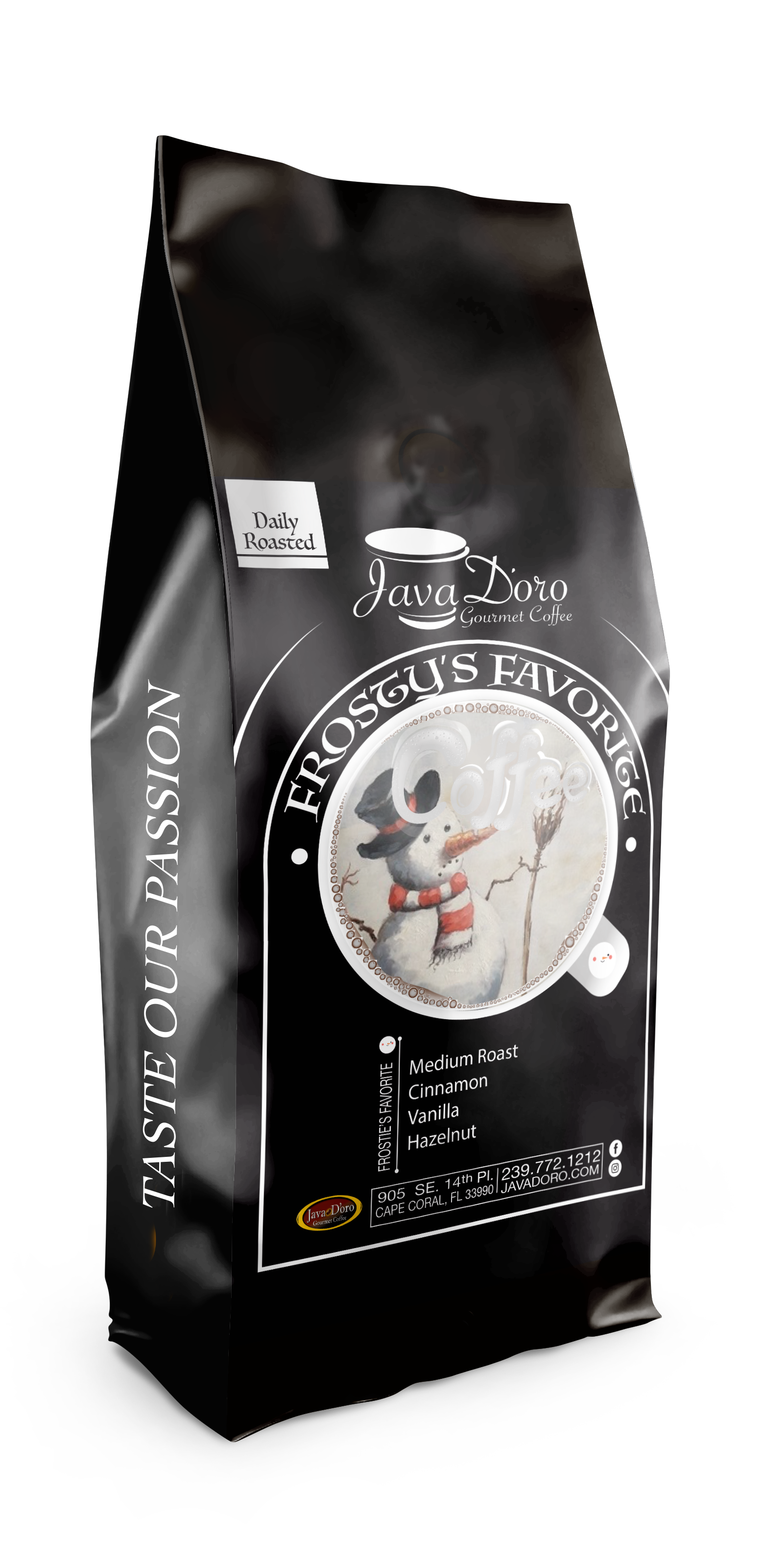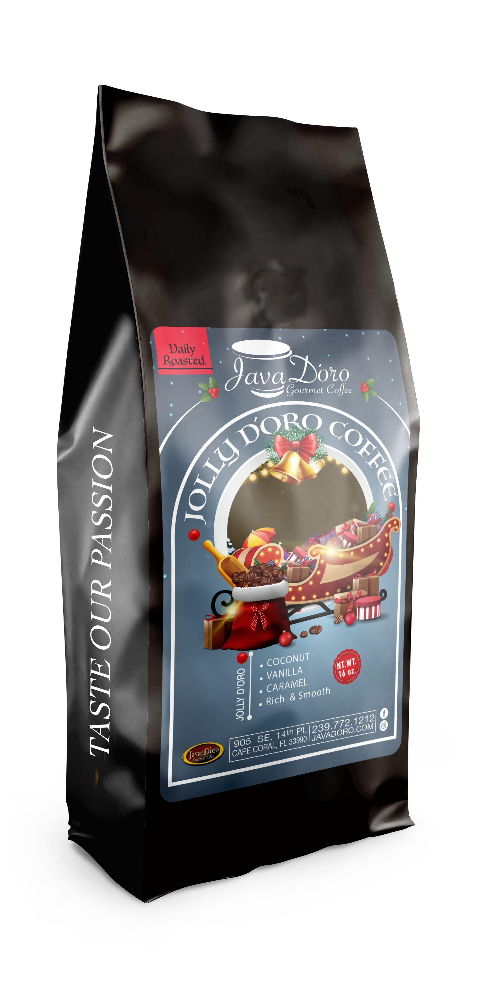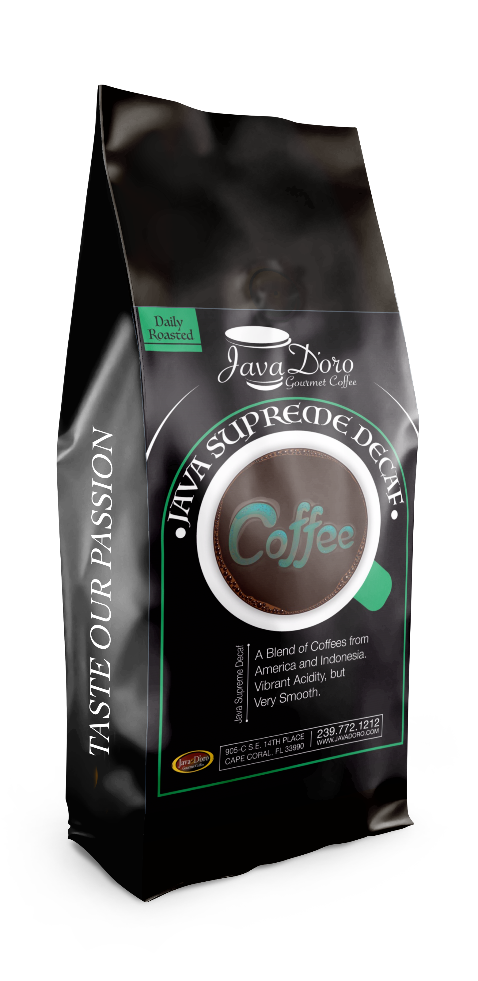 In den letzten 20 Jahren hat sich Java d'Oro zum Kaffeeröster der Wahl für die besten Coffeeshops, Cafés, Restaurants und Privatverbraucher im Südwesten Floridas entwickelt. Wir sind stolz auf die Qualität unserer Produkte und die Beziehungen, die bei jeder Tasse entstehen. Java d'Oro ist ein Kaffeespezialitätenunternehmen in Cape Coral, FL. Unsere Röstmeister verwenden Profilierungstechniken, um den besten Geschmack und das beste Aroma aus unseren speziellen Arabica-Bohnen herauszuholen. Jede kleine Charge wird von unserem Röstmeister perfekt geröstet. Java d'Oro ist in Familienbesitz und wird betrieben. Die Familie Latassa röstet seit 1998 Kaffee in Cape Coral, und unsere Leidenschaft für großartigen Kaffee ist seitdem gewachsen. Wir hoffen, Sie wissen den zusätzlichen Aufwand zu schätzen, den wir unternehmen, um eine erstklassige Tasse herzustellen. Wir gehen keine Kompromisse bei der Qualität ein und hoffen, dass Sie die Begeisterung und unser Engagement teilen. Unsere Mission ist es, Ihrem Leben einen kleinen Glücksmoment zu verleihen. Jeden Morgen entspannen Sie sich und trinken eine Tasse Java d'Oro „Passion“.