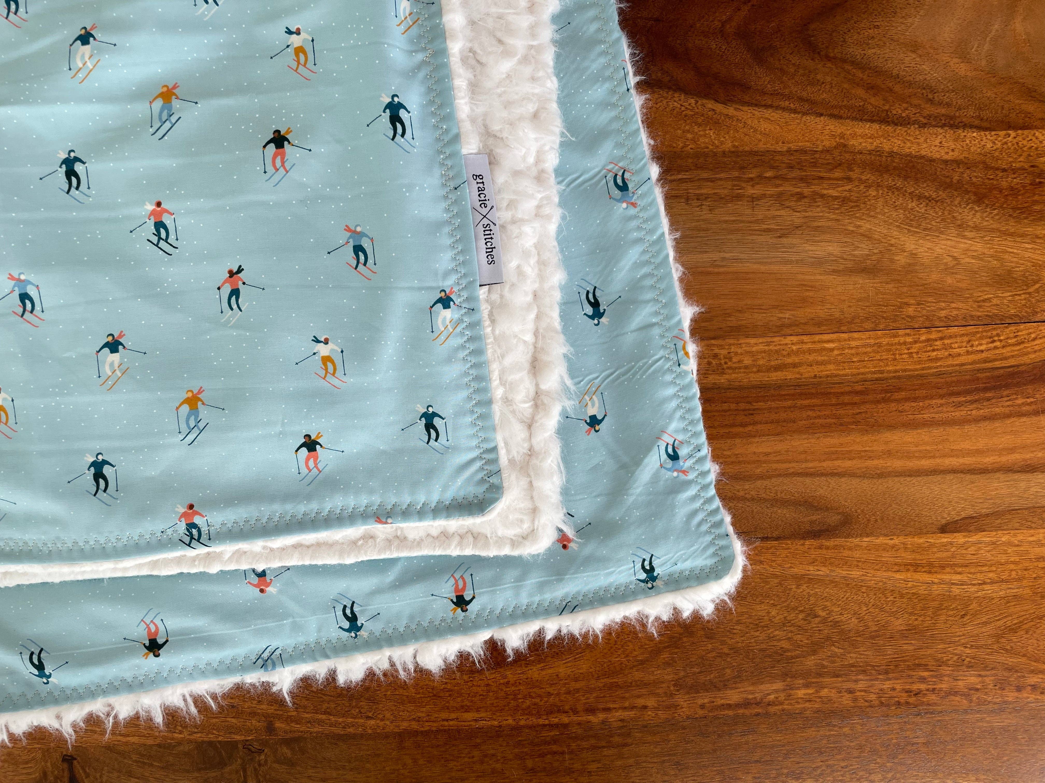 Die Decken von Gracie Stitches werden von Mama, Künstlerin, Lehrerin und Handwerkerin Laura Tamucci in Steamboat Springs, Colorado, handgefertigt. Jeder Schritt findet an einem großen Küchentisch mit Blick auf das Yampa-Tal statt. Von der Auswahl hochwertiger und bezaubernder Baumwolldrucke über das Zuschneiden von vielen Metern weicher und flauschiger Sherpa-Rückseite bis hin zum Zusammennähen von Decken, Aufrollen und Zubinden mit einer Schleife — diese Decken sind echte Colorado-Einheimische. Ich meine es ernst, wenn ich sage, dass es mit Liebe genähte Decken sind. Die Produkte von Gracie Stitches erinnern Sie daran, dass Handarbeit Kraft hat. In jedem Stück können Sie Absicht, Zeit, Fürsorge, Liebe und Freude spüren.