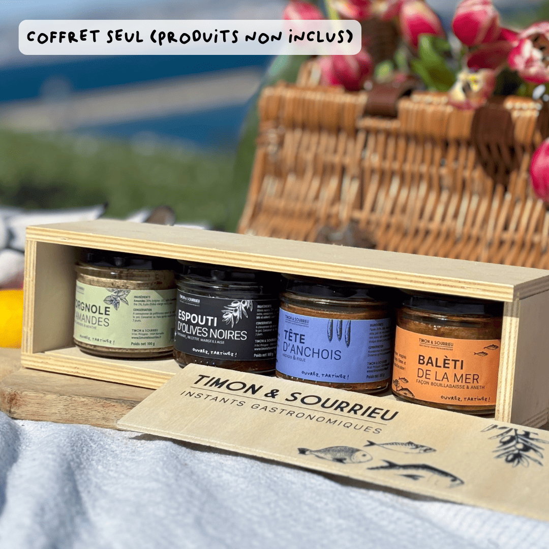 Seit Ewigkeiten befreundet, haben sich der mit einem Michelin-Stern ausgezeichnete Marseiller Koch Guillaume Sourrieu und Jean-Marc Timon-David zusammengetan, um Ihnen ihr Können durch eine Auswahl an Feinkostprodukten näherzubringen. Jedes Rezept, sorgfältig ausgearbeitet und inspiriert von mediterranen Aromen, vereint Authentizität und Originalität. Ihre Kreationen wurden entwickelt, um Ihre Aperitifs und geselligen Momente zu veredeln, perfekt, um echte gastronomische Augenblicke zu teilen!
