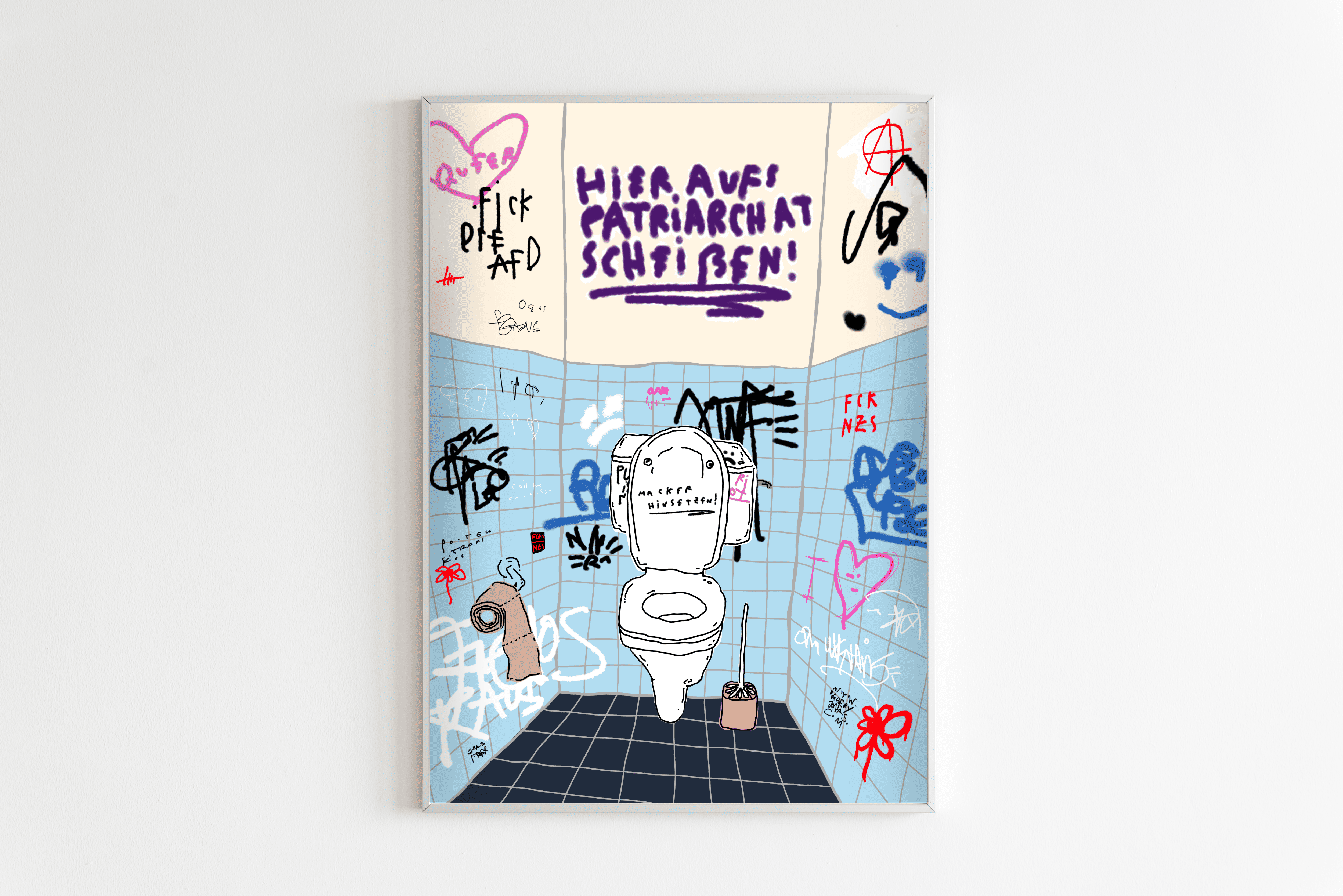 Mein Leben lang habe ich schon gekritzelt und gemalt was das Zeug hält und da war mir schon immer klar, das will ich mal werden. Was genau das war wusste ich garnicht, aber ich wollte schon immer meine Kunst an die Leute bringen. Über die letzten Jahre hat sich mein Stil entfaltet. Wenn mir Bekannte immer sagen "Wow, dein Stil hat sich so krass weiterentwickelt!" antworte ich meistens, "Nein, mein Stil hat sich nicht weiterentwickelt, ich habe nur angefangen mich zu befreien von Druck, Perfektion und gesellschaftlichen Erwartungen!" Dabei geht es in meiner Kunst um die Perfektion im Unperfekten. Meinen Stil betitele ich als bunt und kindlich und das finde ich toll! Meine Kunst ist stark geprägt von gesellschaftlich relevanten und politischen Themen, wie Antifaschismus und Queer-Feminismus, denn ich möchte für meine Themen einstehen und durch meine Kunst auch ein mini Stück Message in die Welt tragen. Für viele ist es nicht viel, doch für mich bedeutet es die Welt! Meine Arbeit als Künstler ist parallel zu einem Studium entstanden, welches ich auch abgeschlossen habe. Stolz kann ich mich auch Mediendesigner nennen. Vielleicht schaust du dich mal um und dir gefällt was ich mache!