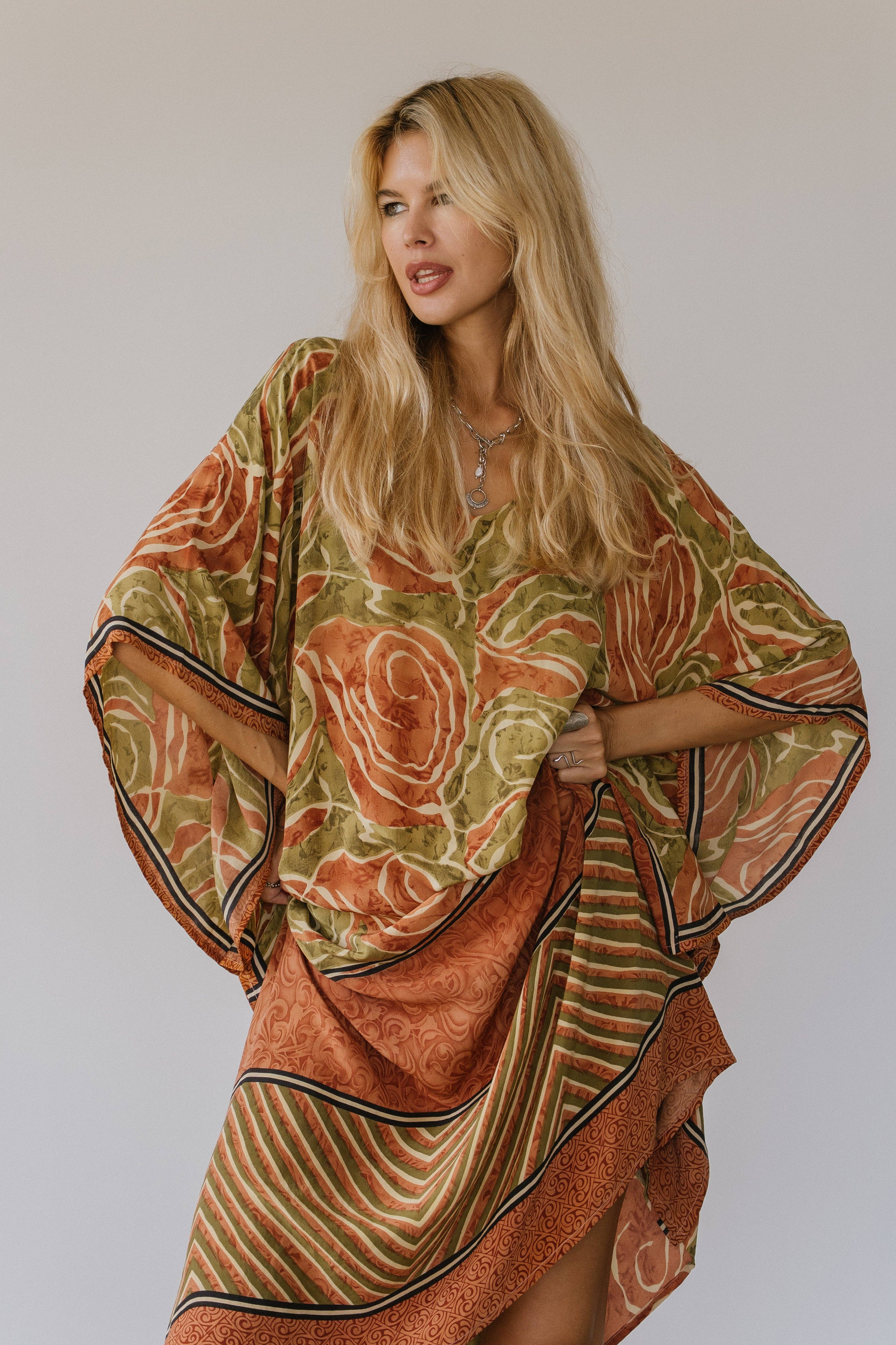 2014 reiste die Modepublizistin Elissa Kravetz nach Südindien und traf auf eine bemerkenswerte Familie, die Vintage-Saris bezieht. Elissa hat mehr als 20 Jahre in der Modeindustrie von New York und Los Angeles gearbeitet und so etwas wie diese Stoffe noch nie gesehen. Aus tiefem Wunsch, dieser einheimischen indischen Familie zum Gedeihen zu verhelfen, und der wilden Begeisterung für den Stoff eine Marke war geboren. Die schönen Vintage-Seiden werden von Hand sortiert, um genau das Richtige auszuwählen Muster, das in tragbare Kunst verwandelt werden soll. Das Gebet und die Ehrfurcht vor dem Prozess stehen bei allem, was wir tun, immer im Vordergrund. Wir arbeiten langsam. Wir arbeiten mit Absicht. Jeder Stoffrest wird verwendet, sodass wir so abfallfrei wie möglich arbeiten können. Wir beschäftigen lokale Schneider und Handwerker in einem kleinen Dorf und nicht in großen Massenfabriken. Mit der Absicht, die lokale Gemeinschaft zu unterstützen, geben wir Witwen Arbeit und ernähren bedürftige Familien und Tiere. Wir machen weiter, auch wenn es sich schwierig anfühlt. Wir lernen, wir wachsen, wir hinterfragen, wir erforschen. Die ganze Zeit fühle ich mich am aufregendsten, wenn ich die Stücke sehe werde auf DIR zum Leben erweckt.