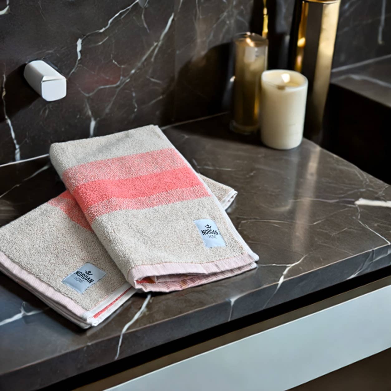 Willkommen bei Nordan Home Unser Unternehmen hat seine Wurzeln im nördlichen Ångermanland, wo wir täglich von der fantastischen Natur um uns herum inspiriert werden. Wir leben im Herzen der Hohen Küste und lieben die dramatischen Kontraste zwischen Wald, Meer und Bergen sowie unsere wechselnden Jahreszeiten – von dunklen Wintern bis zu Sommernächten, die niemals enden. Diese einzigartige Umgebung ist unsere wichtigste Inspirationsquelle. Unsere Vision ist es, zeitlose Einrichtungsgegenstände aus Naturmaterialien zu schaffen – Objekte, die Funktion und Schönheit kombinieren, mit einem Design, das über die Zeit Bestand hat und seinen Platz in Ihrem Zuhause für viele Jahre verdient. Die besten Ideen entstehen manchmal aus kleinen Alltagsproblemen. Für mich ging es darum, eine einfache, aber schöne Möglichkeit zu finden, die Handtücher an Ort und Stelle zu halten – etwas, das sowohl praktisch ist als auch sich natürlich in die Einrichtung einfügt. So entstanden unsere magnetischen Handtuchhalter aus Leder – eine clevere Lösung, bei der Funktion auf zeitloses Design trifft. Es ist ein Produkt, auf das ich wirklich stolz bin. - Marlene Sjögren Gründerin und Designerin