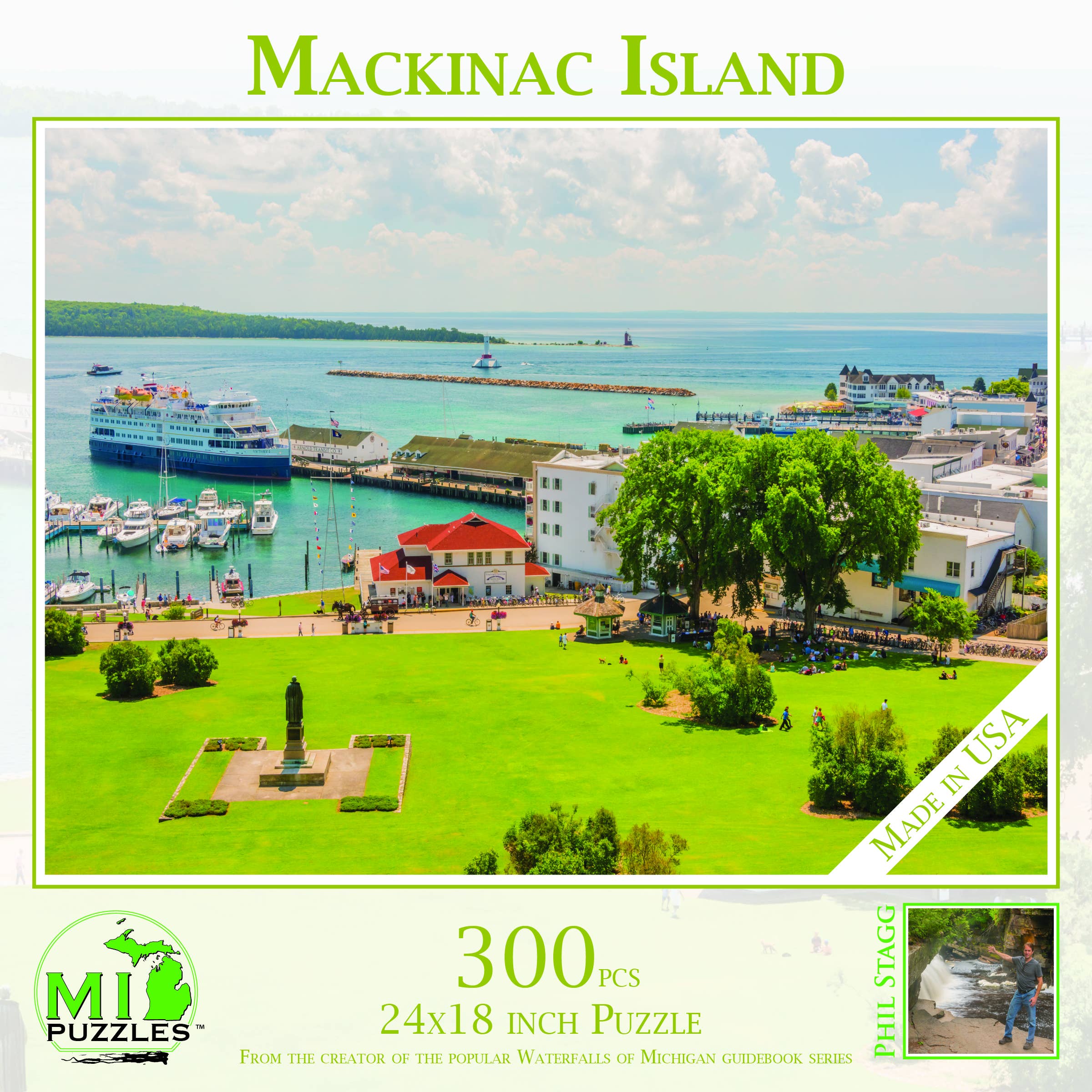 Hallo! Ich bin Phil Stagg. 2009 fing ich an, Michigans Wasserfälle zu fotografieren. Nach 9 Jahren hatte ich 5 Reiseführer geschrieben, die eine Menge Informationen über über 600 Wasserfälle in Michigan enthalten. Wir verkaufen jährlich Tausende dieser Bücher. Nachdem wir weitere Souvenirartikel hinzugefügt haben, die unsere Geschäfte verkaufen können (Postkarten, Schlüsselanhänger, Stecknadeln, Reißverschlüsse, Magnete usw.) Ich wurde nach Puzzles gefragt. Also habe ich 2018 mit 8 Puzzle-Designs angefangen. Sie sind WIRKLICH gestartet! Jetzt haben wir bis zu 300 Designs auf Lager und fast 125.000 Puzzles in unseren Lagern. Was wirst du in unserer Reihe von Puzzles finden? Erinnerungen. Ich entwerfe Designs, die eine emotionale Reaktion hervorrufen. Mir haben so viele Kunden erzählt, dass sie an diesem Leuchtturm oder an diesem Wasserfall verlobt waren. Dass sie im Urlaub immer an dieser Brücke anhalten. Dass dies ihr Lieblingstier ist. Also verkaufe ich Erinnerungen. Dinge, mit denen sich Kunden identifizieren können und an denen sie Freude haben. Ich lade Sie ein, sich den über 500 anderen Geschäften im ganzen Land anzuschließen, die unsere MADE IN AMERICA-Produkte anbieten. Bei Fragen können Sie mich jederzeit persönlich kontaktieren. (231) 920-8416 Phil Stagg