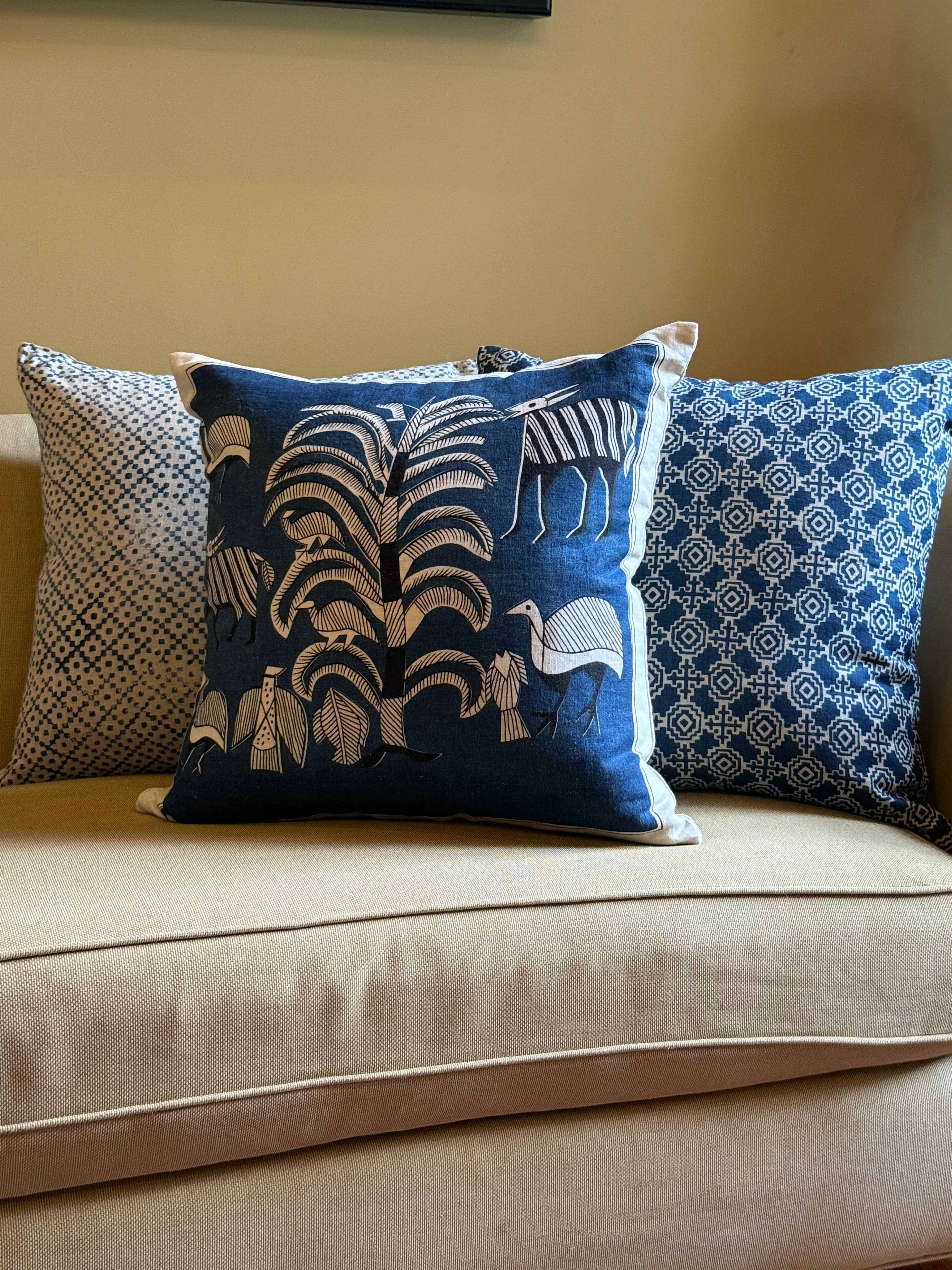 Die Geschichte beginnt mit Blöcken. Handgeschnitzte Holzblöcke mit Motiven von tropischen Blumen und Kokospalmen, Schellen aus Jasmin und Rose, Vögel wie Papageien und Pfauen, Tiere wie Affen und Tiger, kamen alle bei der Herstellung der aufwendigen Textilien des Deccan Plateaus in Südindien zusammen. Unsere Verwendung von natürlichen, botanischen Farbstoffen und azofreien Farbstoffen sorgt für eine geringe Umweltbelastung. Nachhaltigkeit, Empowerment und ethische Produktion waren schon immer unsere Prioritäten. Wir glauben an die Vorzüge der „Kleinserienproduktion“ und berücksichtigen die Prinzipien der Schaffung von Slow Textiles.