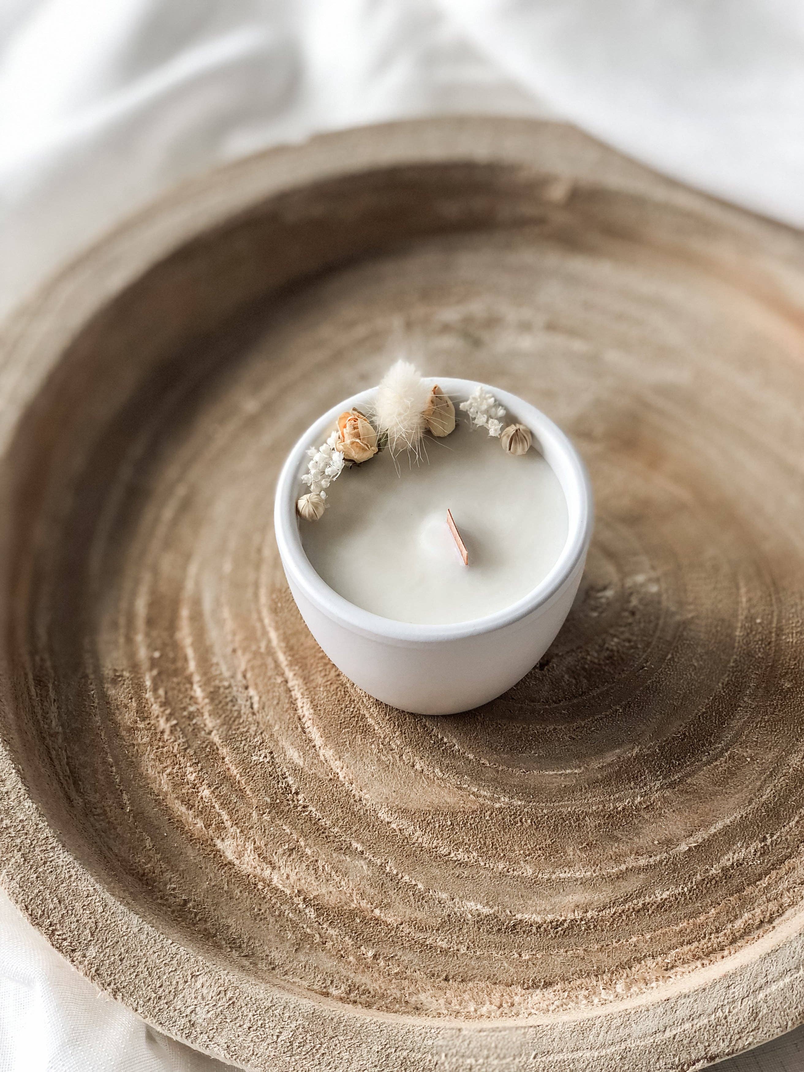 Unsere Kerzen sind mit pflanzlichem Sojawachs gefüllt und unsere Düfte werden in Grasse (Frankreich) hergestellt. Bei der Entwicklung von „Designed by Cloé“ haben wir uns auf natürliche Rohstoffe wie Beton oder Keramik konzentriert. Jede Kerze hat ein bestimmtes und einzigartiges Design, das zum Beispiel Rohstoffe mit der Süße getrockneter Blumen kombiniert.