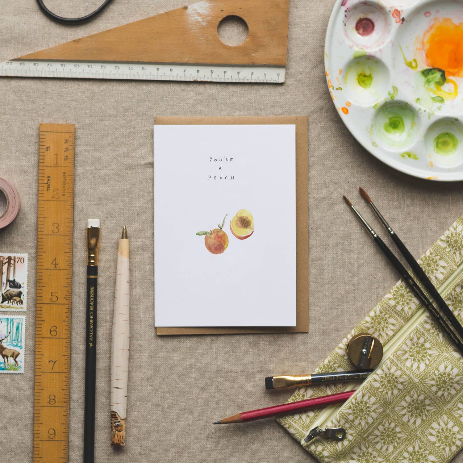 Jedes Dear Prudence Produkt beginnt damit, dass Laura ihre Farben, ihre Bleistifte, Pastelle und mehr aufnimmt. Ein sauberes, ruhiges, geordnetes Studio lässt Ideen auf leere Skizzenbuchseiten fließen... die skurrilen kleinen Charaktere, die Laura beschwört, die Texturen, die sie aufnimmt, und die Details, die sie notiert, werden später digitalisiert und in Karten, Kalender, Notizbücher umgewandelt, die bereit sind, in die Welt verschickt zu werden. Liebesbotschaften und Glückwünsche, herzlicher Dank und Worte, um Geburtstage und Hochzeitstage zu jubeln und auf der ganzen Welt in Häuser und in warme Hände zu gehen. Die Macht von Papier, Stift und Stempel und die Absichtskraft - alles im Mittelpunkt von Dear Prudence, alles im Herzen von Laura. Sehr geehrte Prudence-Karten werden mit dem allerbesten Papierbestand aus nachhaltigen Wäldern hergestellt. Wir verwenden recycelte Umschläge und bieten jetzt eine cello freie Verpackung an.