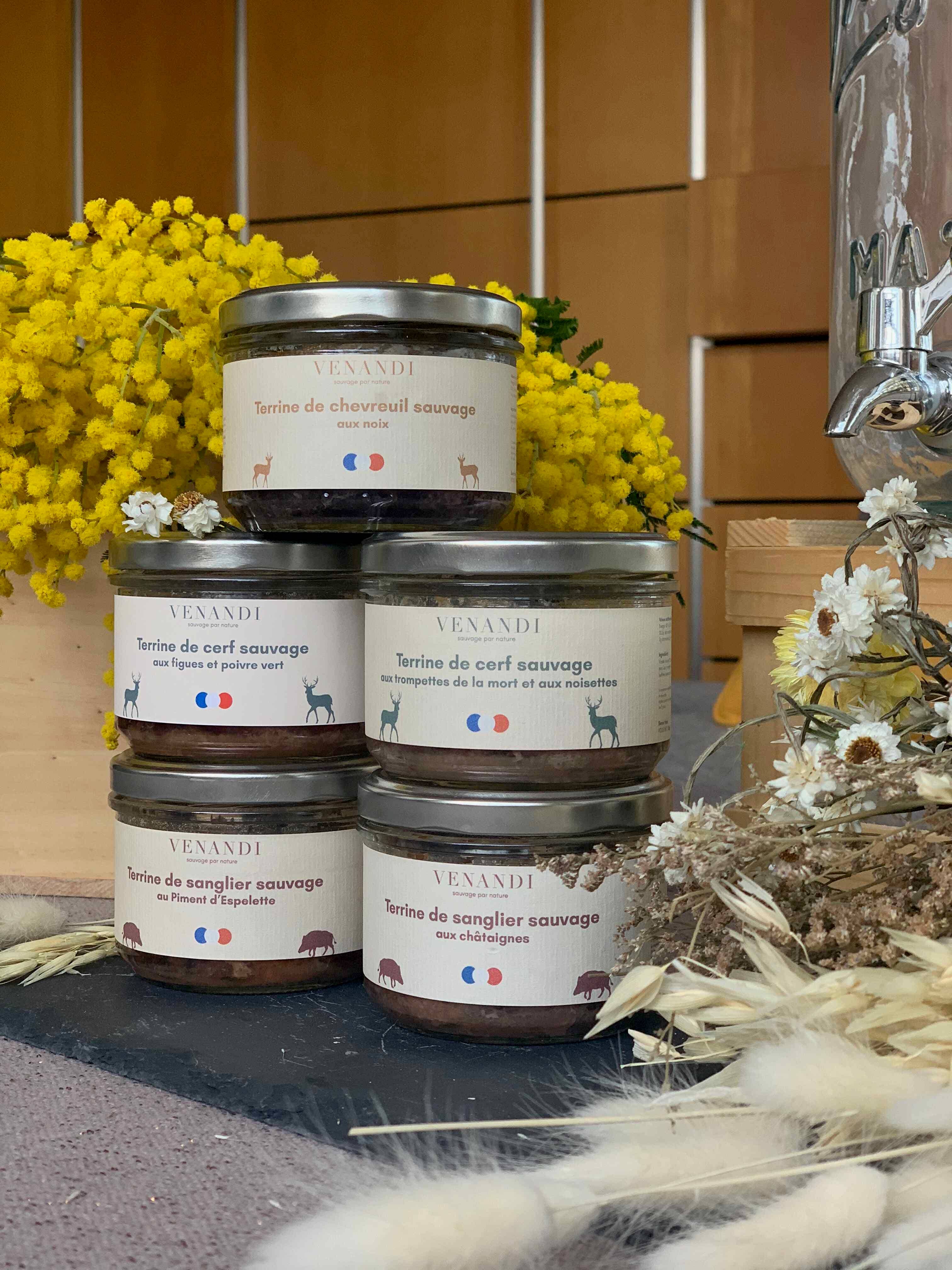 Das VENANDI-Abenteuer ist in erster Linie ein verantwortungsbewusstes, menschliches und sehr Gourmet-Abenteuer rund um Wildfleisch. Die Idee ist, Produkte aus Wildfleisch aus unseren Wäldern zuzubereiten, um es (wieder) in die Szene der französischen Küche zu stellen! Zu diesem Zweck holen wir Wild von nachhaltigen Jagden zurück, bevor wir es in der Region Lyon für einen möglichst kurzen Kreislauf verarbeiten. Unser Ansatz soll unseren Werten nahe sein, das heißt mit Authentizität, Transparenz und Qualität! Unser Ziel ist es, Wildfleisch hervorzuheben. Unsere Produkte bestehen zu 50% aus Wildfleisch, während der gesetzliche Schwellenwert in Frankreich bei 20% liegt. Unsere Würste und Terrinen sind daher im Vergleich zu „klassischen“ Wurstwaren sehr fettarm.