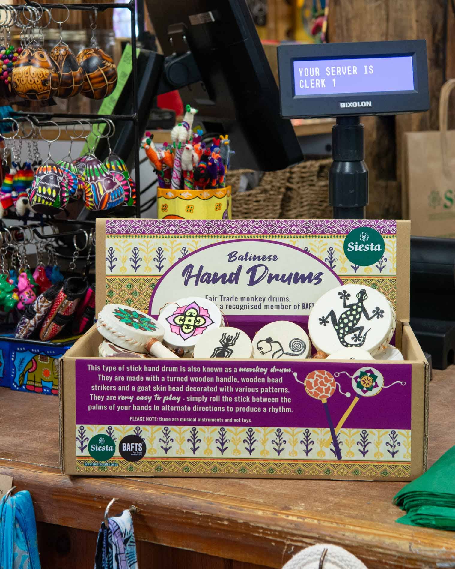 Wir sind ein freundlicher Fair-Trade-Großhändler, der sich mit ungewöhnlichen und interessanten Geschenken, Musikinstrumenten und Kleidung aus der ganzen Welt befasst. Wir sind stolzes Mitglied von BAFTS, dem britischen Verband der Fair-Trade-Geschäfte und Lieferanten. Siesta wurde 1983 mit einem Marktstand gegründet, an dem Baja-Hoodies und Decken verkauft wurden, die von Reisen durch Mexiko mitgebracht wurden (daher der Name!). Unsere mexikanischen Baja-Tops werden aus einem Baumwoll-/Acrylgarn hergestellt, das aus recycelten Stoffen hergestellt wird, was sie zu einer großartigen umweltbewussten Wahl macht.