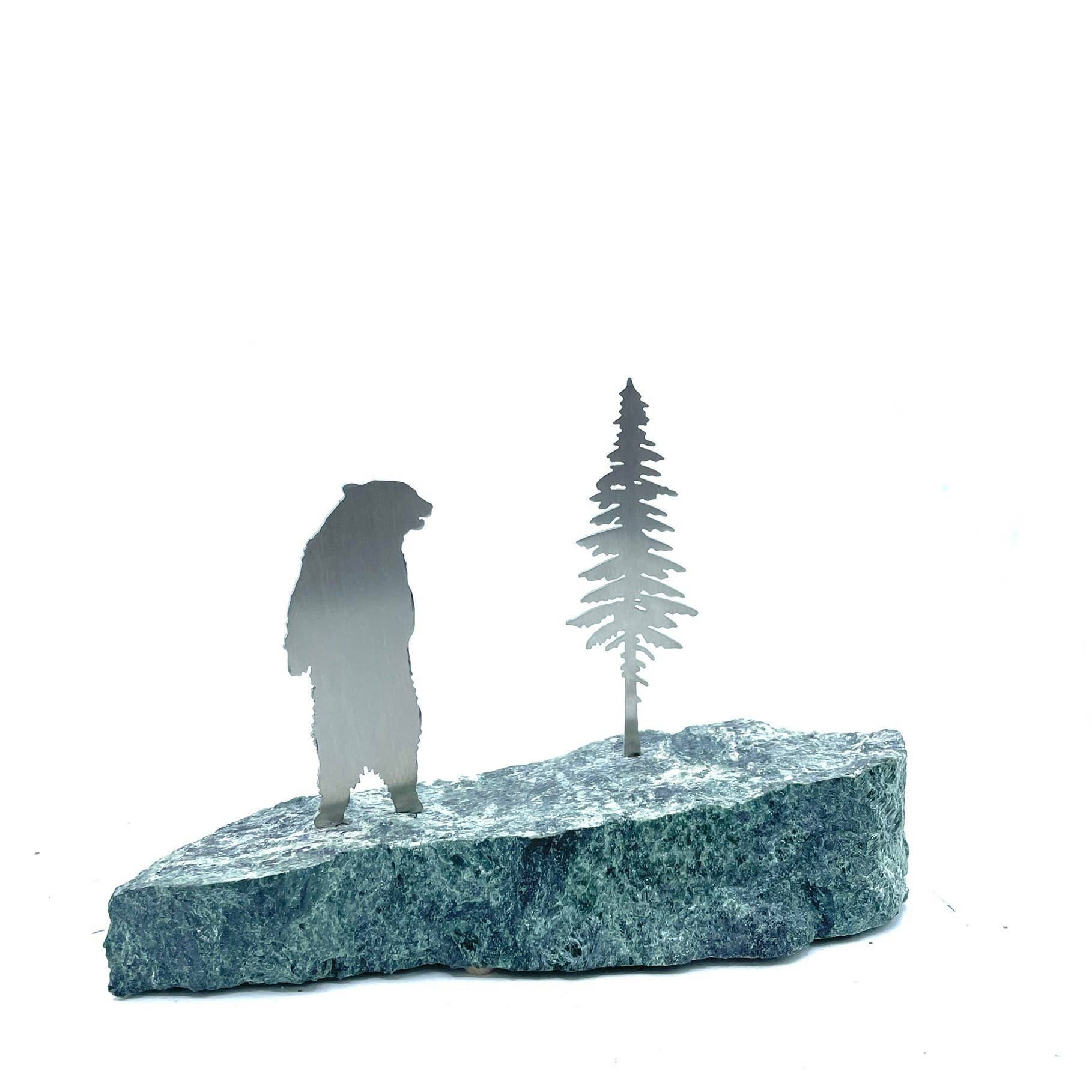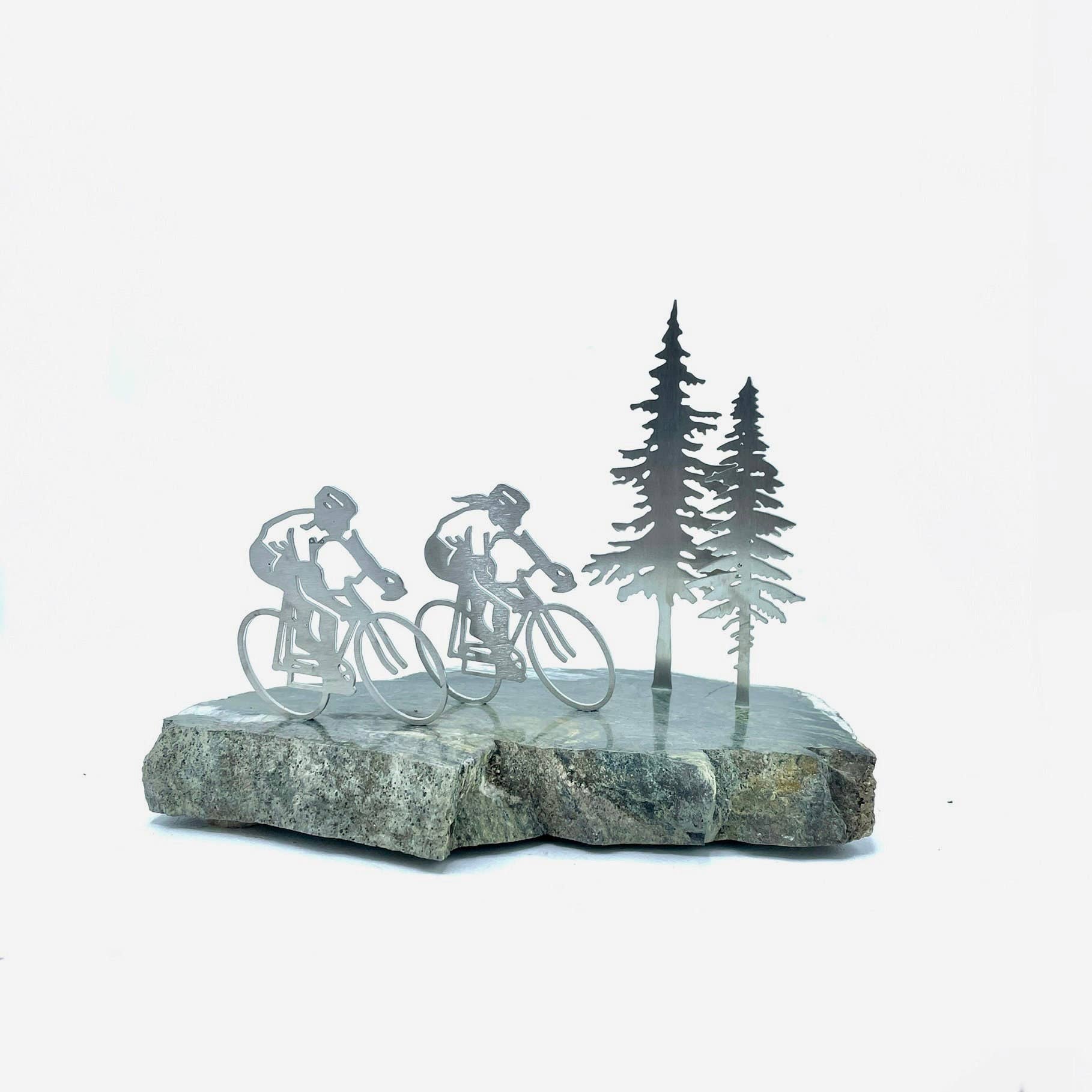 Vermont Rocks! ist ein winziges Unternehmen in der südlichen Stadt Newfane in Vermont, nördlich von Brattleboro und in der Nähe des Zusammenflusses der Flüsse West und Rock. Meine lange Geschichte der Outdoor-Aktivitäten und des Bauens hat mich zu meiner gegenwärtigen Leidenschaft geführt - Stein und Metall künstlerisch zu kombinieren. Meine Frau Terry und ich finden und wählen sorgfältig alle Felsen aus, die schließlich zu den Sport- und Wildtierskulpturen werden, die wir kreieren. Wir entwerfen auch die Figuren, die aus Edelstahl, Kupfer und Aluminium lasergeschnitten sind. Jedes Kunstwerk von Vermont Rocks ist handgefertigt, völlig originell und ist ein wirklich einzigartiges Geschenk oder eine Ergänzung für Ihr Zuhause. Wir sind stolz auf unsere Arbeit und freuen uns sehr, Teil von Faire zu sein. Zeigen Sie Ihre Leidenschaft! John und Terry Davis