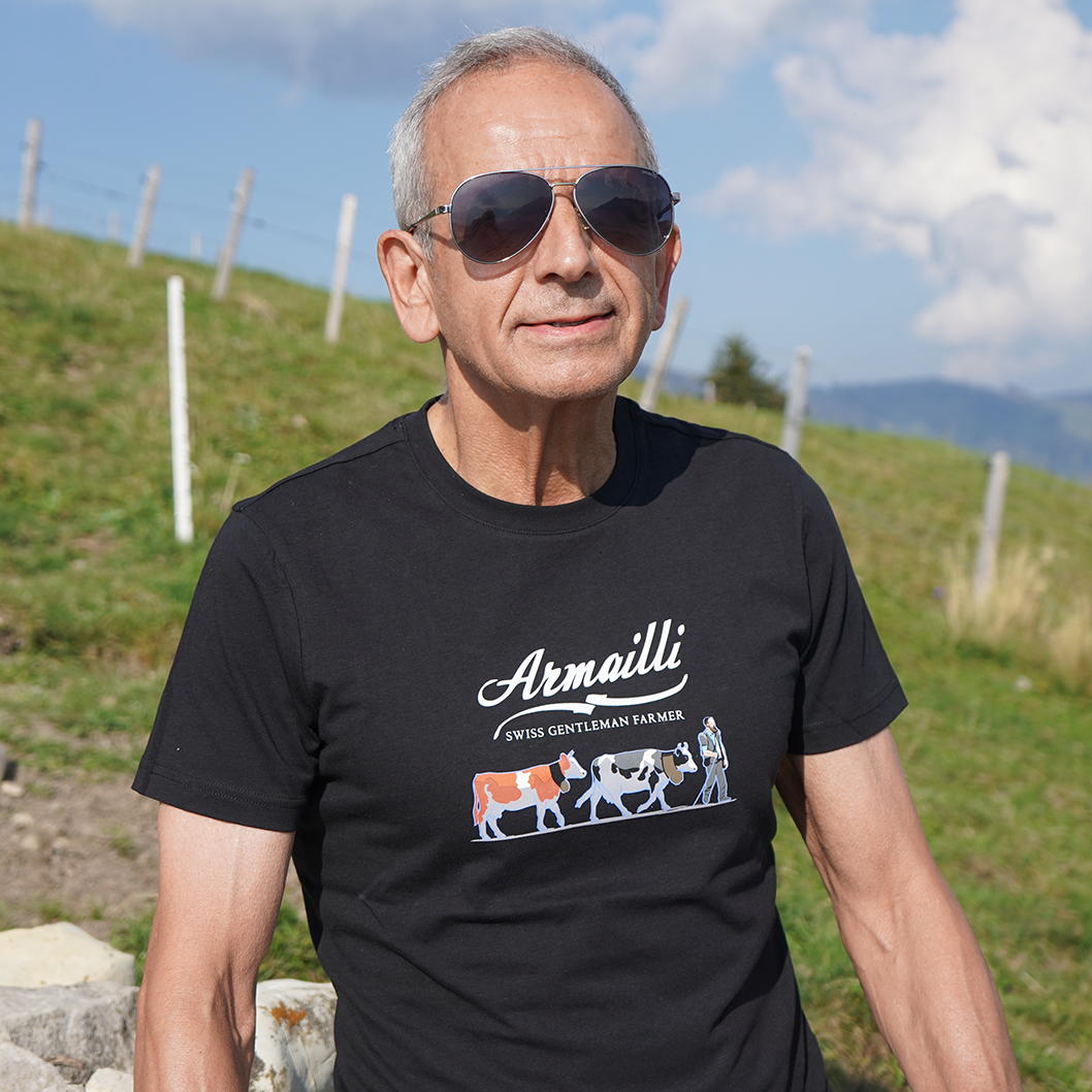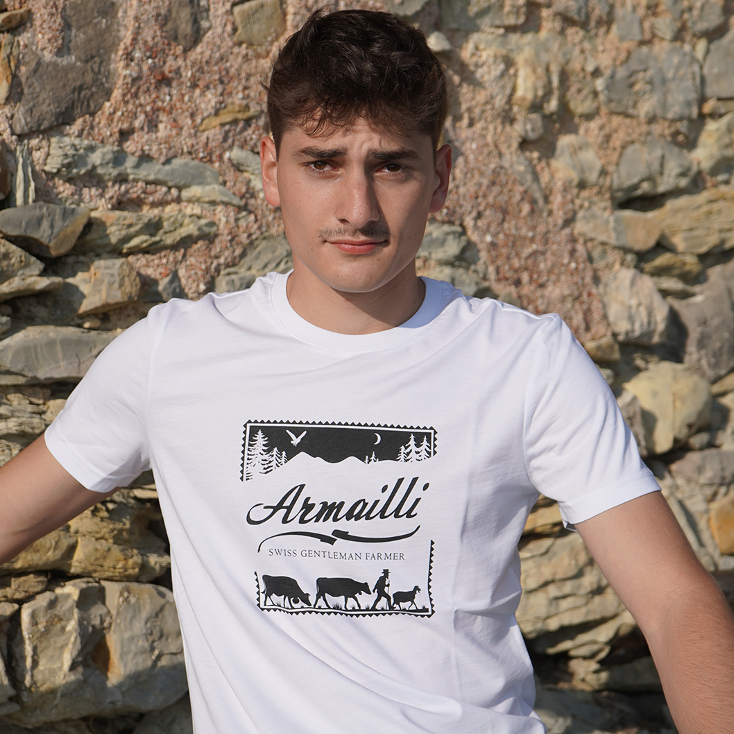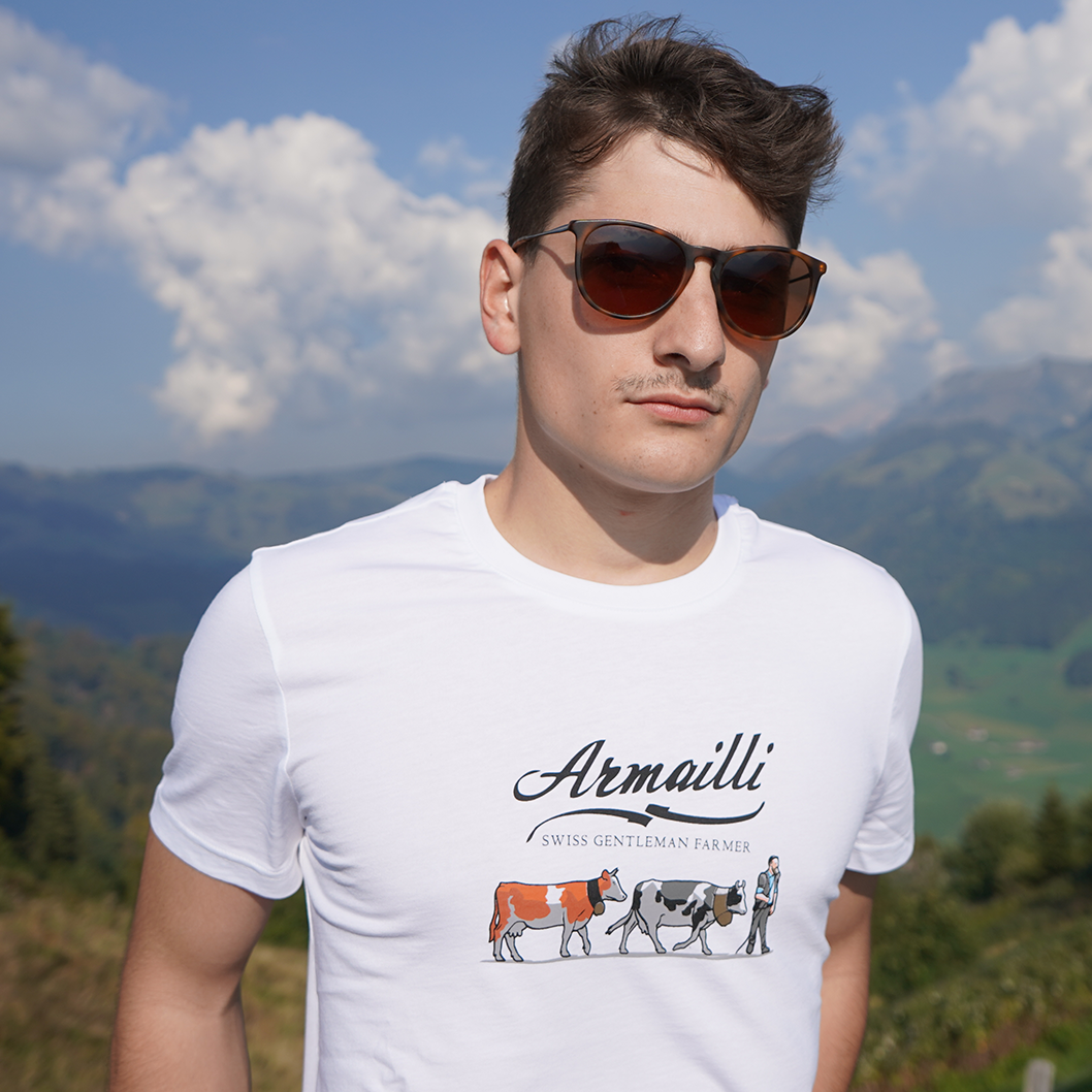 Armailli, eine Schweizer Marke für ikonische T-Shirts für Gentleman Farmer! „Armailli richtet sich vom Vater bis zum Sohn an die Schweizer, stolz auf ihre Landwurzeln und Traditionen, aber auch an alle Liebhaber schöner Dinge.“ Diese erste Kollektion, genannt Swiss Gentleman Farmer, ist eine Hommage an die traditionelle und volkstümliche Kleidungsikonographie der Bergschäfer. Ein lässiger Gentleman-Farmer-Look, aber mit Stil. Armailli ermöglicht es Ihnen, sich in einer ländlichen und städtischen Umgebung zu behaupten und sich gleichzeitig mit den positiven Werten der Schweiz in Einklang zu fühlen und gleichzeitig einen originellen und lässigen Look zu zeigen. Ein Liebhaber der Natur, aber auch der maskulinen Eleganz, kleidet sich der Gentleman Farmer in zeitlose Klassiker, die immer schick sind. ARMAILLI Eleganz auf dem Land. Unser Wunsch ist es, die von Authentizität und Eleganz durchdrungenen Elemente dieses Universums neu zu interpretieren und sie durch eine entschieden zeitgemäße grafische Ästhetik wiederherzustellen.