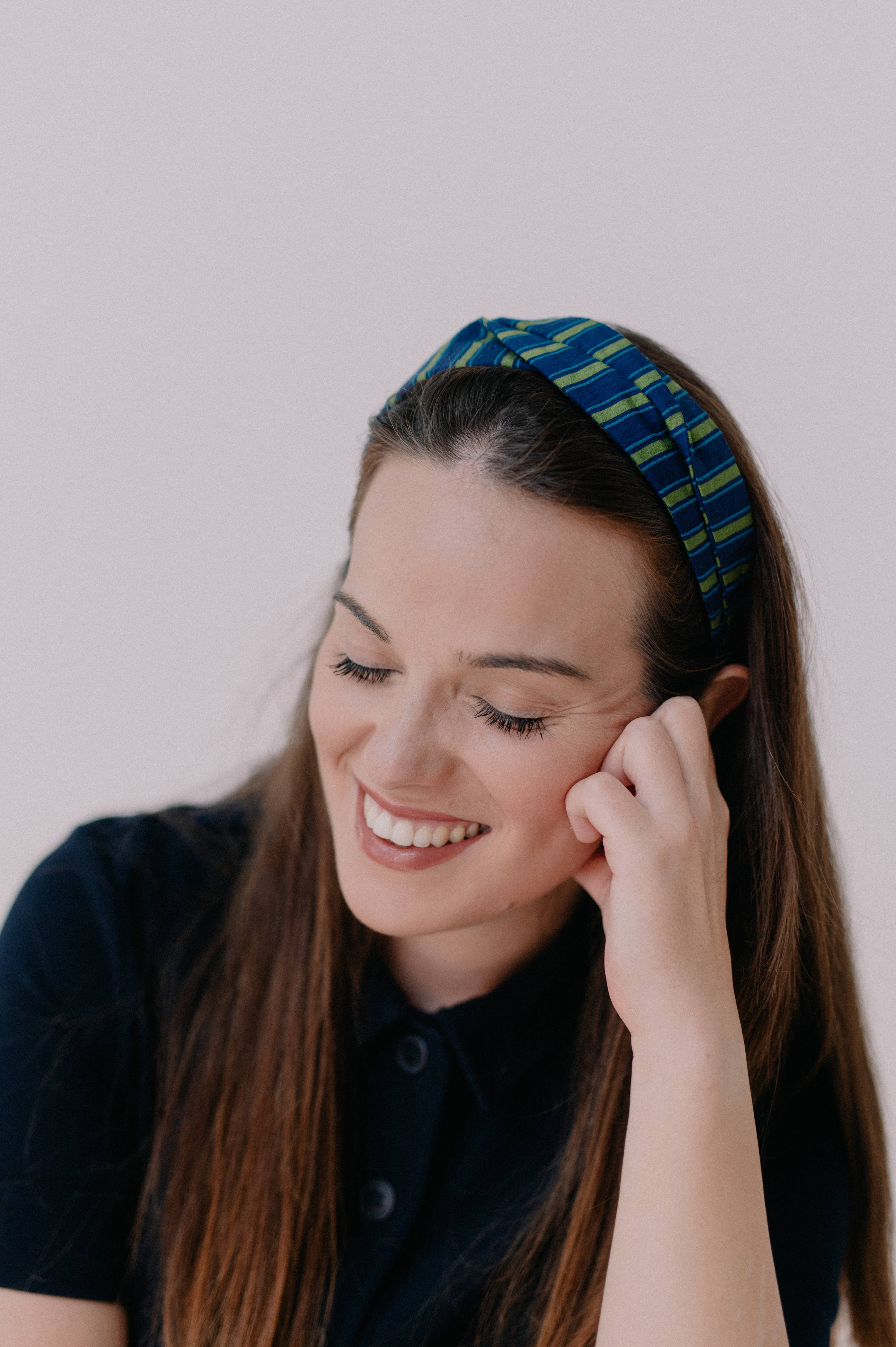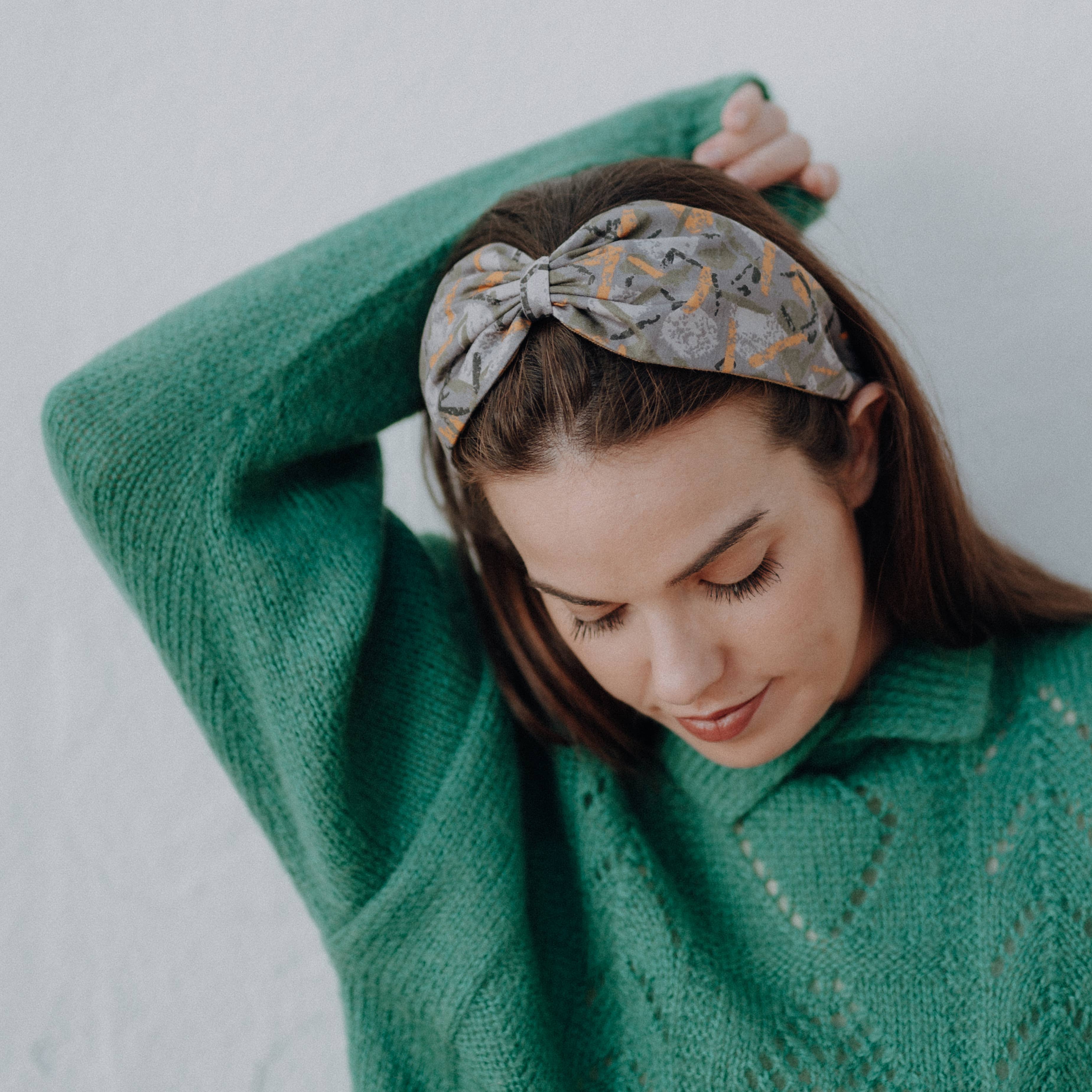 Alles begann als Spiel zwischen Fäden und Nähten in der Werkstatt meiner Großmutter, als ich noch ein Mädchen war. Ich hatte bald das Gefühl, dass dies meine große Leidenschaft sein würde. Einige Jahre später wurde Nuevemí geboren, das als Ort begann, an dem man mit Stoffen spielen konnte, um Kleidungsstücke herzustellen, um zu einer kleinen Marke von Haarschmuck zu werden. In meinem kleinen Studio in Barcelona entwerfe, schneide und fertige ich jedes der Stücke mit den Zutaten, die mir am besten gefallen: Persönlichkeit, Weiblichkeit, Farbe, Spaß und ein Hauch Vintage-Romantik. Es ist eines meiner großen Ziele, die Turbane und alle Teile, die ich mache, im Laufe der Zeit haltbar zu machen. Daher trägt jedes Stück einen Baumwollbeutel mit sich, der einzeln von mir hergestellt und bedruckt wurde, um eine bessere Konservierung zu gewährleisten und viele, viele Jahre zu halten. Ich liebe es, mich in den kleinen Läden in der Stadt oder in Lagerhäusern mit Lagerschutt zu verirren. Man weiß nie, wo man einen großen kleinen Schatz finden kann. Jede Ecke von Barcelona ist eine Inspiration; jedes kleine Geschäft, in dem Sie die Materialien kaufen, ist ein ziemliches Abenteuer, was mich dazu bringt, mir vorzustellen, wie das nächste Stück aussehen wird.