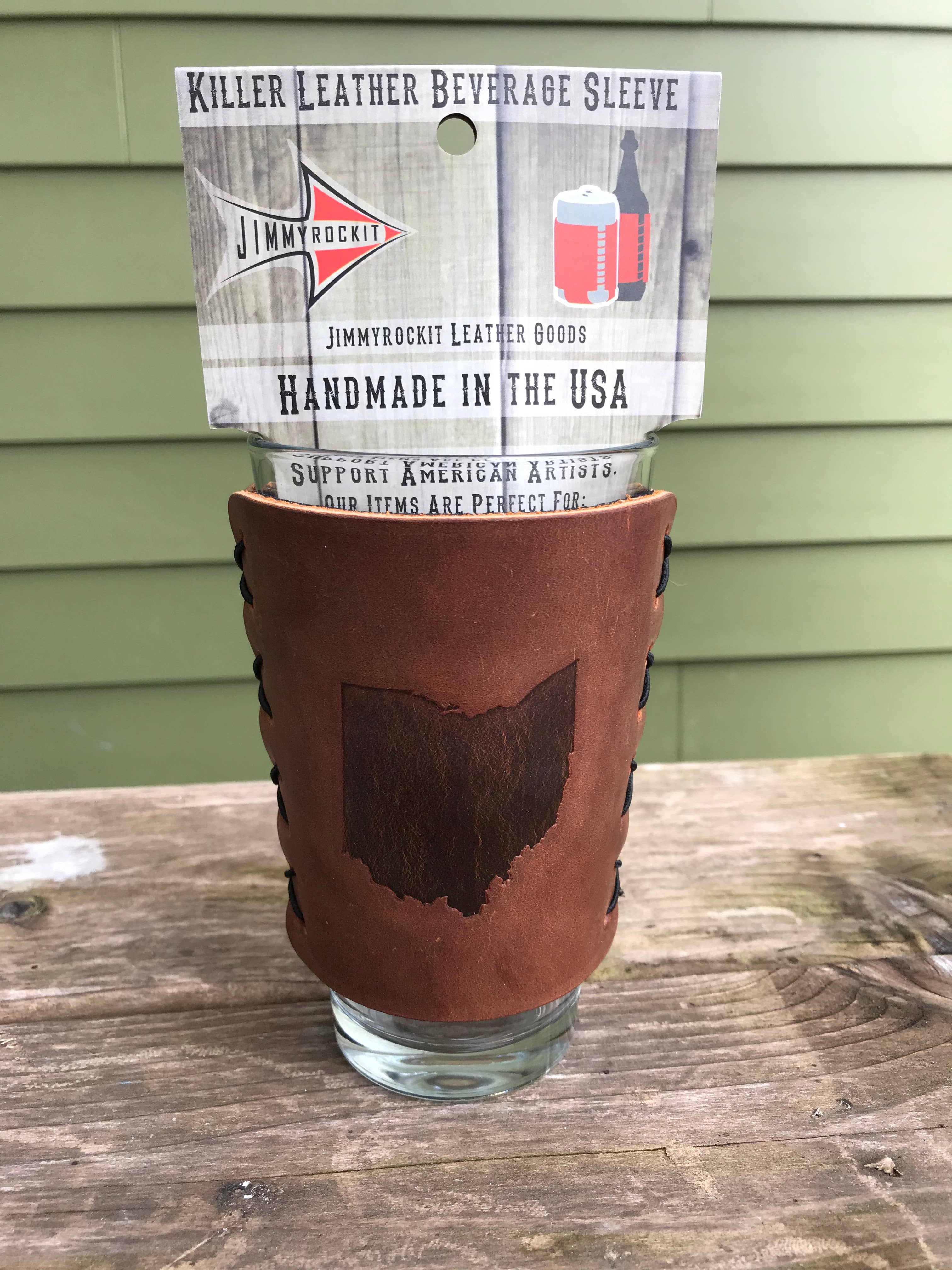 Wir sind spezialisiert auf die Herstellung von Killer-Lederartikeln für den Alltag. Alles Leder, ganz in den USA hergestellt! Zu unseren Bestsellern gehören Lederuntersetzer, Dosenkühler aus Leder, mit Leder umwickelte Flaschen, lederumwickelte Pint-Gläser und lederumwickelte Rocks-Gläser. Wir sind darauf spezialisiert, Ihr Logo oder Ihre Grafik auf einem unserer Produkte zu platzieren. Wir haben über 300 Lagerdesigns, die in das Leder gestempelt sind. Wir können unsere Lederprodukte auch mit Ihrem Logo, Ihrem Image, Ihrer Veranstaltung, Ihrer Hochzeit, Ihrer Marke, Ihrer Stadt, Ihrem Bundesstaat oder lokalen Sehenswürdigkeiten anpassen. Wir fügen ständig neue Designs hinzu. Welche Ideen hast du? Lassen Sie uns helfen, Lederartikel speziell für Sie und Ihre Kunden zu kreieren. Nehmen Sie Kontakt auf und lassen Sie uns darüber chatten!
