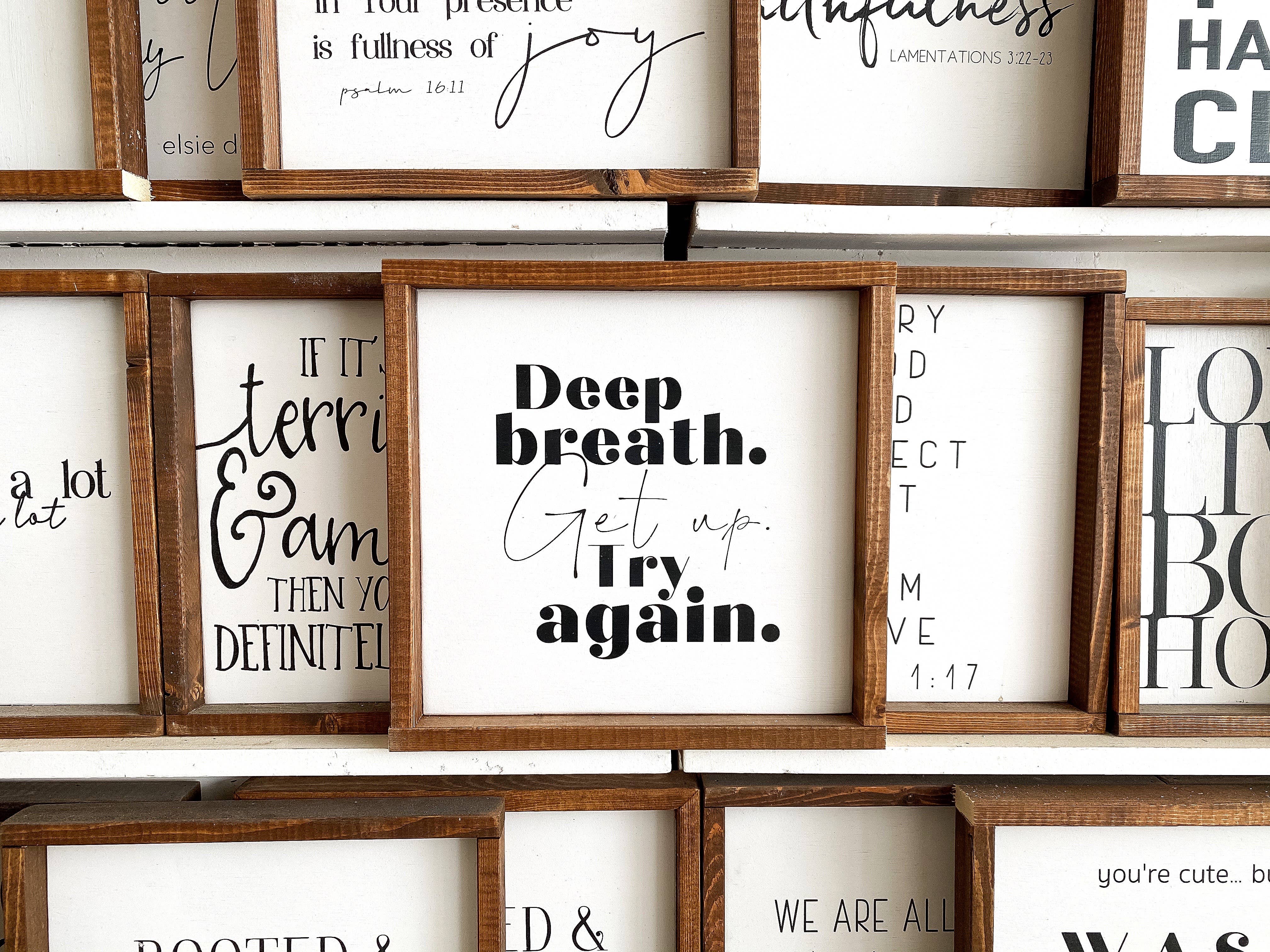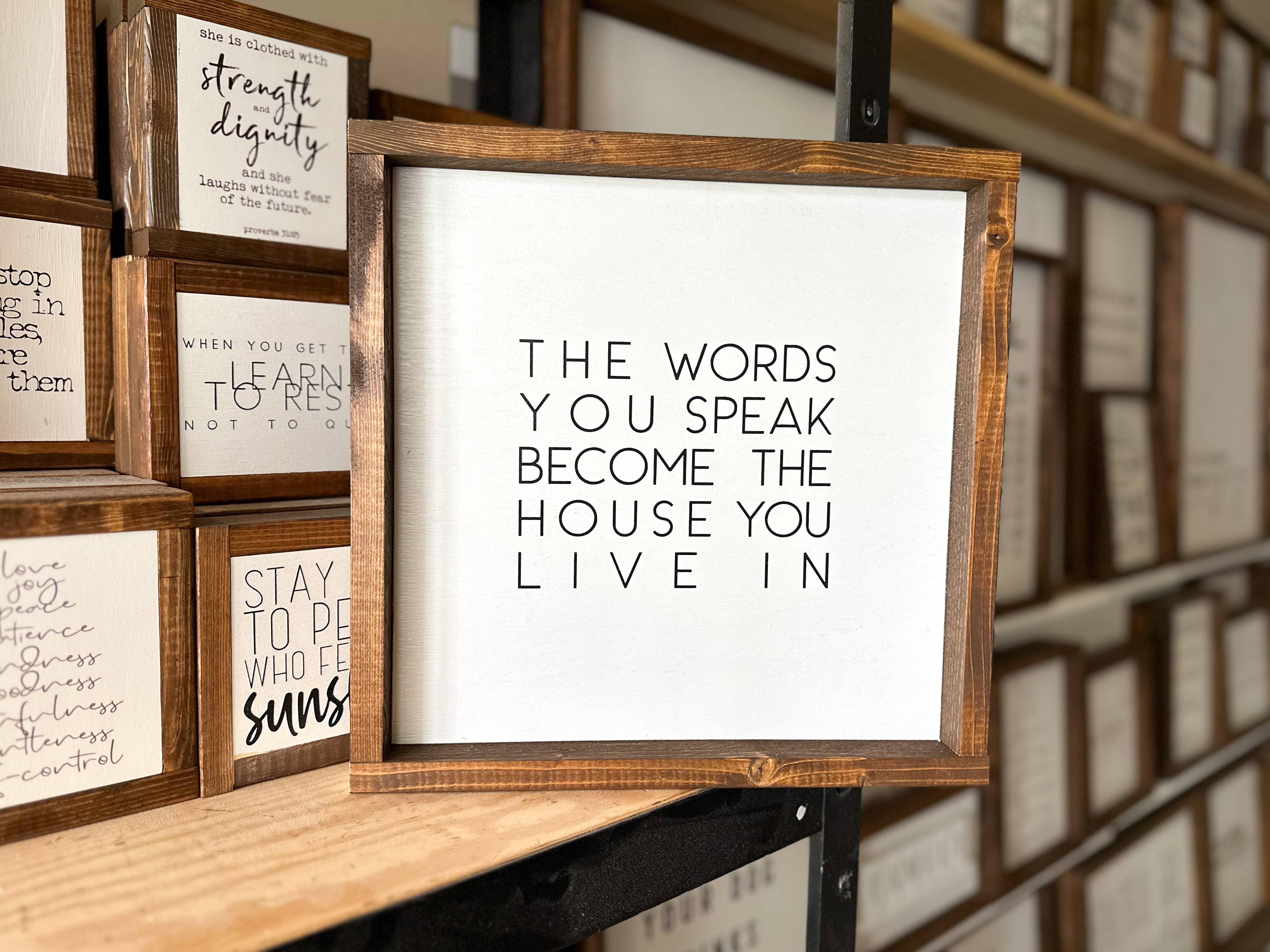 Ich lebe ein erfülltes Leben als Mutter von zwei Jungen, einer Ehefrau und der Schöpfer meines Traumjobs. Ich habe vor etwas mehr als 5 Jahren angefangen, Vollzeit Zeichen zu machen und glaube fest daran, dass Worte die Kraft haben, zu inspirieren, zu motivieren und zu erheben. Ich mache jedes Schild mit unglaublicher Sorgfalt und Liebe von Hand. Ich verpflichte mich, Qualitätsprodukte herzustellen, die die Wahrheit fördern und die Wahrheit sagen!