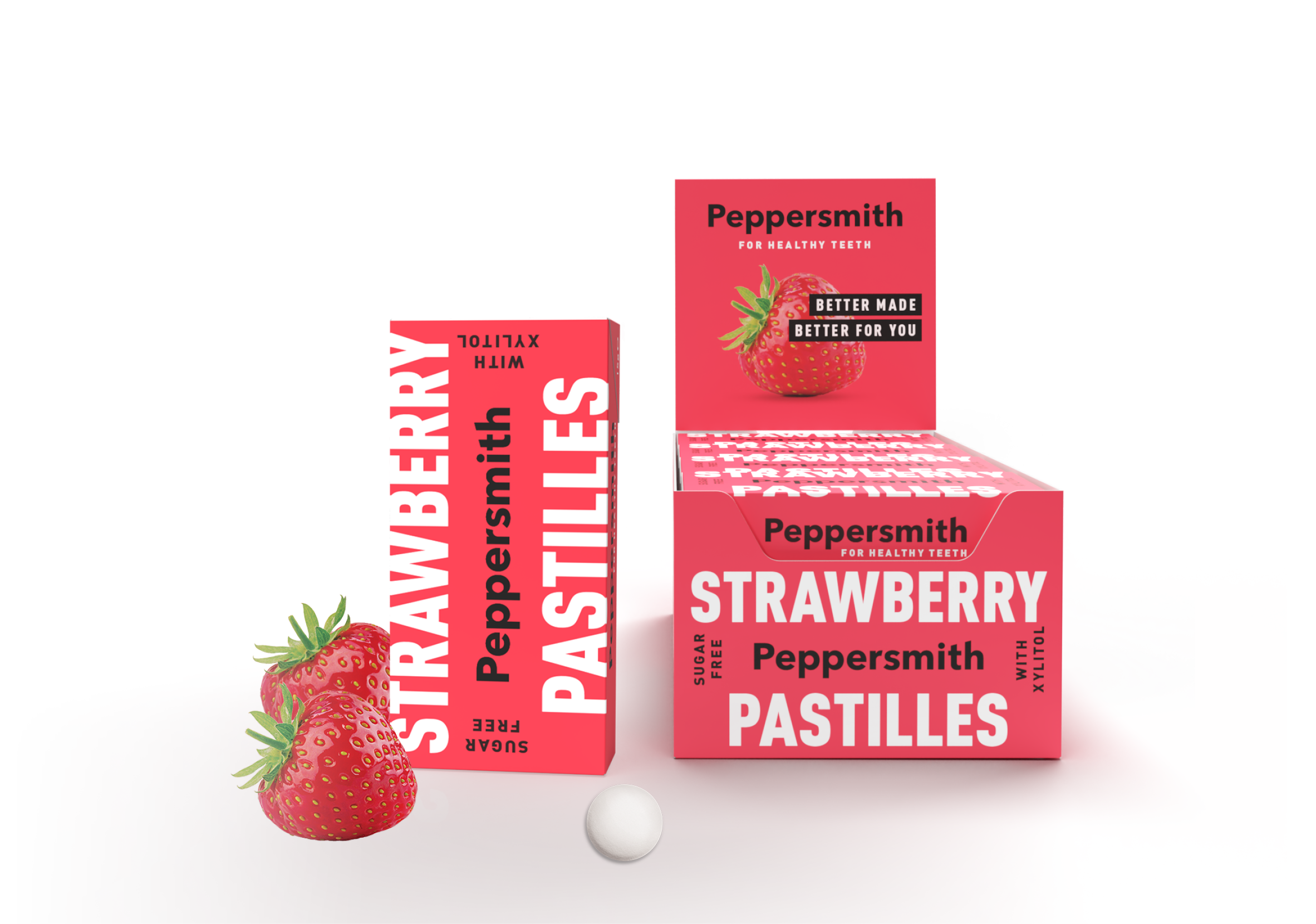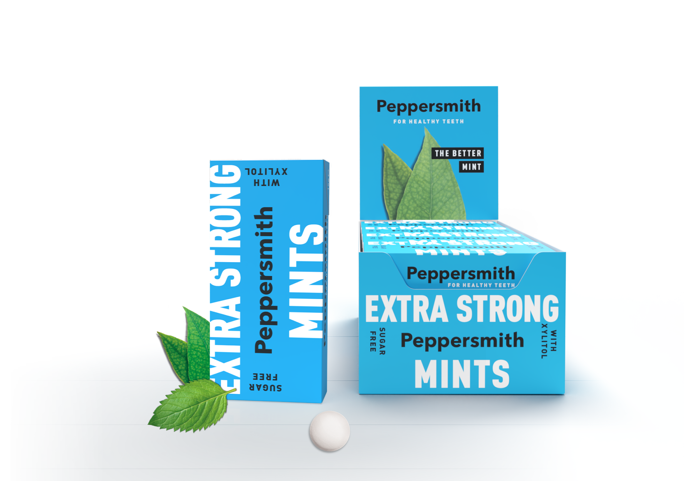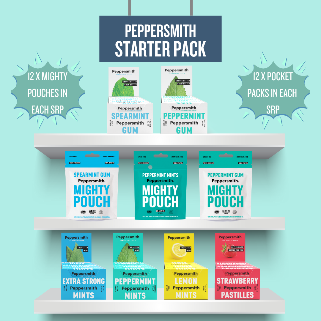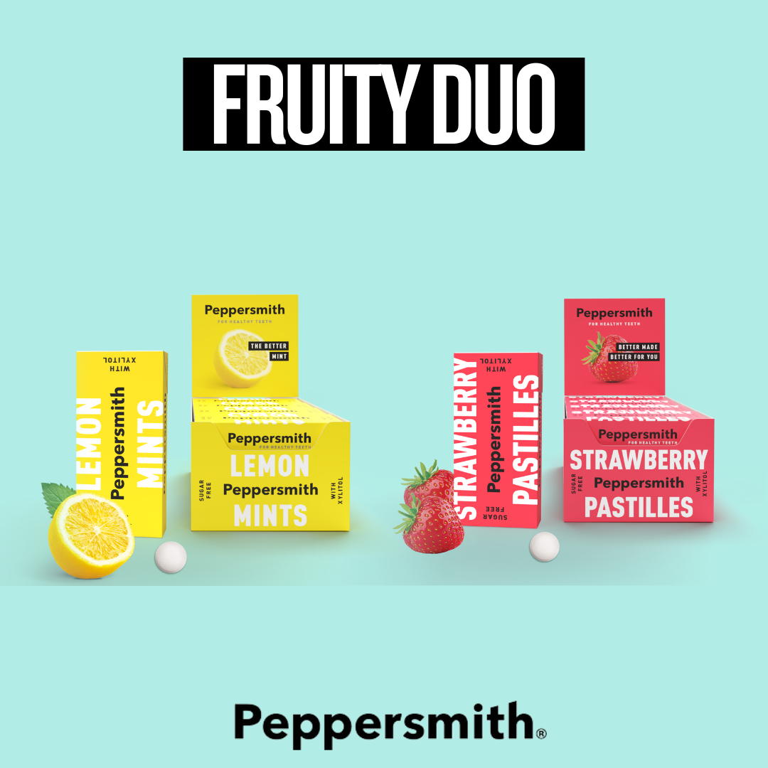 WILLKOMMEN IN DER WUNDERBAR MINZIGEN WELT VON PEPPERSMITH! Als eine der führenden Marken für Pfefferminzbonbons und Kaugummi in Großbritannien wissen wir ein oder zwei Dinge darüber, wie man zahnschonend ist und köstliche Produkte herstellt, die nur die allerbesten britischen Zutaten verwenden. Die Gründer Mike und Dan haben Peppersmith 2010 gegründet. Als sie den pflanzlichen Süßstoff Xylitol und die beste Minze von einer kleinen Farm in Hampshire entdeckten, haben sie den Code geknackt, wie man etwas Leckeres UND Gutes für einen zubereitet. Sie sind nicht nur gut für Ihre Zähne, Peppersmith ist auch veganfreundlich, zuckerfrei, vegetarisch, glutenfrei, gentechnikfrei, frei von Palmöl und nussfrei. Oh, und ohne Schuldgefühle! Da sie Xylitol enthalten und satte 40% weniger Kalorien als Zucker enthalten, eignen sie sich auch hervorragend für alle, die einen wackeligen Blutzucker haben. Wir verwenden auch FSC-zugelassene, recycelbare Kartons, was besser für den Planeten ist.