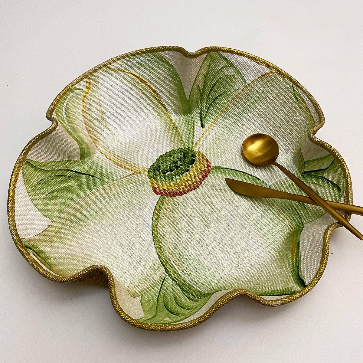 Carole Shiber präsentiert ihre handbemalte Tischkunst, Tischsets, Serviettenringe, Servietten, Läufer und Tafelaufsätze, darunter Erfindungen wie den Leafy Serviette Ring-to-Coaster (tm), den Sculpted Linen Leaf Basket (tm) und mit ihrem Partner und Ehemann Bill Cochran den interaktiven Tabletop Garden. Ihre Designs sind ein Traum von Merchandisern und Tischdeckern - alle in den USA hergestellt -, die uns einladen, ihre funktionalen und fließenden Tischsets zu Läufern und Tafelaufsätzen zu mischen, zu kombinieren, zu schichten und zu verzahnen. Carole begann 1989 mit dem Malen von Stoffen und verkaufte die erste Kollektion ihrer handgemalten „Piece Meals“ an Macy*s NY ~ eine Bestellung im Wert von 10.000 Dollar, die sie im Alleingang aus ihrem Schlafzimmer in Brooklyn ausfüllte. Bestellungen folgten schnell aus anderen Geschäften in der Nachbarschaft: ABC Carpet & Home, Barney's New York, Henri Bendel und Fellissimo. Als nächstes kam ein persönlicher Auftritt bei Neiman-Marcus; dann eine 40.000$ Bestellung von Williams-Sonoma, dem großen Lastwagen, der vor ihrer Brownstone-Wohnung fuhr, um 96 Schachteln ihrer handbemalten Blatt- und Blumen-Tischsets abzuholen ~ der Fahrer gab zu, dass es seine erste Abholung im Inland war. Ihre Tischsets lassen sich zur einfachen Pflege mit einem Schwamm abwischen, und viele werden aus nachhaltigen Produkten wie Hanf, Flachs, recyceltem Polyester oder wiederverwendeten Materialien hergestellt.