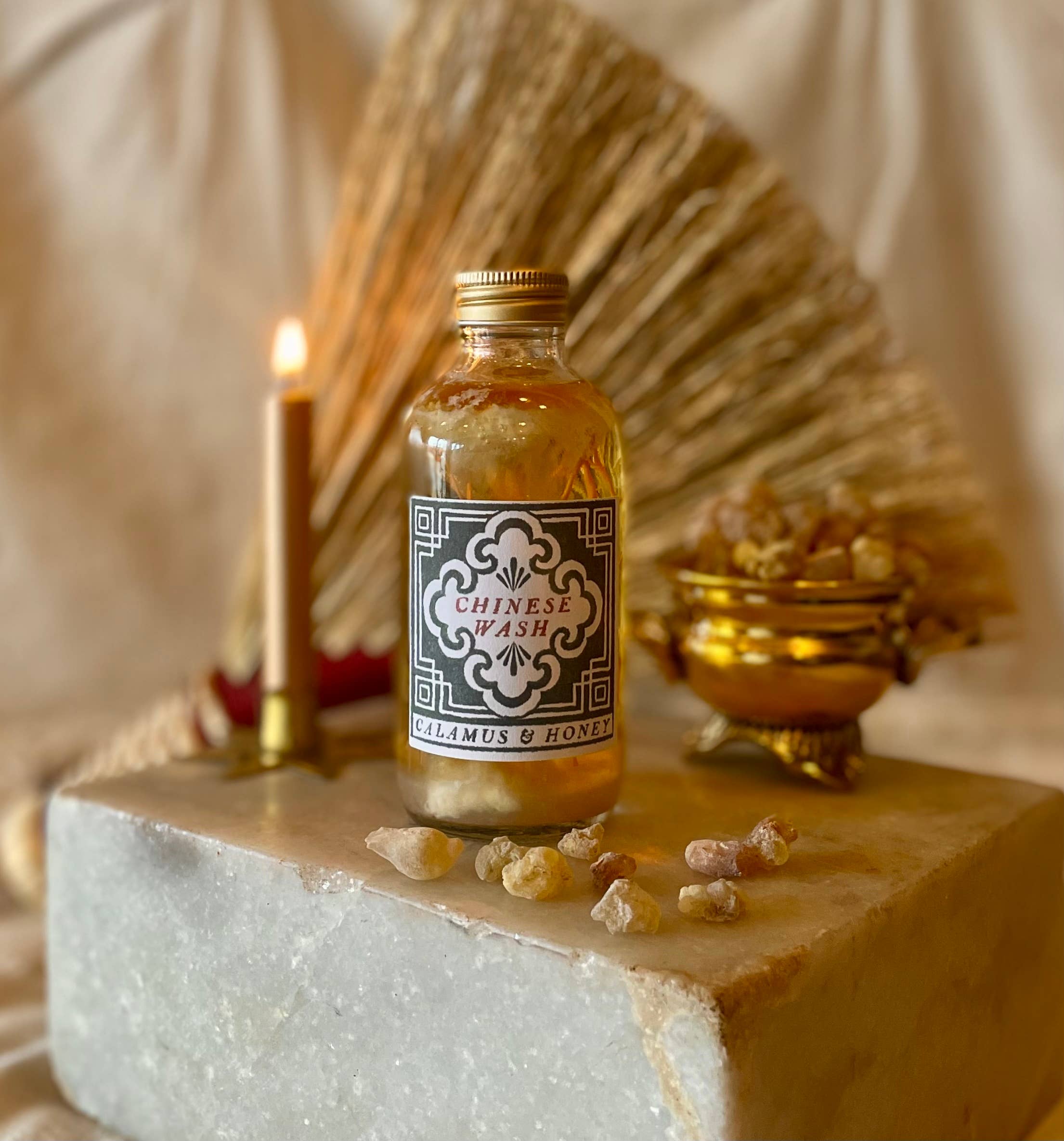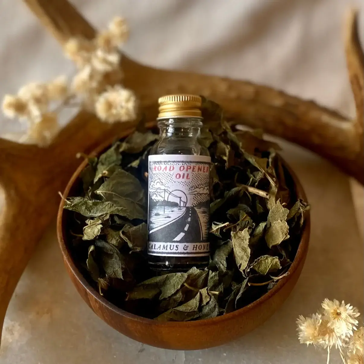 Calamus and Honey wurde vor etwa 10 Jahren gegründet. Es hatte zunächst keinen Namen, der ursprüngliche Besitzer suchte nach einer Flasche Four Thieves Vinegar und bestellte einige über einen großen Versandhändler. Was er erhielt, war eine überteuerte Flasche weißen Essigs ohne Kräuter und ohne Magie. Enttäuscht beschloss er, sein eigenes zu machen. Er hat viel recherchiert und durch Experimente und Intuition das Rezept entwickelt, das er heute noch verwendet hat. Er schenkte etwas dem örtlichen Hexenladen-Besitzer. Sie liebten es und beschlossen, es in ihrem Geschäft zu verkaufen. Bald darauf wuchs die Nachfrage und es wurden neue Produkte kreiert, getestet und perfektioniert. Baylen trat später als Grafikdesigner auf und beherrschte bald die Produktion und Herstellung neuer Rezepte. So wurde Calamus and Honey in das hineingeboren, was es heute ist.