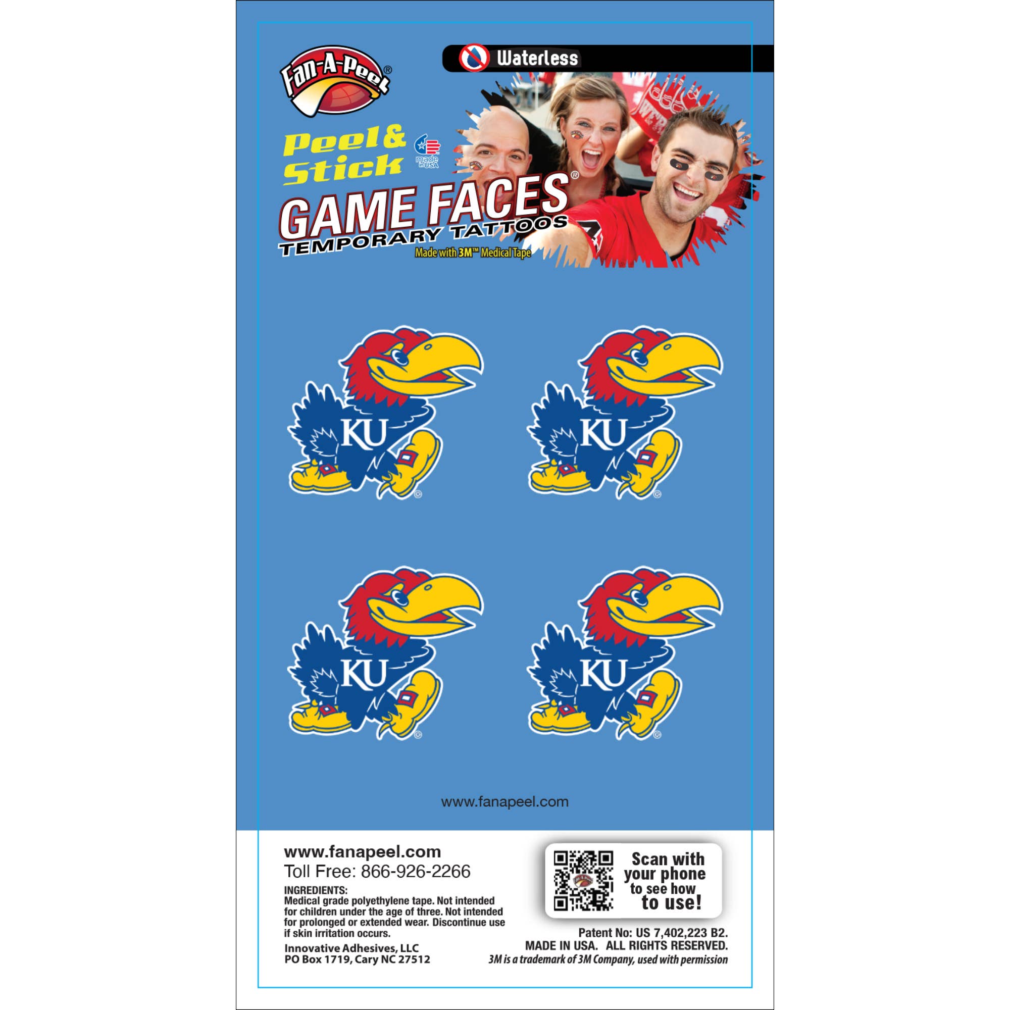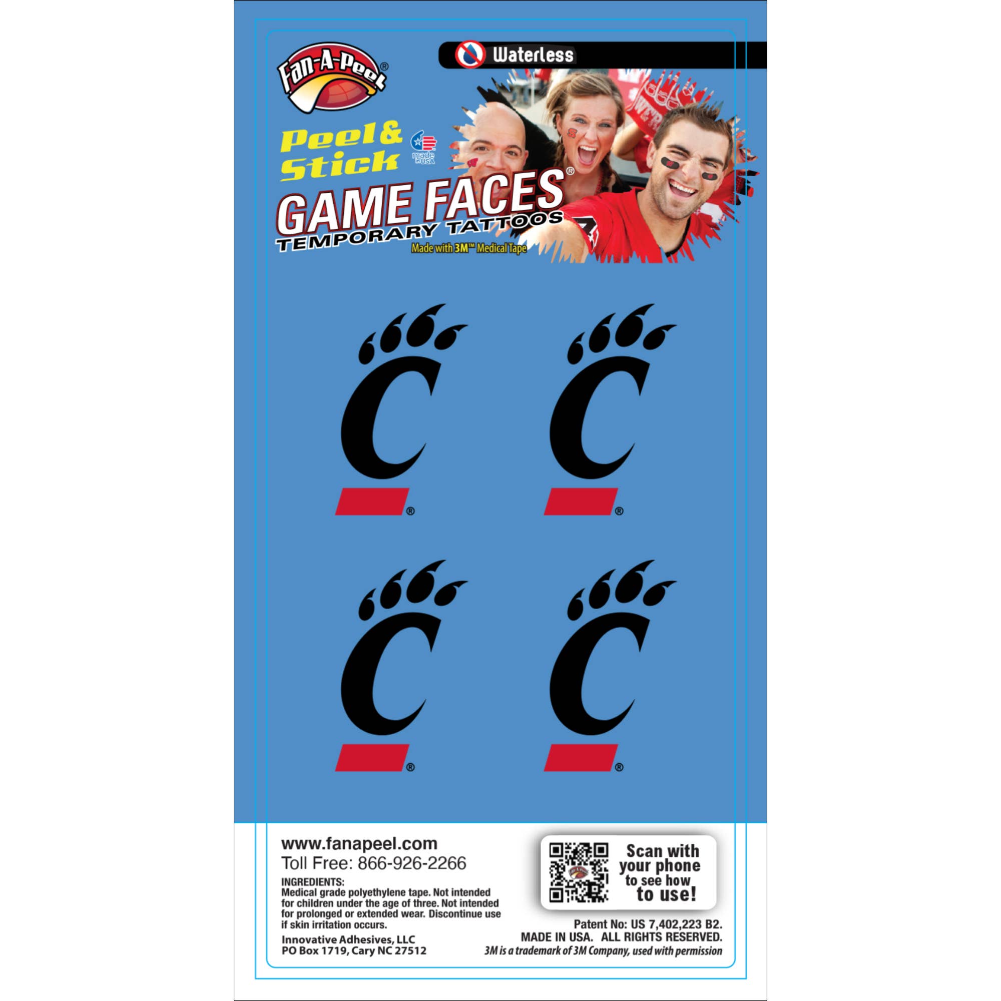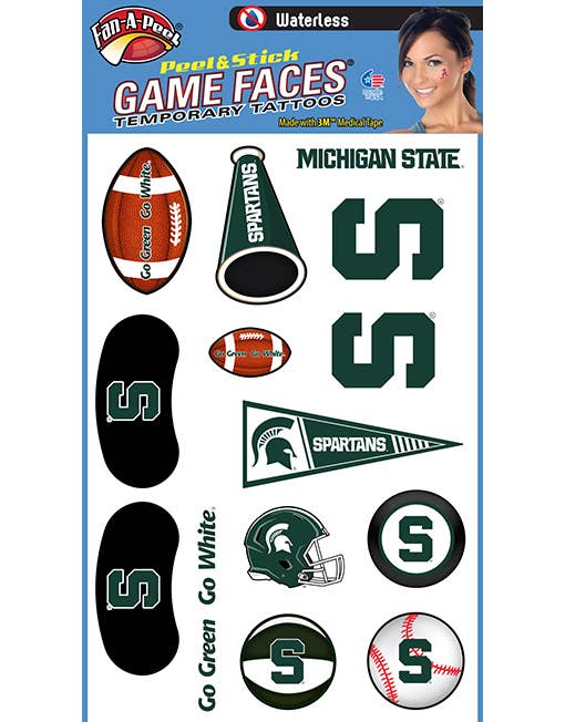 Fan-A-Ele/ Gamefaces sind seit langem ein Grundnahrungsmittel in der Sportwelt. Erstmals vor über 25 Jahren als wasseraufgetragene Tattoo im Hochschulsport hat sich mittlerweile zu einem Mode-Statement für Fans, Cheerleader und Spieler entwickelt. Unsere Produkte haben die Modetrends sowie den Impulskauf und den sofortigen Einsatz angenommen, indem sie vor einigen Jahren ein Tattoo eingeführt haben, das ohne Wasser verwendet und auf fast allen Oberflächen verwendet werden kann. Als Erfinder und Patentinhaber für temporäre Peel & Stick-Tattoos haben wir den Markt revolutioniert und es jedem leichter gemacht, sein „GameFace“ nach Belieben zu tragen und zu entfernen. Wir verwenden die sichersten 3M Medical Klebstoffe in unseren Produkten und haben unsere Linien um Metallic und Glitzer erweitert. Ein Spieltag vergeht nicht, ohne unsere Produkte im Fernsehen, im Druck und auf der Tribüne zu sehen. Zusätzlich zu unserem Mantra für Sicherheit und Konvenanz haben wir Nachhaltigkeit angenommen, indem wir nur recycelte Materialien in unseren Verpackungen verwendet haben. Alles was wir wollen, ist, dass du Spaß hast und „dein Gameface anlegst“!!