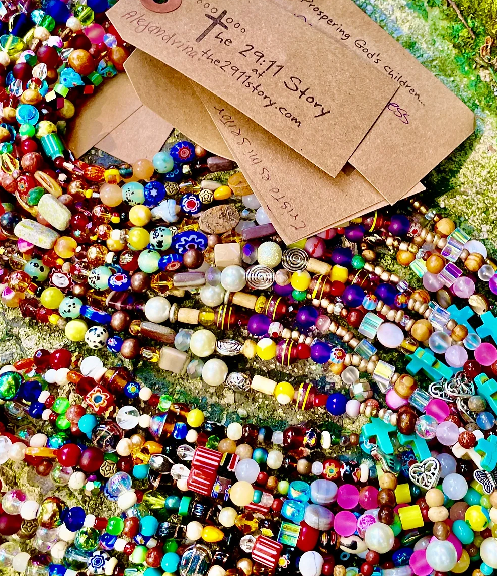 Wir alle haben eine Geschichte zu erzählen... Inspiriert vom Kampf einer Mutter mit Gott nach dem Tod ihres Sohnes. Alles handgefertigt in Huntsville, Alabama. Frauen eine Stimme geben, um ihre Geschichten zu erzählen und ihren Kindern eine Chance zu geben, zu gedeihen. Alles gemeinnützig. Jede Perle ist eine Person oder ein Ereignis in Gottes perfekter Geschichte. Jede Geschichte kommt mit einem Etikett, das von ihrem Schöpfer signiert und gesegnet ist. Jede kommt mit einer schönen Karte, die die Reihenfolge ihrer Perlen erklärt. Jede kommt in einem bunten Organzabeutel, der die Farbe ihres Kreuzes identifiziert. Was ist deine Geschichte?... the2911story.com Die Schöpferin der 29:11 Story, Salley Walker, verlor 2005 ihren Sohn an Krebs. In der Erkenntnis, dass wir alle kraftvolle Geschichten zu erzählen haben, begann das 29:11 Story Ministry 2016 in einem kleinen Haus in einem der am wenigsten geförderten Viertel von Huntsville. Sein Zweck ist es, Frauen aus allen sozioökonomischen Hintergründen in Gemeinschaft zusammenzubringen.