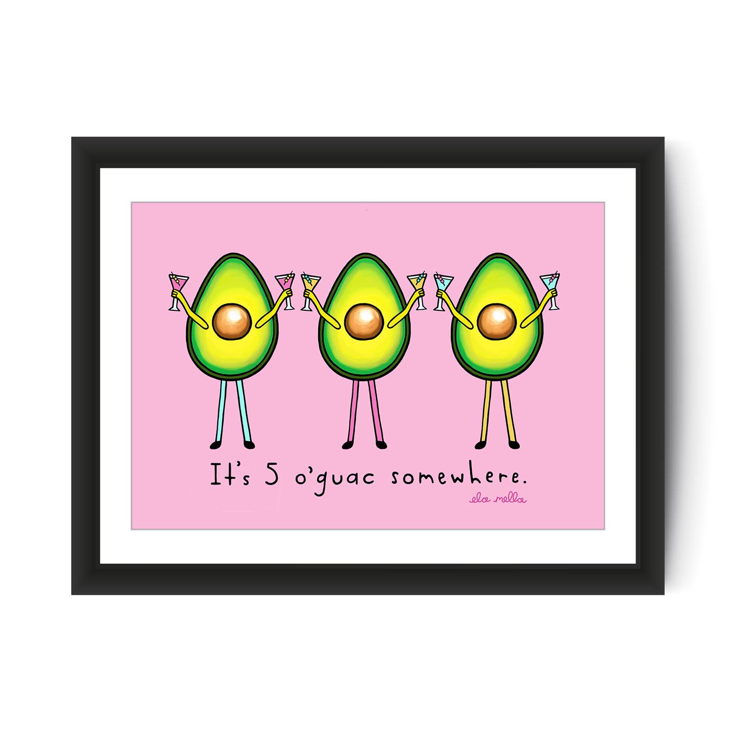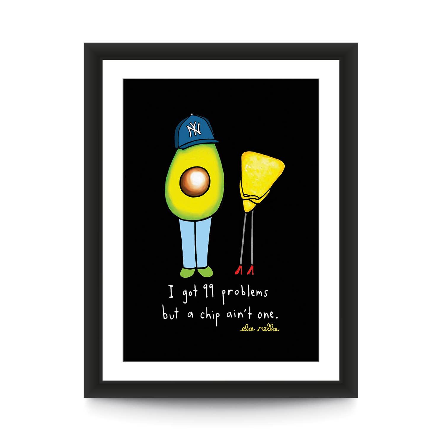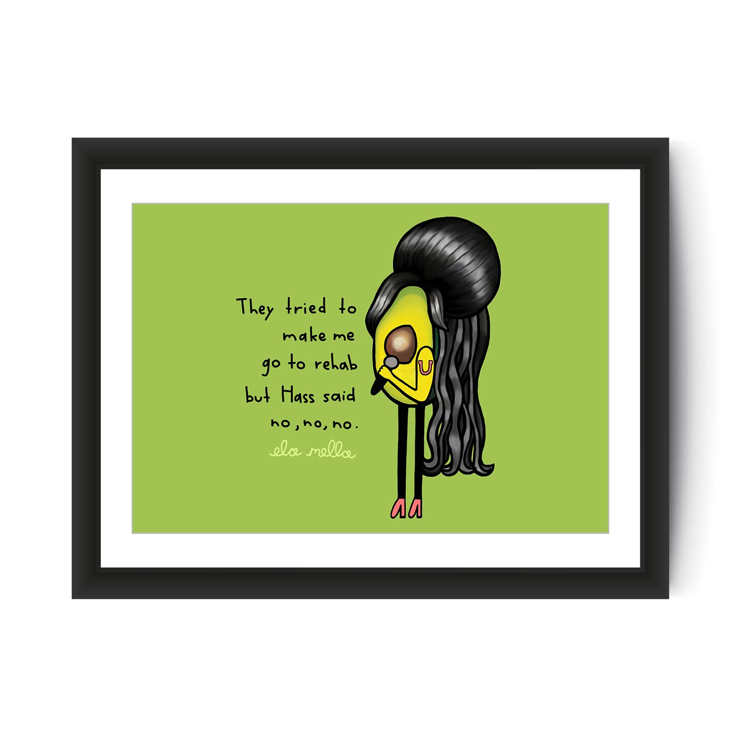 Ela Mella ist eine in Brooklyn, NY lebende Künstlerin, die sich auf Illustrationen, Wandmalereien und punktförmige Wortspiele spezialisiert hat. Ihre Signaturlinie zeigt eine Reihe von witzigen Avocado-Porträts.