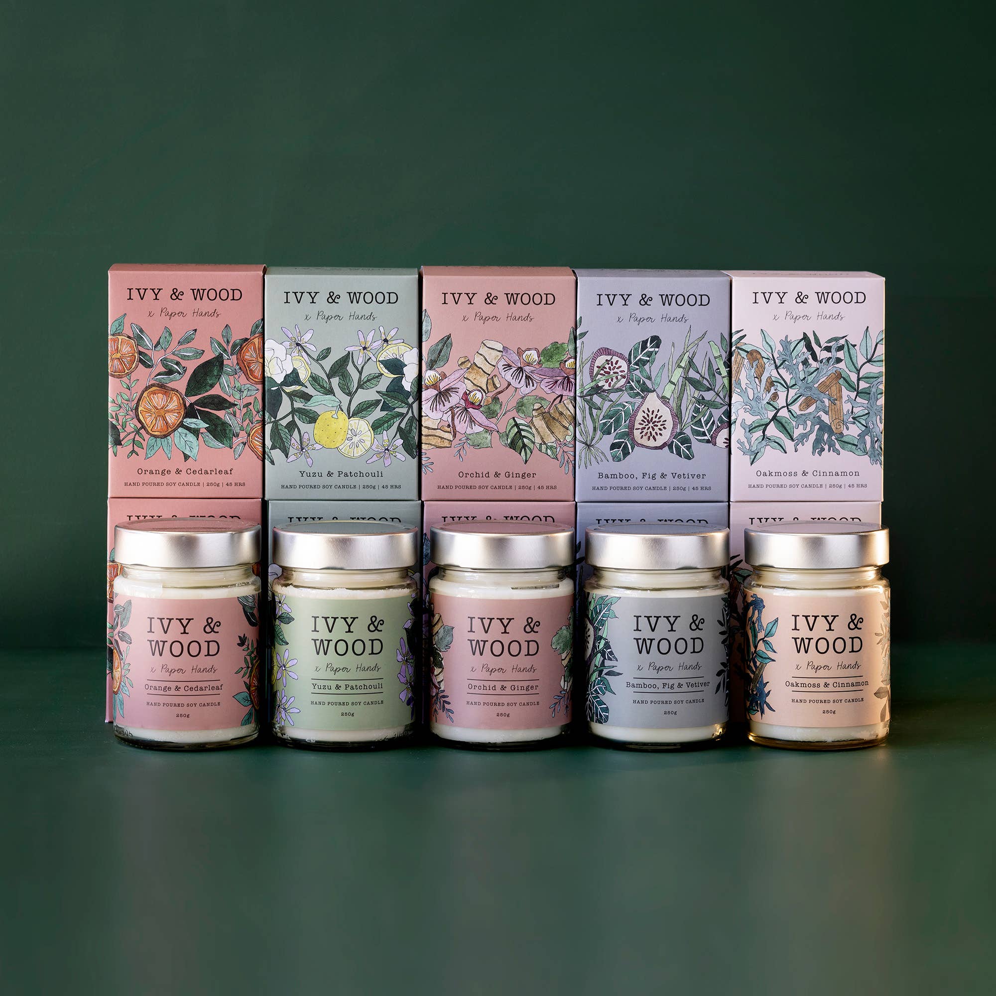 Ivy & Wood wurde 2016 gegründet und wird von den Partnern Jess & Brad geführt, die ihre Raumdüfte in Brisbane, Australien, von Hand herstellen. Was als Hobby zur Herstellung von Kerzen in der Küche begann, hat sich zu einer beliebten australischen Marke entwickelt, die in Geschäften im ganzen Land zu finden ist und vor allem für ihre atemberaubenden Verpackungen bekannt ist, die in Zusammenarbeit mit einheimischen australischen Künstlern kreiert wurden. Ihre Kollektionen sind lebendig, wunderschön und verschenkungswürdig und haben ein starkes australisches Thema, denn unser wunderbares Land ist es wert, gefeiert und präsentiert zu werden.