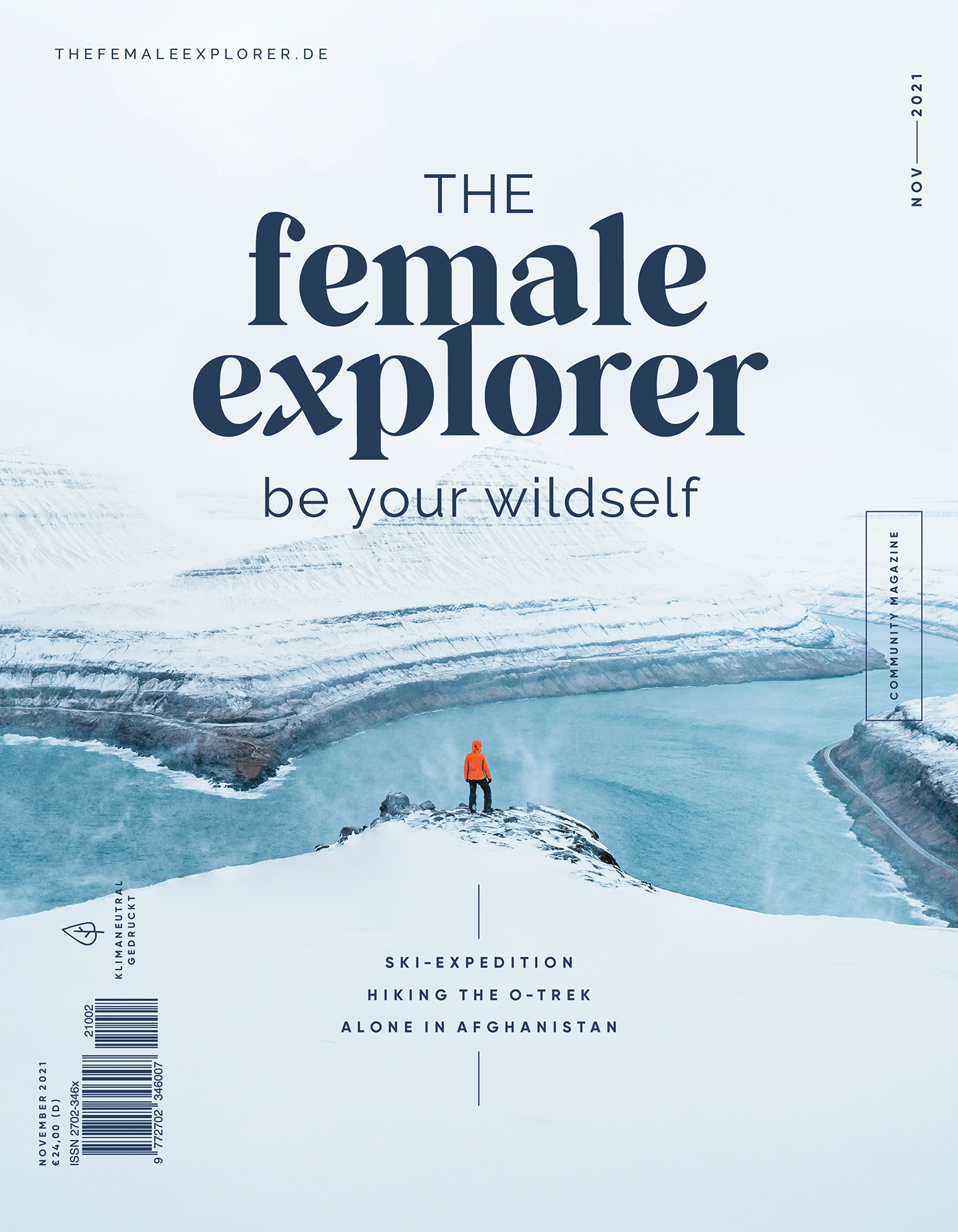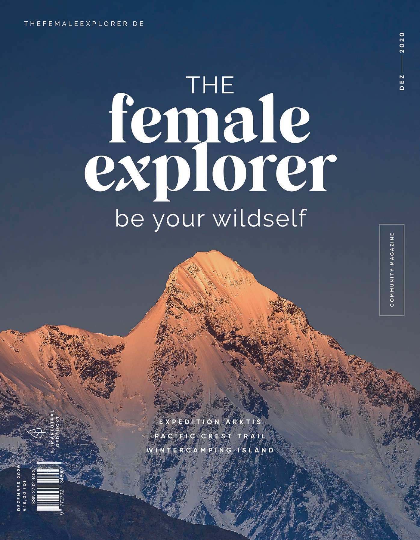 The Female Explorer ist das erste Outdoor Print Magazin, das sich gezielt mit den Bedürfnissen von Frauen unterwegs beschäftigt. „Be your wildself" ist das Motto unter dem sich Reisegeschichten und frauenspezifische Themen für unterwegs bündeln. Wo ist das Sprachrohr für reisende Frauen? Wo die Community, in der sie sich über Erfahrungen und Bedürfnisse austauschen k nnen? Wo finden sich Outdoor- Sportler:innen jeden Levels wieder, verspüren Begeisterung und Inspiration? Der Blick auf diese Lücke zwischen etablierten Outdoor-Magazinen und die immer noch stark männlich geprägte Outdoor-Branche, waren Grund genug sich der Sache im Mai 2020 selbst anzunehmen. Das Magazin wird auf FSC-zertifiziertem Papier aus verantwortungsvollen Quellen und mit mineralölfreien Farben in Sachsen gedruckt.