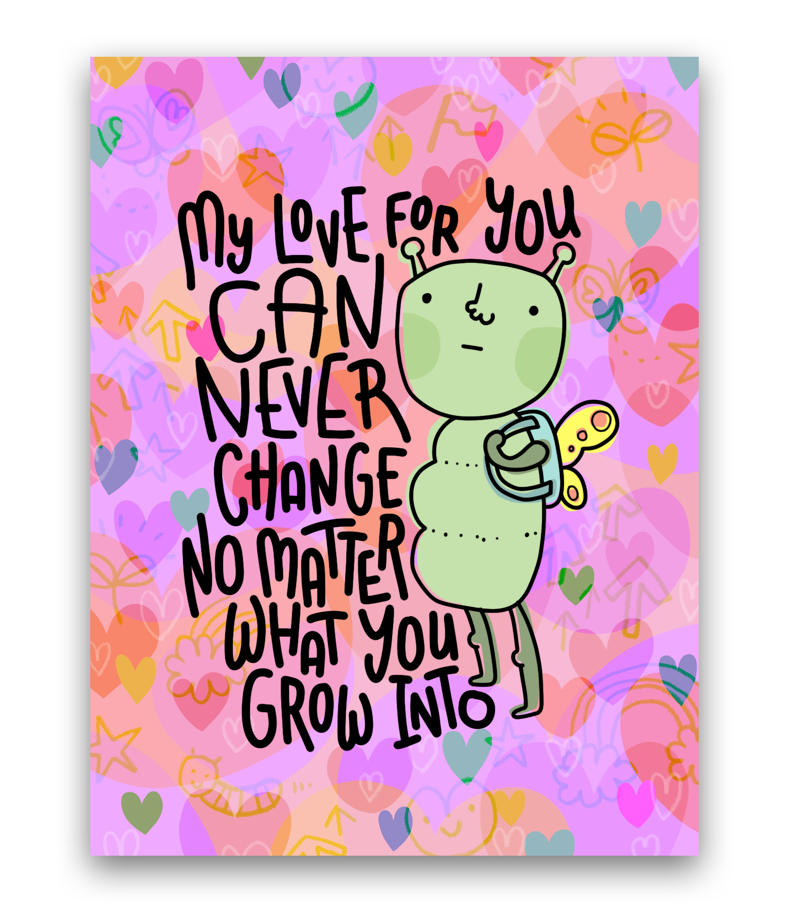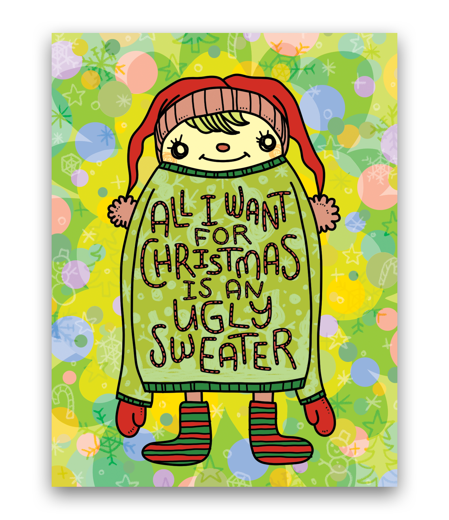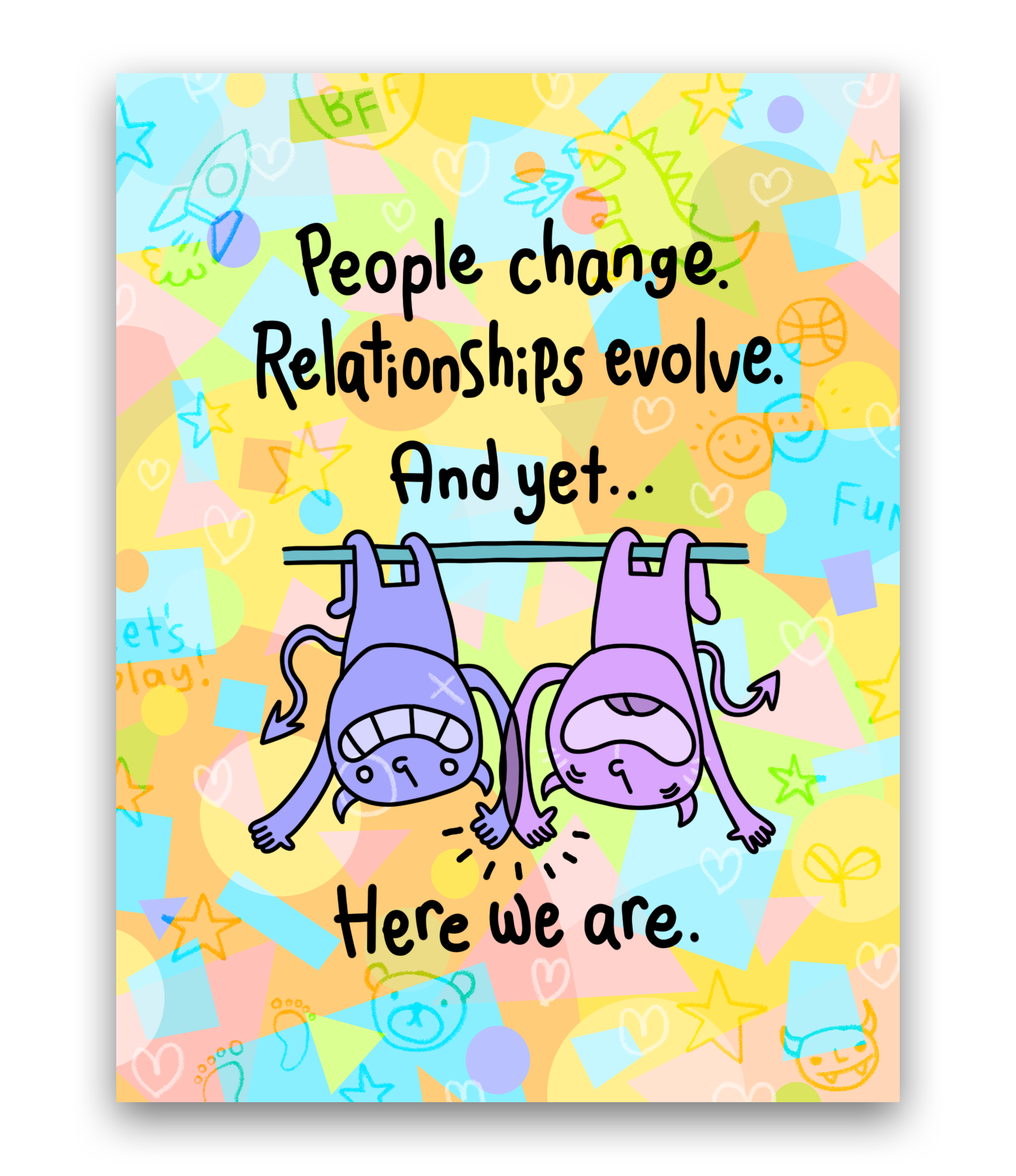 Chika illustriert ihre skurrile kleine Welt mit leuchtenden Farben und einem einzigartigen Ausdruck. Ihr Zeichenstil ist einfach, niedlich und erinnert an die Kunst eines Kindes. Sie können sehen, dass ihr Zeichenstil von der japanischen Kawaii-Cartoon-Ästhetik beeinflusst ist, denn dort stammt sie ursprünglich! Ihre Illustrationen spiegeln auch ihr Interesse an Psychologie wider und fügen ihren einfachen Zeichnungen ansprechende Ebenen hinzu. Sie integriert nicht nur furchtlos eine Vielzahl lustiger und leuchtender Farben in ihre Illustrationen, sondern sie drückt auch schamlos ihr wahres Ich aus. Diese ehrliche Herangehensweise bringt die Herzen der Menschen zum Schmelzen, gibt ihnen das Gefühl, verbunden zu sein, als würde sie über sie zeichnen, und bringt ihnen freudiges Lachen! Derzeit sind ihre Illustrationen als Grußkarten, Aufkleber und Emailnadeln erhältlich.