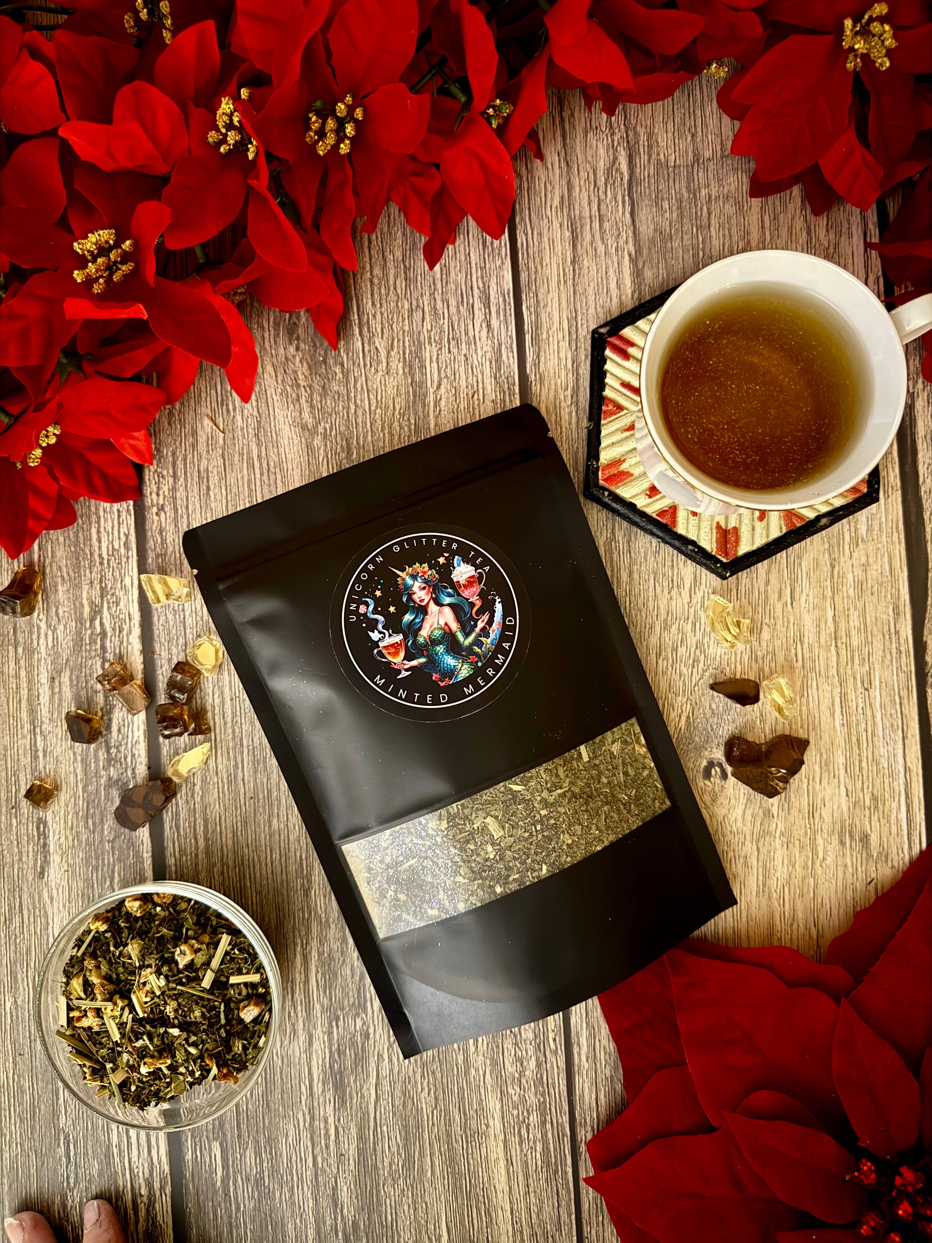 Wir sind ein Schwesterteam, das in einem wunderschönen Regenwald an der oberen Nordwestspitze der Küste von Oregon lebt. Unsere Auswahl an Loseblatt-Tees ist von den warmen Juwelentönen, dem funkelnden Lichtspiel, den üppigen Aromen und den vollmundigen Aromen der Küste Oregons und der gemäßigten Regenwälder dieser Region inspiriert. Unser Name wurde von der großen Herde schimmernder silberweißer andalusischer Pferde inspiriert, mit denen wir unseren Raum teilen. Wir sind spezialisiert auf Kräuter-, Obst- und Wellnesstees, die außerhalb des Spektrums traditioneller Tees liegen. Unicorn Glitter Tees werden aus getrockneten Früchten, Nüssen, Kräutern und essbaren Blüten aus der ganzen Welt hergestellt und anschließend mit Gewürzen und natürlichen Aromen angereichert. Der letzte Schritt besteht darin, sie mit unserem eigenen FDA-konformen essbaren Glimmerglitter der Marke Unicorn zu mischen. Das Ergebnis ist pure Magie. Sie können mit dem Süßungsmittel Ihrer Wahl angereichert werden, sie haben jedoch eine natürliche Süße, die sich aus den Inhaltsstoffen ergibt.