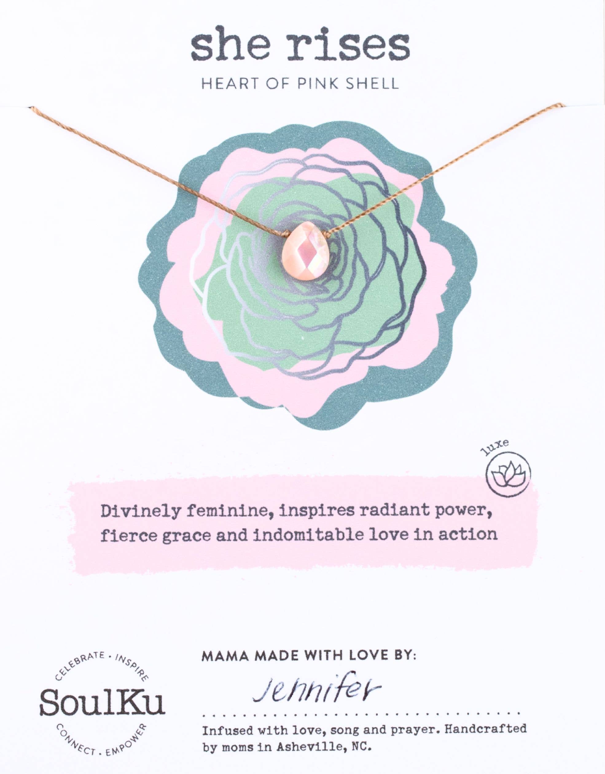 SoulKu existiert, um Menschen durch die Übergänge, Feierlichkeiten und Heilungsphasen des Lebens gesehen, unterstützt und verbunden zu fühlen. Jedes Stück trägt eine Affirmation von Mut, Liebe oder Resilienz – es hilft sowohl Schenkenden als auch Trägern, das auszudrücken, was am wichtigsten ist, und die zarten Kapitel des Lebens mit Bedeutung zu navigieren. Geboren in Asheville, NC, ist SoulKu in dem Glauben verwurzelt, dass Schmuck mehr als nur Zierde ist. Jede Halskette, jedes Armband oder jedes Paar Ohrringe ist ein Gefäß: eine Möglichkeit, das zu sagen, was Worte allein nicht können. Wir glauben, dass Schmuck mehr als ein Accessoire sein sollte – er sollte ein Ritual sein. Mit SoulKu ist das Ritual einfach: Jedes Mal, wenn Sie es anlegen oder berühren, verbinden Sie sich erneut mit seiner Bedeutung. Es wird mehr als ein Andenken – es ist eine stille Inspirationsquelle, eine Erinnerung an Stärke und ein Spiegelbild dessen, wo Sie sind oder wohin Sie gehen. Es feiert Meilensteine, ehrt Heilung und hilft Menschen, sich tiefer mit sich selbst und miteinander zu verbinden. Stolz in den USA von gestärkten Frauen für gestärkte Frauen hergestellt, ist SoulKu mehr als handgemacht – es ist mit Herz gemacht. Sorgfältig gefertigt, robust genug für den Alltag und immer erschwinglich, ist jedes Stück so gestaltet, dass es Ihnen dort begegnet, wo Sie sind, mit Absicht und Liebe in jedes Detail eingewebt.