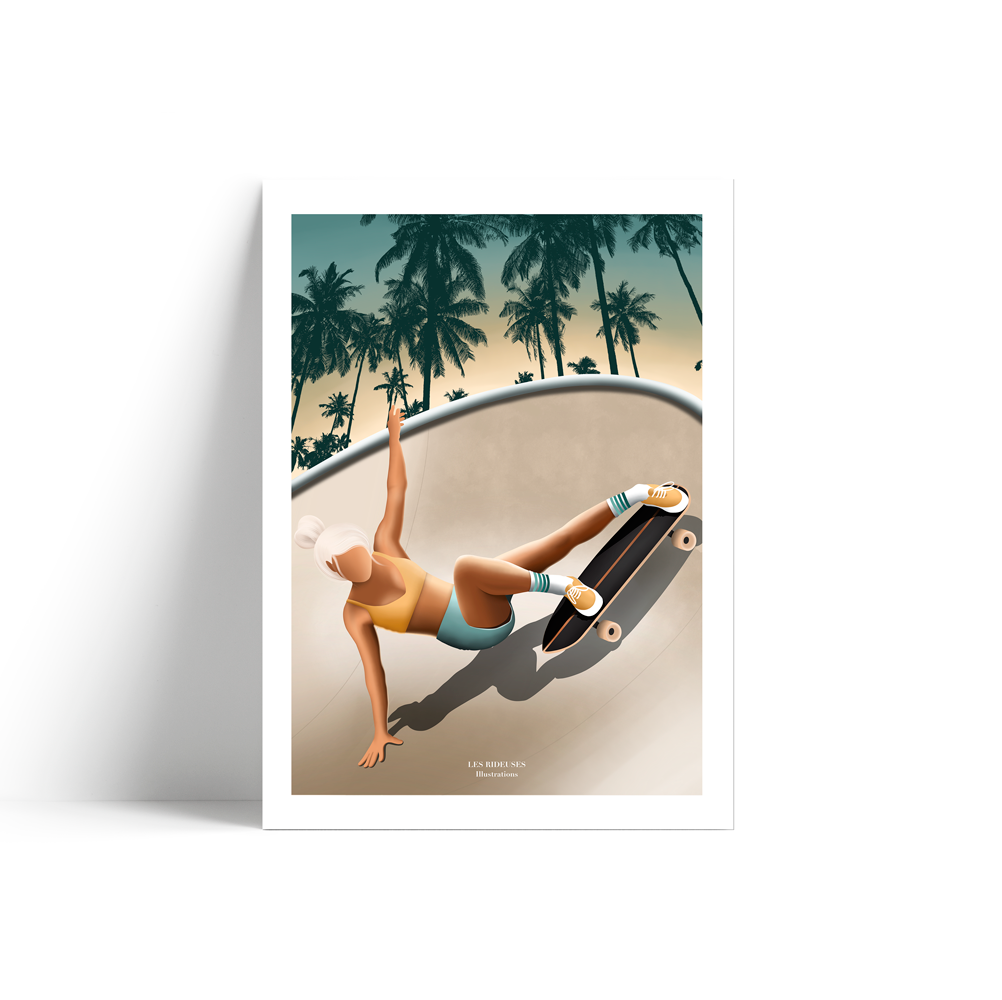 Die Marke Les Rideuses bietet eine Sammlung von Illustrationen zum Thema Surfen und Skateboarden, die von unseren 4 Jahren in Lateinamerika inspiriert sind. Unsere Illustrationen zeigen den Tagesablauf dieser Mädchen, die reiten. Unsere Poster werden in unserer Werkstatt in Frankreich auf Canson Fine Art Stoffpapier aus 100% Baumwolle gezeichnet und gedruckt.