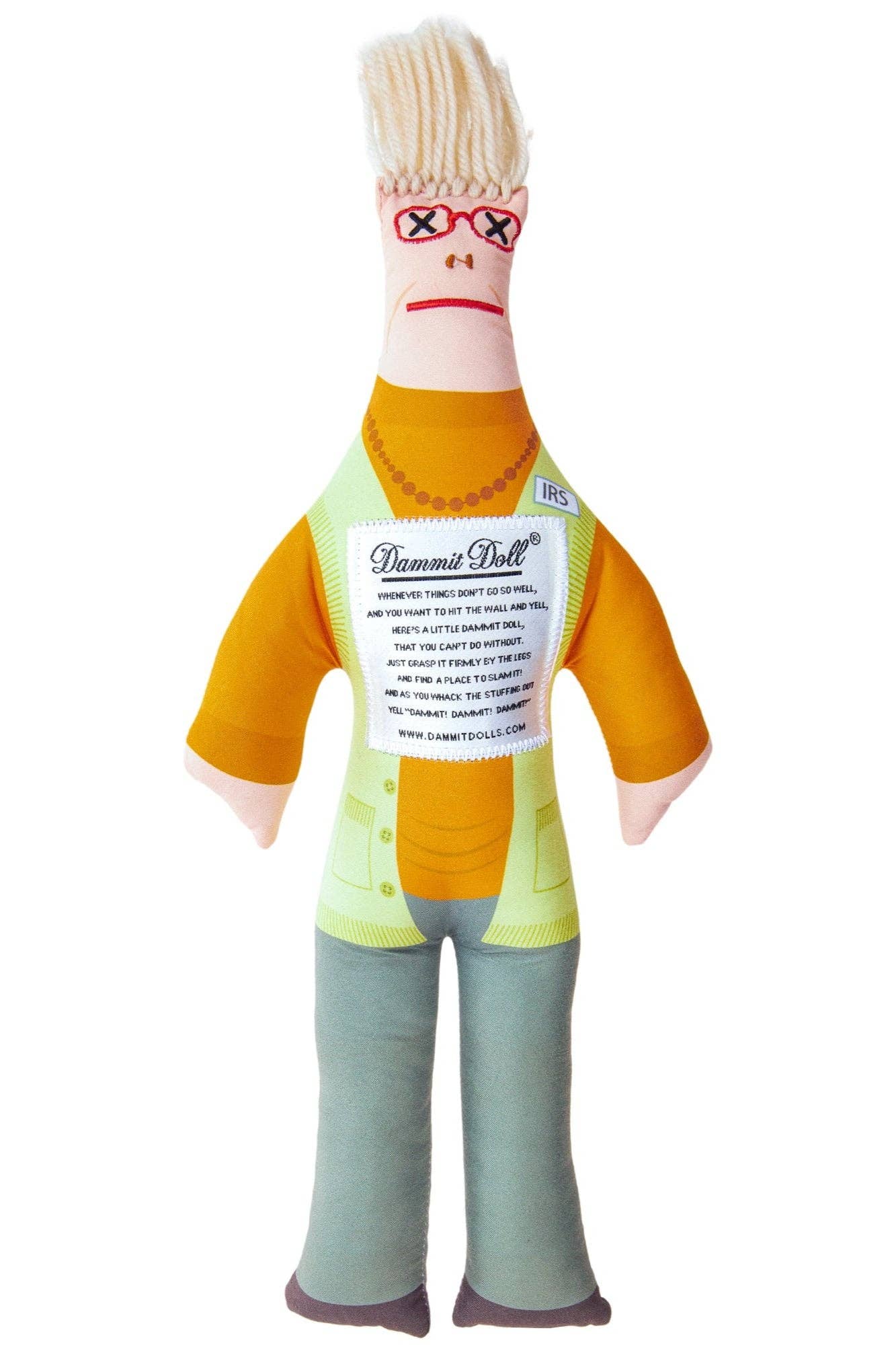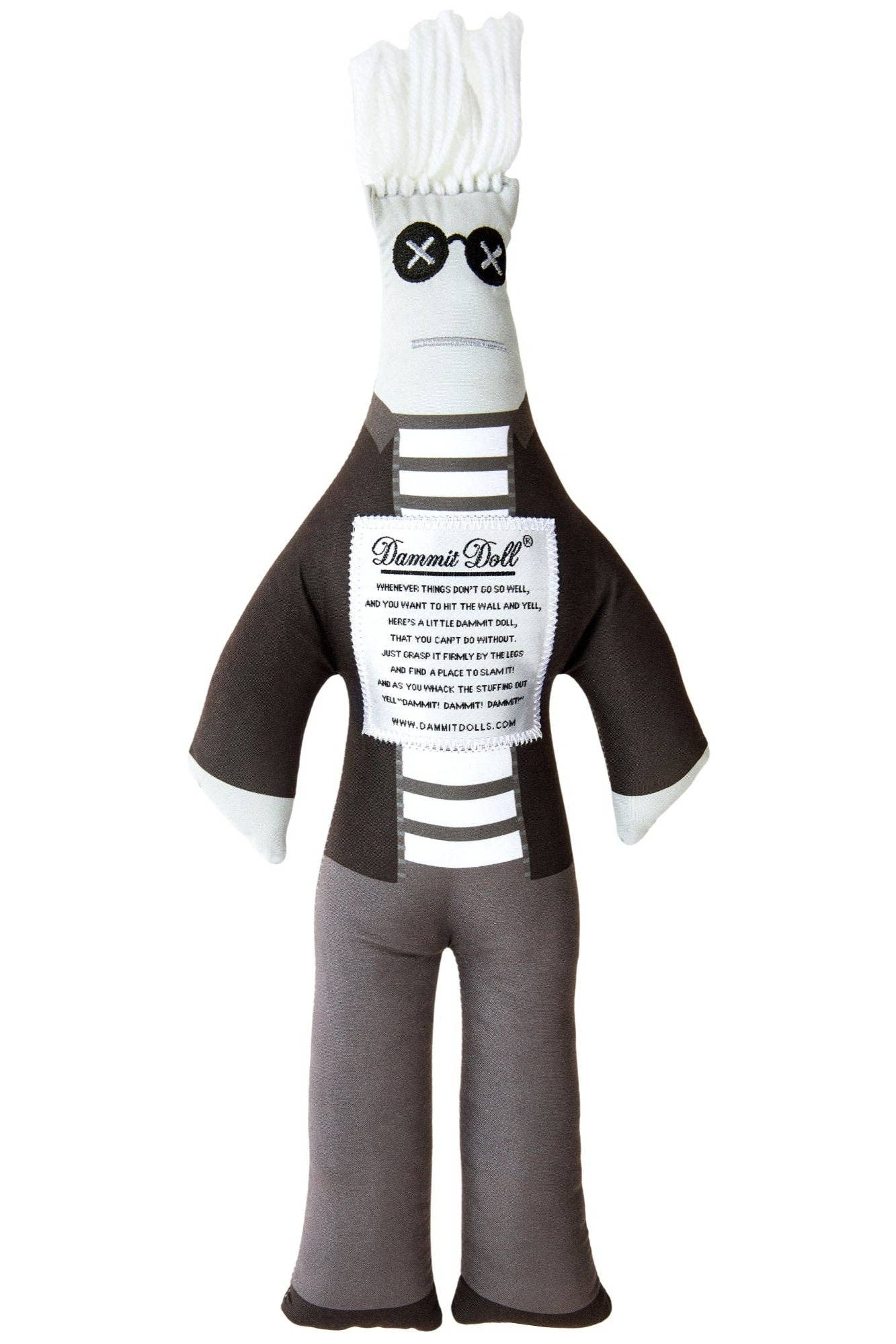 Dammit Dolls ist unser Name und Stressabbau ist unser Spiel. Warst du jemals so gestresst, dass du das verrückte Bedürfnis hattest, zu schreien und zu zerstören? Been there, done that. Deshalb haben wir eine 12-Zoll-Puppe geschaffen, die einen Schlag aushalten kann! Jede Dammit Doll hat einen verrückten, seltsamen Voodoo-Charme, lustige Drucke und ein urkomisches Gedicht, um potenziell nukleare Situationen zu entschärfen! Sie sind schnell zu jedermanns bevorzugtem Stressbewältigungswerkzeug geworden. Ganz zu schweigen davon, dass sie den Menschen eine Menge an beschädigten Eigentumsrechnungen erspart und zahlreiche Verhaftungen verhindert haben (vermuten wir). Also, das nächste Mal, wenn du dich in einer stressigen Situation befindest, fang an zu schlagen und fang an zu lachen!