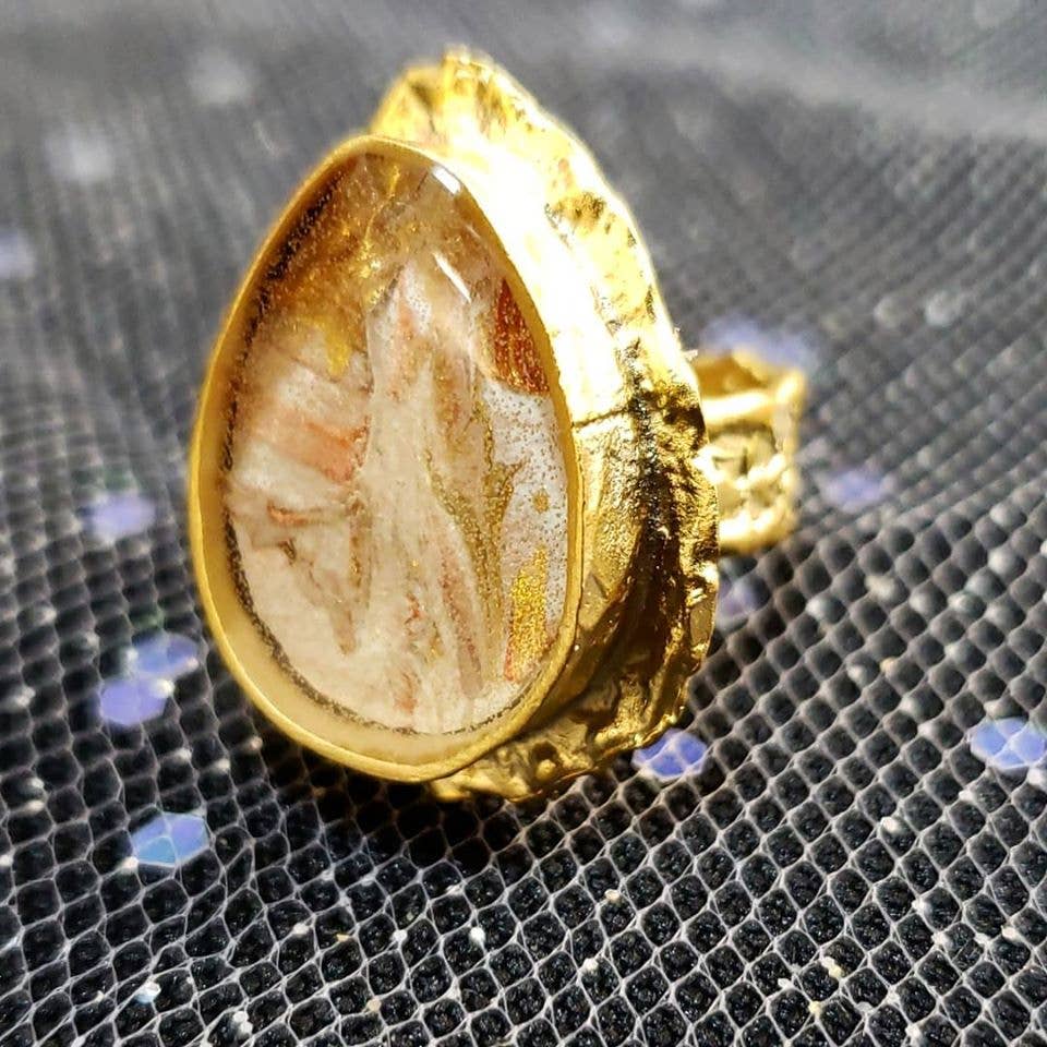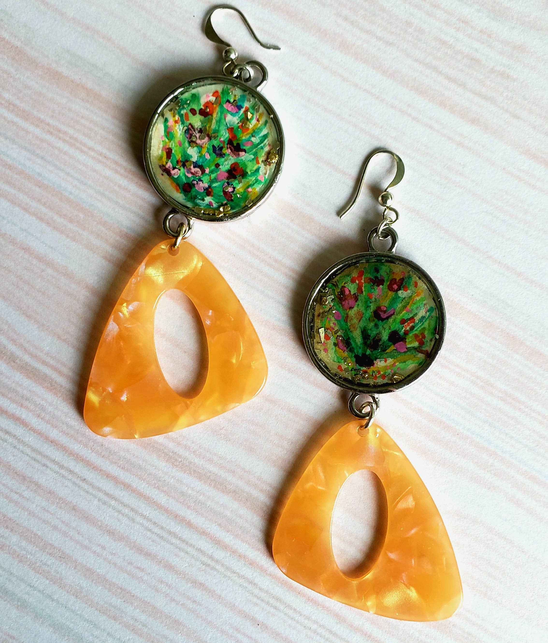 Schauen Sie sich die Geschichte von TarteLaine an! https://canvasrebel.com/meet-tia-williams-vaughn/ Ich bin darauf spezialisiert, zeitgenössische Kunst mit modischem Schmuck zu verbinden. Die Designs von TARTE LAINE sind inspiriert von Leben, Natur, Bewegung, Emotionen und saisonalen Trendfarben. Meine Stücke bestehen aus handbemalter Miniaturleinwand. Ich füge sie ein, um zeitlose und einzigartige Stücke zu kreieren, bei denen die darunter liegenden Farben erhalten und zur Geltung kommen. Meine Designs sind Ausdruck meiner lebenslangen Liebe zu Kunst, Design, Mode und allem Kreativen! Viele Leute haben meinen Schmuck gesehen und Bilder gefunden, die ich nie beabsichtigt hatte. Das ist wahrscheinlich der aufregendste Teil. Zu wissen, dass in jedem Bild jemand etwas Einzigartiges für ihn gefunden hat. Dadurch lohnt sich der langwierige Prozess der Fertigstellung jedes Designs jedes Mal. Mein Schmuck betont nicht nur ein Outfit, sondern kann jedes Mal, wenn Sie Ihre einzigartigen Stücke tragen, auch als Erinnerung an einen besonderen Moment oder eine besondere Erinnerung dienen. In letzter Zeit habe ich mich auf Fassungen mit 22-karätigem Gold und Roségold sowie Fassungen mit Perlen und Steinen ausgeweitet. Alles, was ich einbetten kann, ist fair!