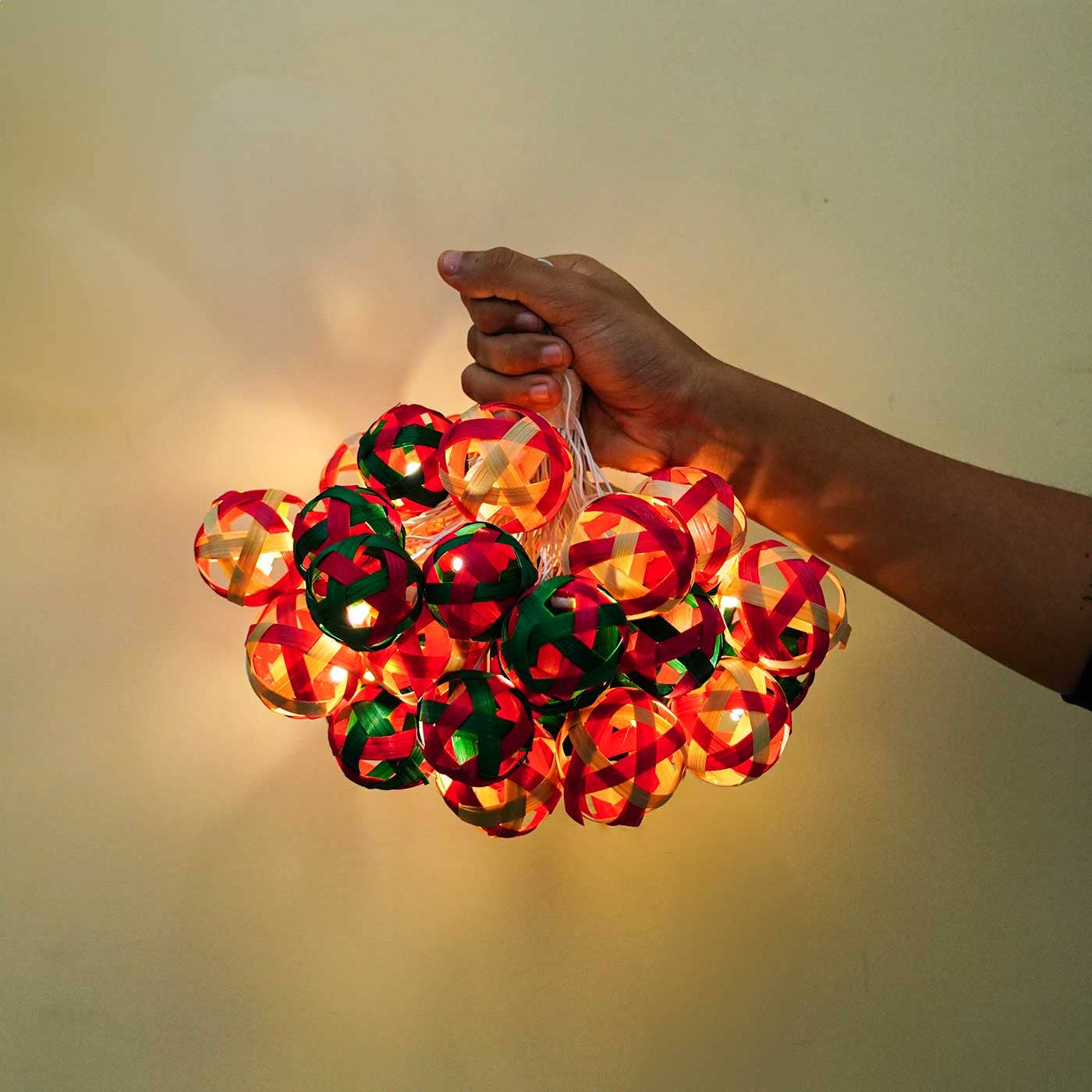 Zwende hat seinen Sitz in Bangalore in Indien und hat es sich zur Aufgabe gemacht, das Erbe indischer Kunst und Handwerk zu erhalten. Diese Kollektion ist inspiriert von einem sehr einzigartigen Zusammenfluss zweier traditioneller indischer Kunstformen - Leather Puppetry von Andhra Pradesh und Madhubani Kunst von Bihar. Lange bevor Fernseher erfunden wurden, war Lederpuppenspiel (Schattenpuppenspiel) in Andhra Pradesh eine wichtige Form des Geschichtenerzählens. Handbemalte Lederpuppen wurden dazu gebracht, in hinterleuchteten Bühnen zu tanzen. Da das Leder durchscheinend ist, würde dies einen warmen Schein um die Puppen erzeugen. Gemusterte Löcher auf diesen Puppen lassen das Licht wie Schmuck durchdringen. Im Laufe der Zeit, als diese Marionettenshows einen Rückgang verzeichneten, fand die Kunstform eine natürliche Erweiterung der Lampenschirme. Die Entwürfe sind alle von der Madhubani-Kunst inspiriert, die früher an Lehmwänden in den Dörfern von Bihar gemacht wurde.