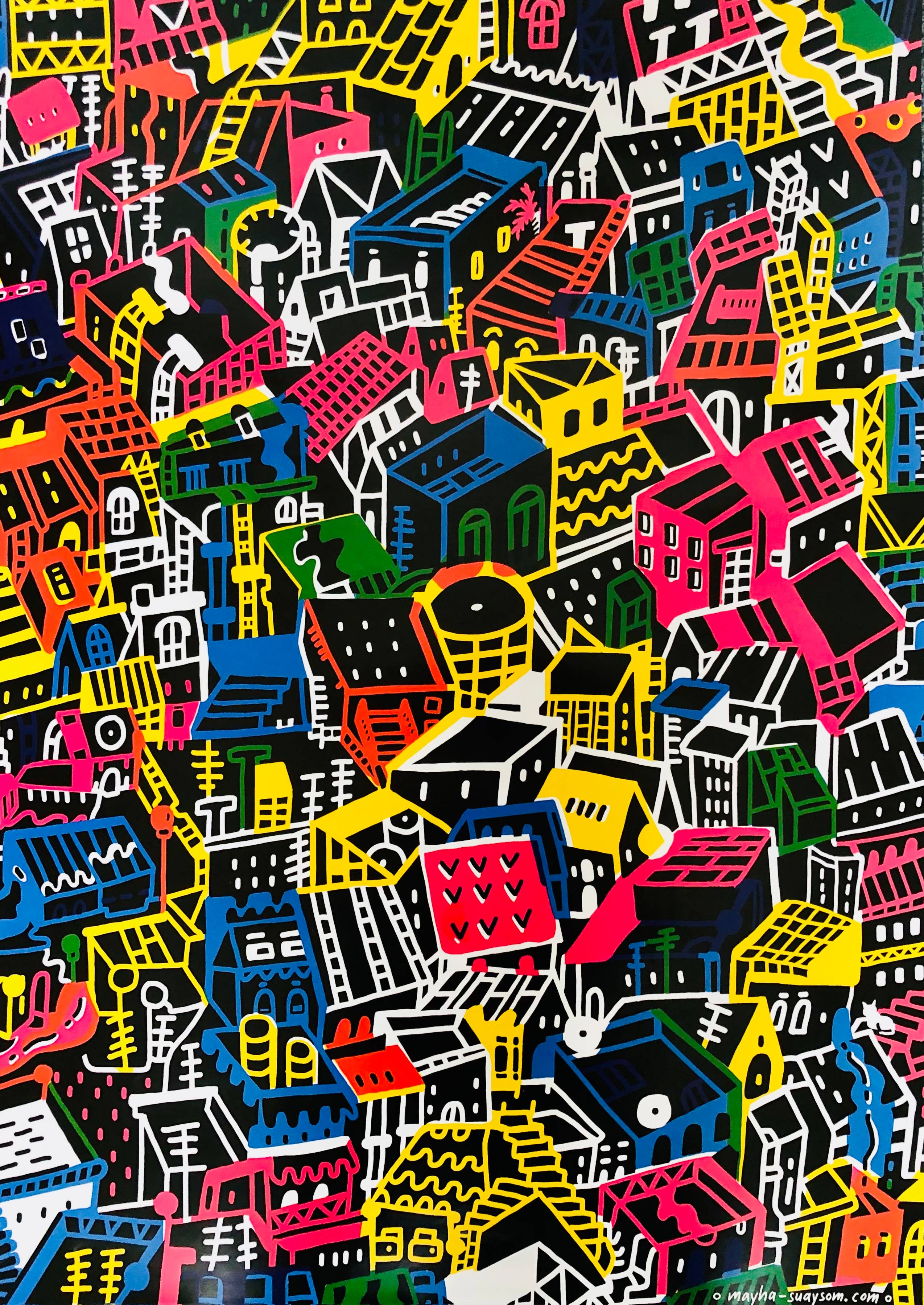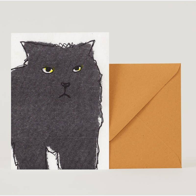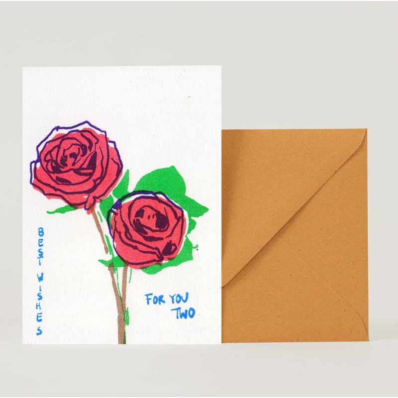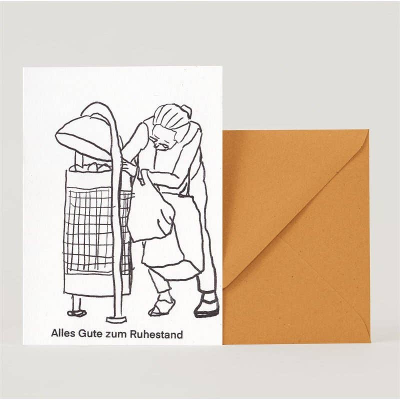 Julia Rein prints all her cards on her risograph herself. The risography prints environmentally friendly, with no fine dust and environmentally friendly inks. The card designs come from her and her son Juri. Both are autistic.