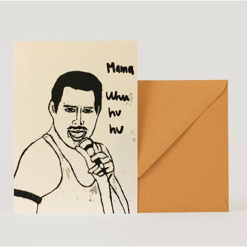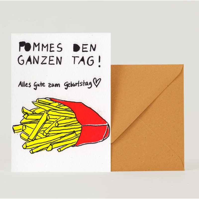 Julia Rein prints all her cards on her risograph herself. The risography prints environmentally friendly, with no fine dust and environmentally friendly inks. The card designs come from her and her son Juri. Both are autistic.