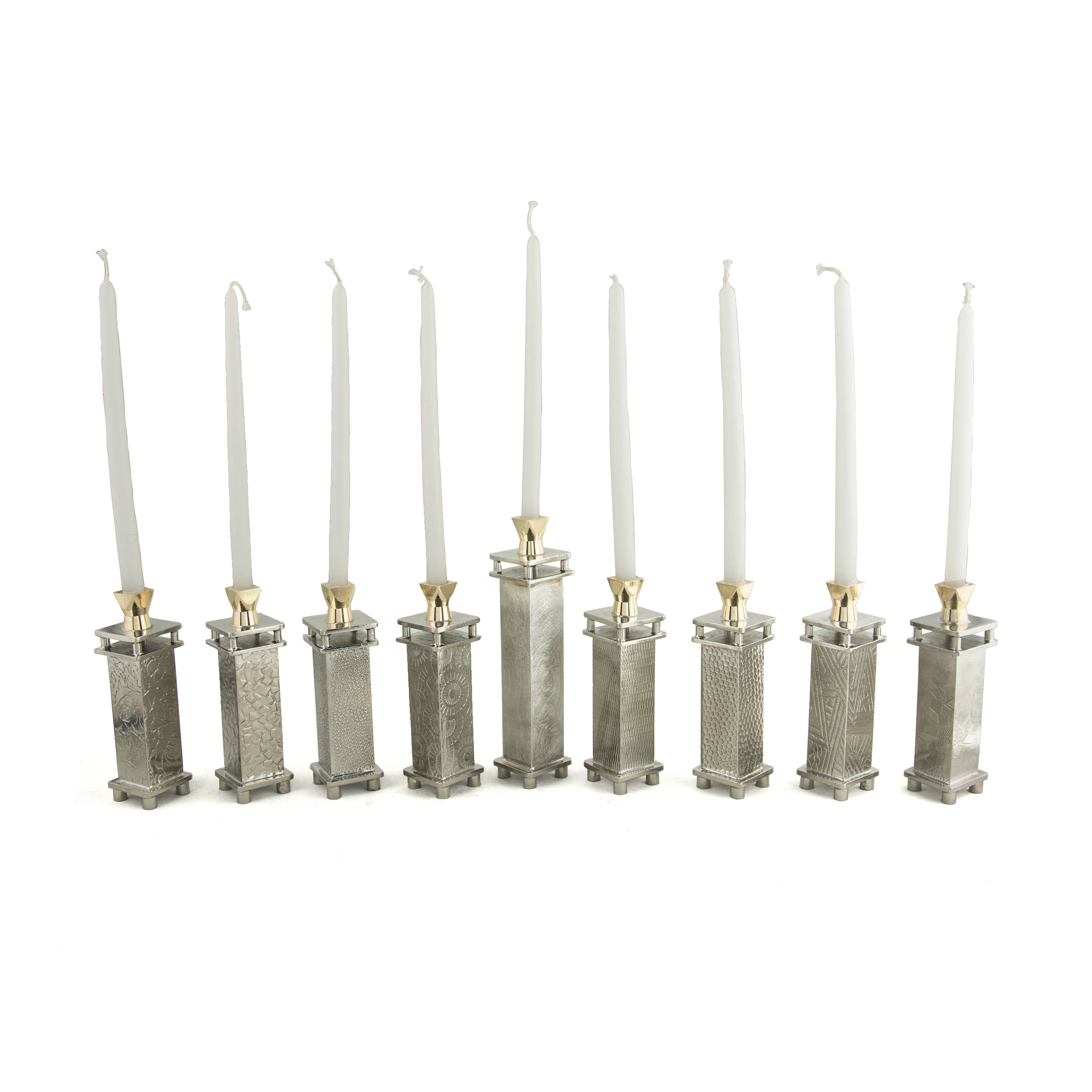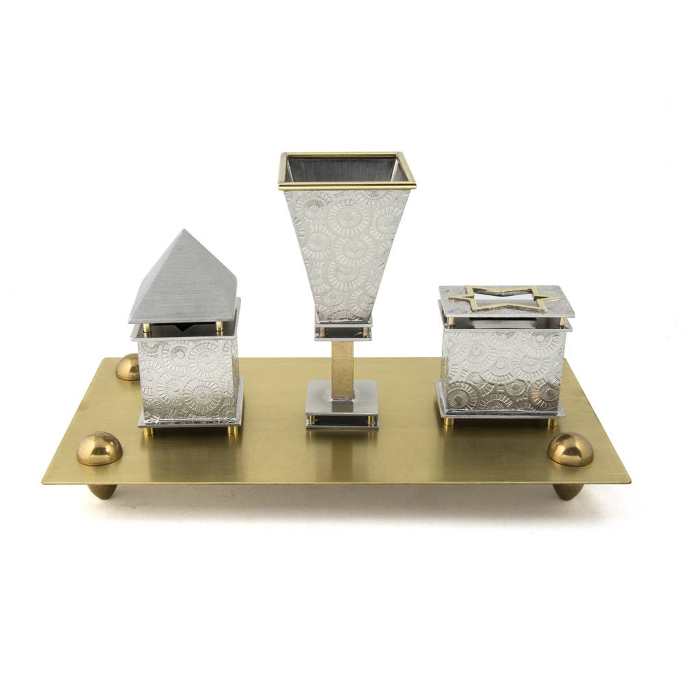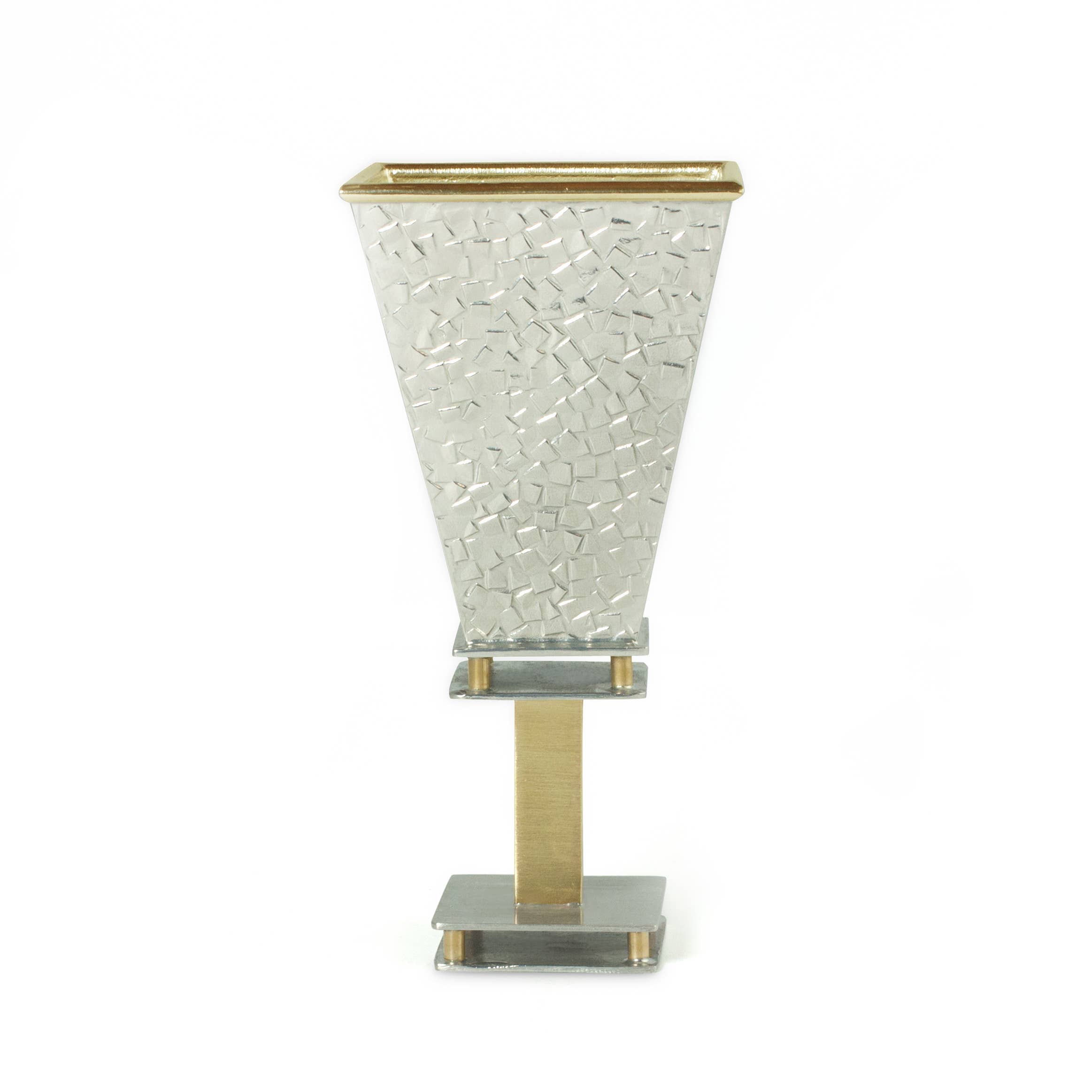 Im Winter 2010 unternahm ich eine Taglit Birthright-Reise nach Israel. Dort war ich fasziniert von der Landschaft, Kultur und Geschichte. Als ich nach Hause zurückkehrte, fühlte ich mich Israel, meiner Kultur und meiner Identität als Künstler stärker verbunden. Diese Reise hat meine Perspektive grundlegend verändert und mich dazu gebracht, meine wahre Leidenschaft zu entdecken. Ich begann, mich hauptberuflich auf die Kreation zeitgenössischer Judaica zu konzentrieren und eröffnete das Joy Sember Metal Arts Studio, LLC. Diese Entscheidung hat mir nicht nur eine große persönliche Erfüllung gebracht, sondern auch die Gelegenheit, mein Handwerk mit der Welt zu teilen. Meine Arbeit Die klaren Linien und die sich wiederholende Natur in Stadtlandschaften inspirieren meine Arbeit sowie das Design aus der Mitte des Jahrhunderts. Ich verwende eine Vielzahl von Metallen wie Zinn, Messing, Bronze, Silber und Kupfer, um meine Designs herzustellen. Meine Arbeit wird in den Vereinigten Staaten von Hand gefertigt und jedes Stück wird liebevoll hergestellt, indem Zinnblätter geritzt und gefaltet werden, um dreidimensionale Kunstwerke herzustellen. Die wunderschönen Texturen sind vielen Einflüssen nachempfunden und in das Metall eingeprägt. Als Designer und Hersteller ist es meine Absicht, die Bedeutung amerikanischer High-End-Handwerkskunst im modernen Zuhause zu fördern, indem ich zeitgenössische Erbstücke für eine neue Generation von Sammlern entwerfe.