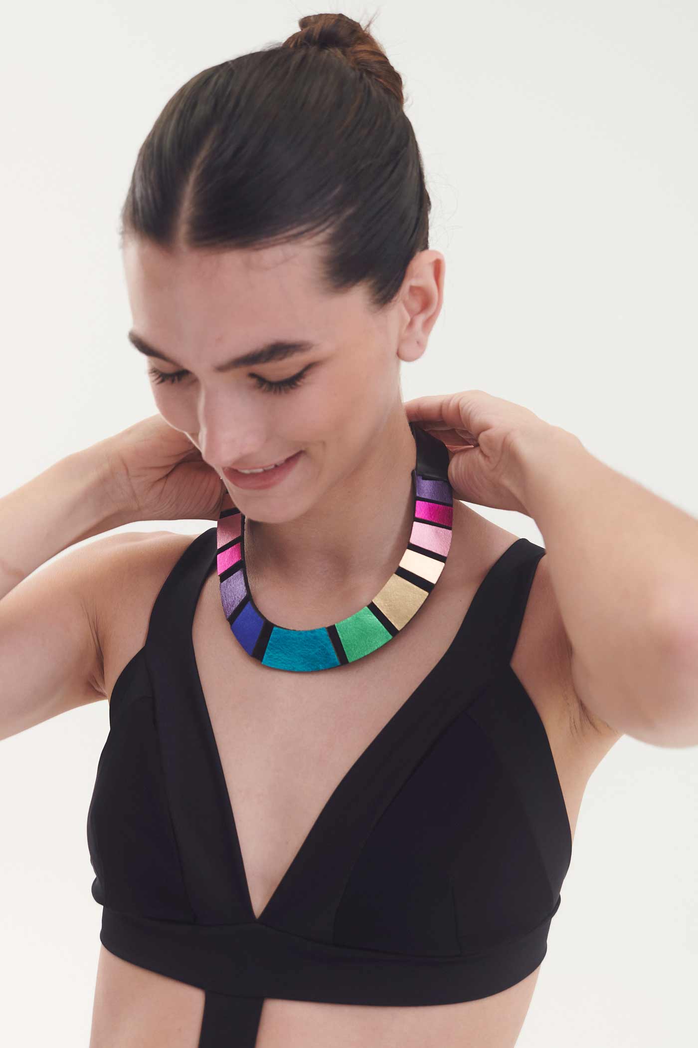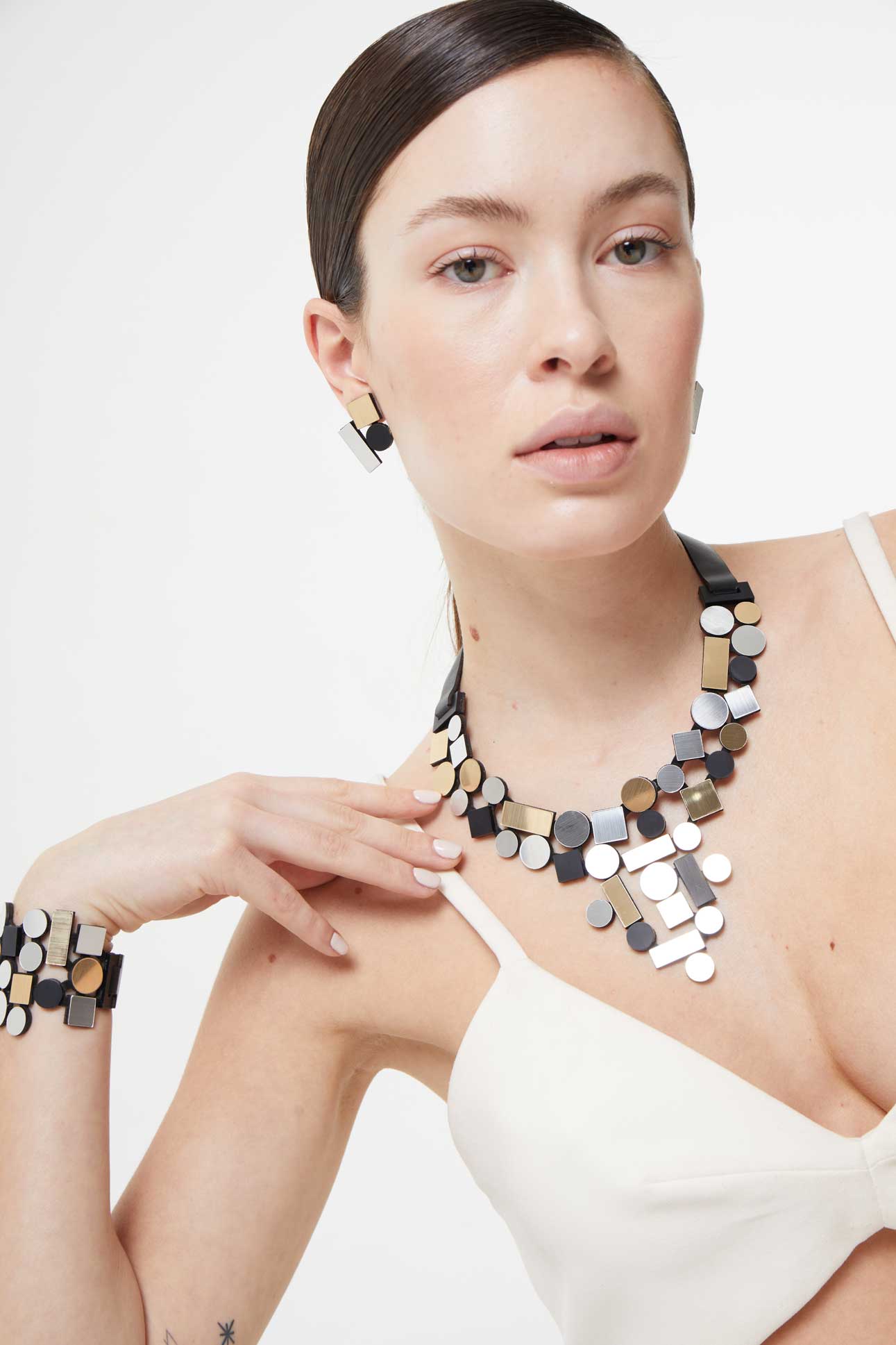 Wir entwerfen zeitgenössischen Schmuck und Accessoires, die für die Ewigkeit gemacht sind. Wir kreieren Halsketten, Armbänder, Ohrringe und Ringe mit einem zeitgenössischen Flair. Gabriela und Karina Iskin spielen seit ihrer Kindheit zusammen. Im Jahr 2004 brachten die in Buenos Aires ansässigen Schwestern ihre erste Kollektion spielerischer Kreationen auf den Markt. Gabrielas Hintergrund im Industriedesign und Karinas Geschäftshintergrund machten die halb-brasilianischen, halb-argentinischen Schwestern zu einem perfekten Team. Sie lassen sich von Architektur, moderner und zeitgenössischer Kunst, natürlichen Landschaften und dem Gefühl von Staunen und Aufregung inspirieren, das sie beide aus ihrer Kindheit bewahrt haben. Die einzigartigen Stücke aus unkonventionellen Schmuckmaterialien wie Leder, Wildleder und Acryl sind mit der modernen Frau im Hinterkopf entworfen. Sie will alles – Einfachheit und ein kühnes Statement, Inspiration von fernen Reisen und das Vergnügen von Gemeinschaft und Familie, Aufmerksamkeit erregen und ein Gefühl von persönlichem Raum und Geschmack – und dabei sehnt sie sich nach bequemer, tragbarer und leichter Mode, die sich für jeden Anlass auf- oder abtragen lässt.