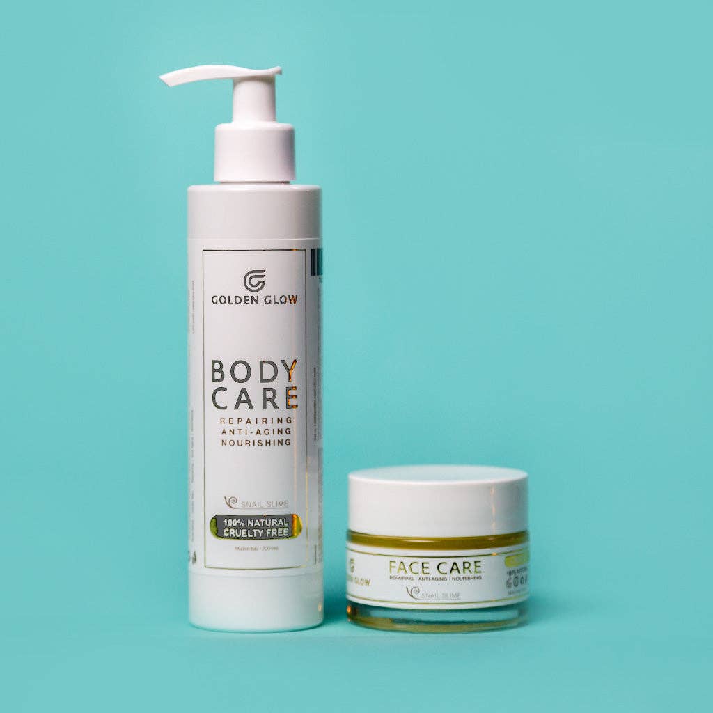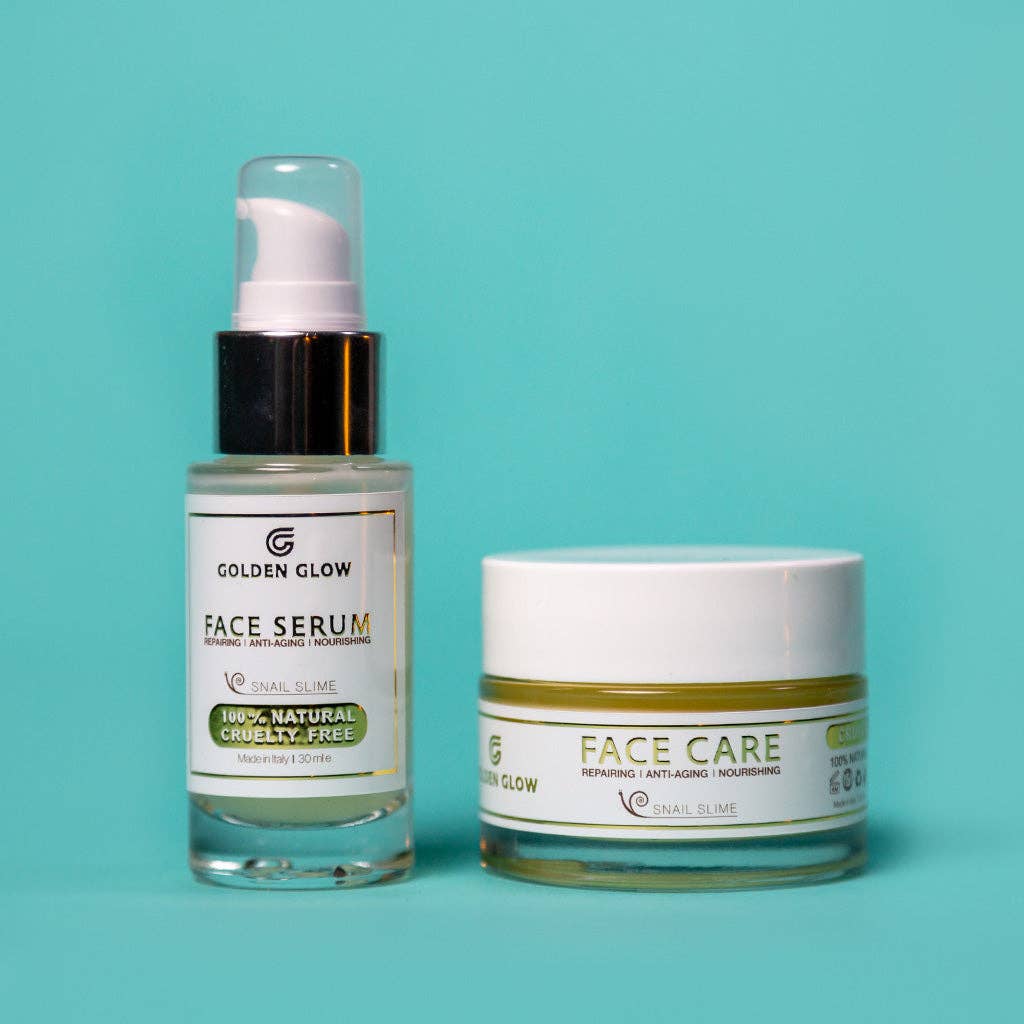 GOLDEN GLOW 100% NATÜRLICH & TIERVERSUCHSFREI Golden Glow ist eine junge Hautpflegemarke und steht dafür, dass jede Frau es verdient, zu strahlen! Deine Haut ist nicht für chemische Stoffe in deiner Hautpflege gemacht. Wir wollen das Beste für deine Haut und wählen nur Produkte von höchster Qualität. Wir sind stolz auf unsere Hautpflegeroutine, die 100% natürlich und tierversuchsfrei ist. Egal, ob du nach einer langfristigen Kur suchst, um Hautprobleme zu bekämpfen, oder einfach nur nach einer natürlichen Hautpflegeroutine. Wir haben, was du brauchst! Mit Hilfe von Schneckenschleim bekämpft Golden Glow Falten, Rötungen, Rosacea, Akne und andere Unvollkommenheiten. Die sorgfältig zusammengestellten Inhaltsstoffe hydratisieren alle Hautschichten. Wir verwenden natürliche Inhaltsstoffe von höchster Qualität, darunter hochwertige Öle und Extrakte aus der Natur. So heben wir deine Hautpflegeroutine auf ein höheres Niveau, mit der Kraft der Natur! Und diese Formel teilen wir natürlich gerne mit dir. Unsere Produkte sind angereichert mit 100% italienischem Schneckenschleimextrakt. Die einzigartige regenerierende und beruhigende Wirkung sowie die straffenden Eigenschaften dieses Extrakts sorgen für eine hervorragende unterirdische Hydratation. Durch die einzigartige Zusammensetzung dringen die Produkte in alle Hautschichten ein und sind für alle Hauttypen geeignet. Und das alles, ohne fettig oder klebrig zu wirken.