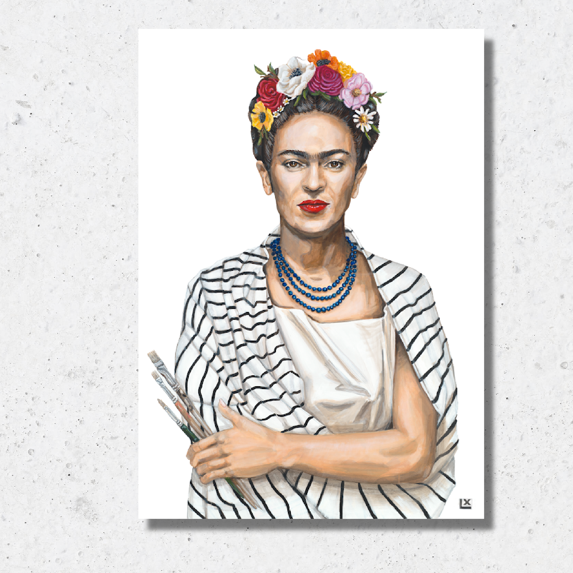 LX Artworks: Eine Verschmelzung von Kunst, Geschichte und Erbe Lindsay Ekstrom, die in Dallas lebende Autodidaktin hinter LX Artworks, kreiert Originalporträts, die traditionelle Kunstgrenzen überschreiten. Ihr unverwechselbarer Stil, den sie „Portrait Pop“ nennt, verbindet die Eleganz der klassischen Porträtmalerei mit der lebendigen Energie der Pop-Art. Ekstrom interpretiert historische „Rebellen, Gründer und Ikonen“ neu, indem er sie in die Moderne versetzt und sie mit zeitgenössischer Mode, Tattoos und Accessoires porträtiert, die die unerzählten Geschichten hinter ihren öffentlichen Persönlichkeiten enthüllen. „Ich trage nicht einfach zum Lachen historische Figuren in moderne Kleidung“, sagt Ekstrom. „Jedes Detail in ihrer Mode und Körpersprache ist ein Symbol, das ihre Lebensgeschichte erzählt.“ Bevor sie mit einer neuen Arbeit beginnt, befasst sich Ekstrom intensiv mit der Recherche, um sicherzustellen, dass ihre Arbeit historisch korrekt bleibt, während sie ihre Themen auf frische und relevante Weise präsentiert.