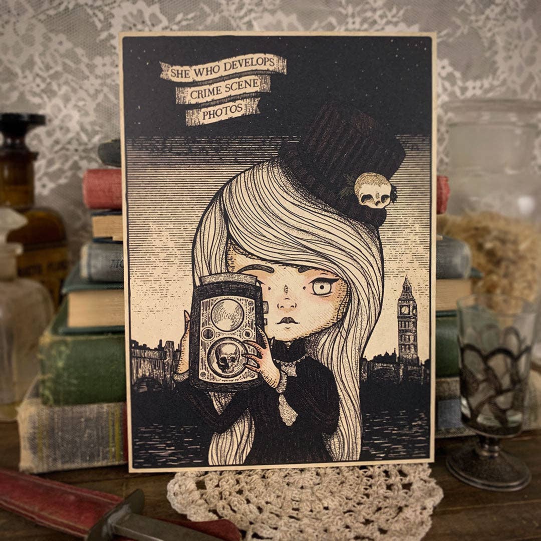 The Orphans of Dudleytown erforscht gespenstische Kinder der viktorianischen Ära, die alles feiern, was fallen und gruselig ist. Die subtile warme Farbpalette spiegelt das ausgeprägte Herbstthema zusätzlich wider. Yosiell lädt Sie ein, die mysteriösen Illustrationen der Waisen von Dudleytown zu erkunden.